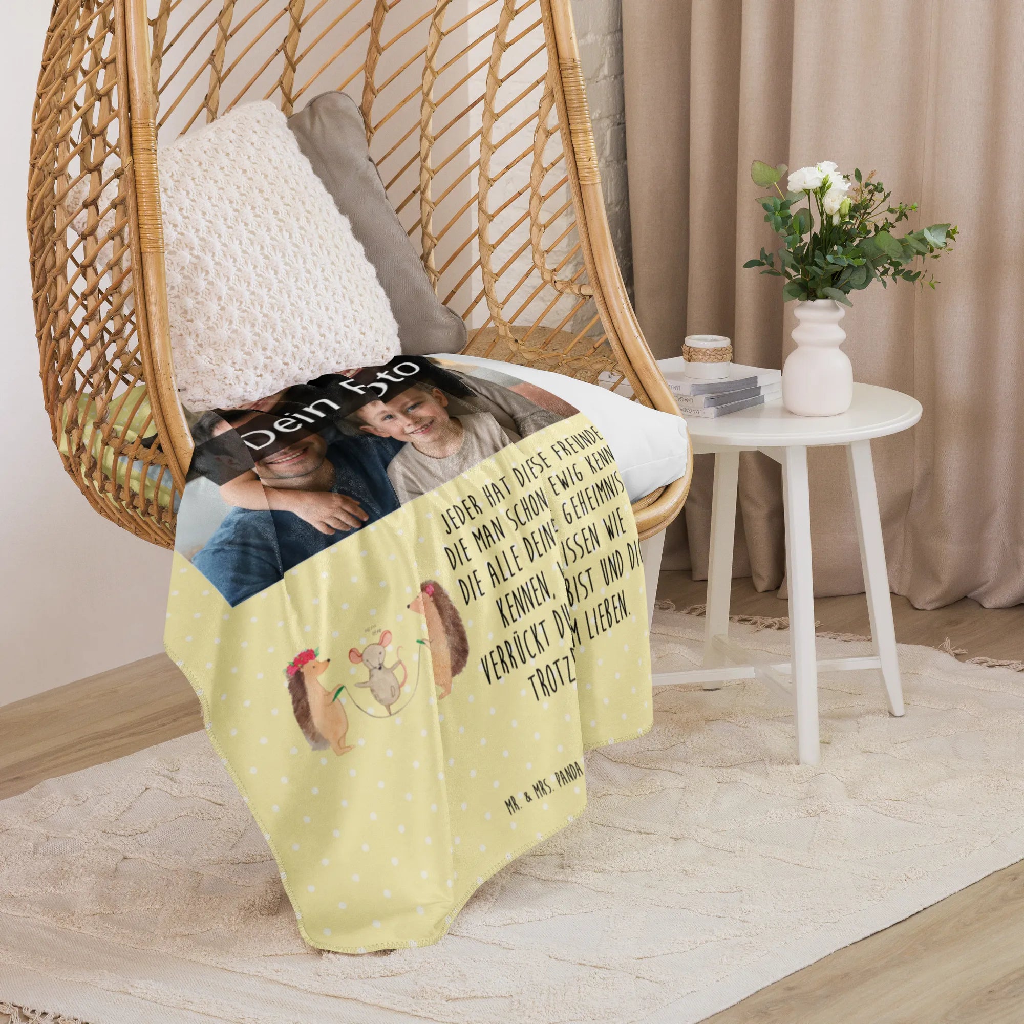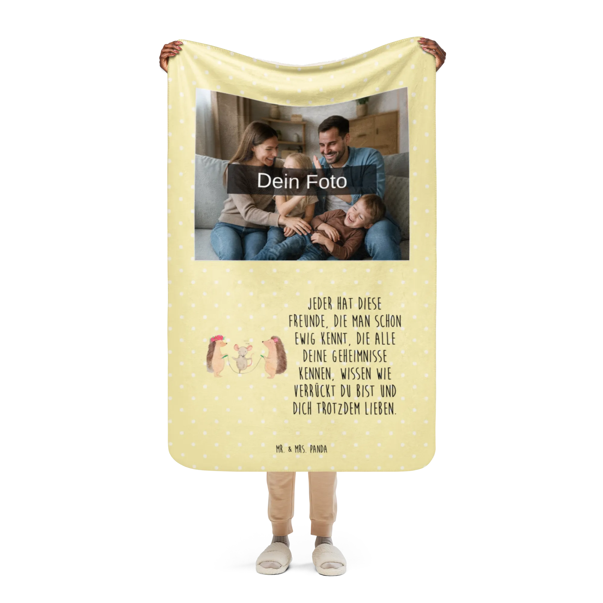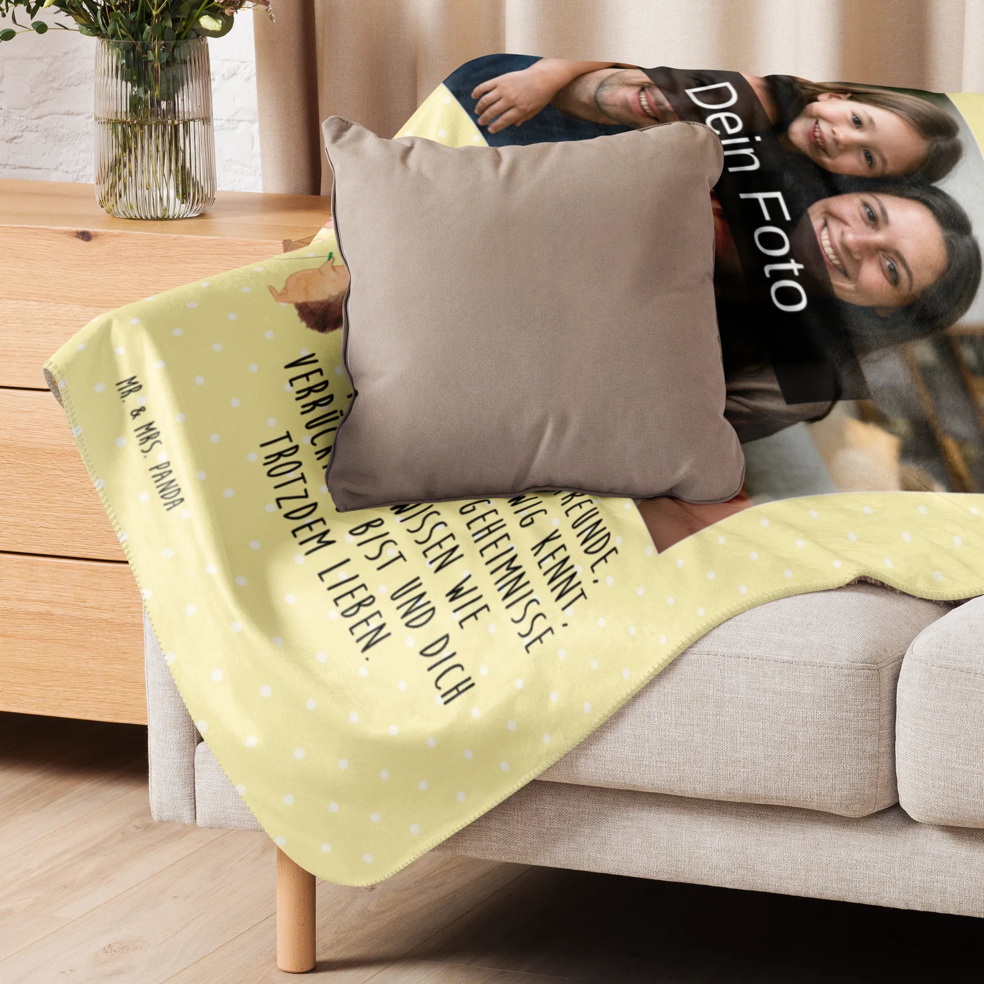 Entdecke die zauberhafte Sherpa Foto Kuscheldecke von Mr. & Mrs. Panda, die deinen Raum mit Wärme und Komfort erfüllt! Mit großzügigen 1500 mm x 1000 mm eignet sich diese Decke nicht nur zum Kuscheln, sondern auch als stilvolles Wohnaccessoire. Sie wird aus 100% ultraweichen Polyesterfasern gefertigt, wobei der glatte Stoff und die flauschige Sherpa-Seite für ein unvergleichliches Kuschelerlebnis sorgen. Ihre lebendigen Farben bringen Frische in dein Zuhause und die Möglichkeit, sie mit deinem Wunschfoto zu bedrucken, macht sie zu einem ganz besonderen Geschenk für Freunde und Familie. Sei es für einen gemütlichen Abend vor dem Fernseher oder als Highlight in deinem Schlafzimmer – diese Decke macht immer eine gute Figur. Bitte denk daran, sie vor der ersten Nutzung zu waschen, um die besten Ergebnisse zu genießen! Pflegehinweise: sanfte Reinigungsmittel sind empfehlenswert. Lass dich von der Gemütlichkeit verzaubern, die diese Kuscheldecke aus dem Hause Mr. & Mrs. Panda mit sich bringt!
