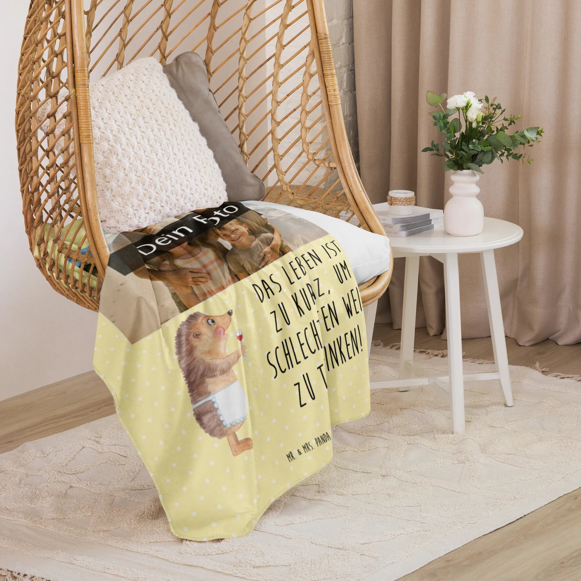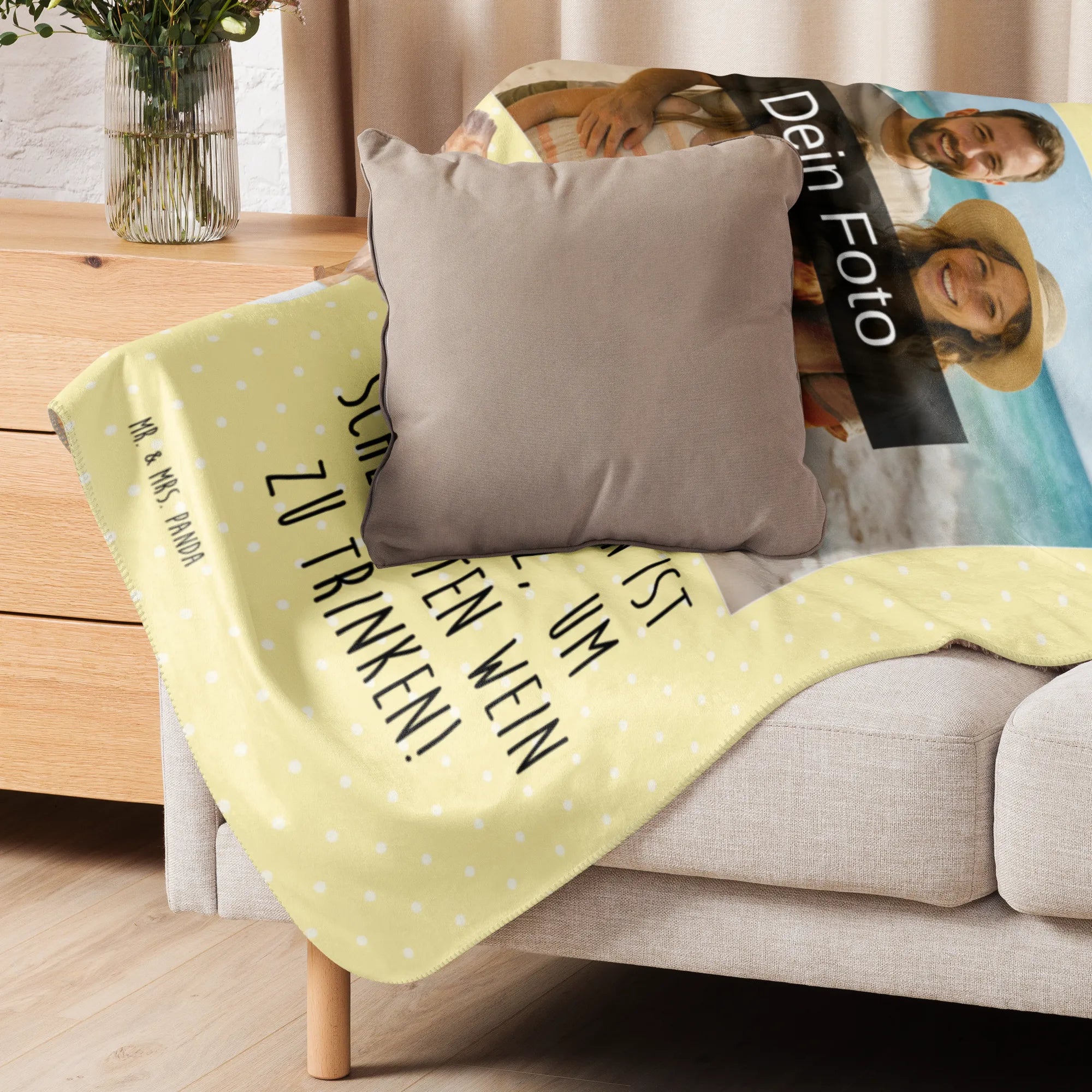 Mach es dir gemütlich mit der einzigartigen Sherpa Foto Kuscheldecke von Mr. & Mrs. Panda! Mit den Maßen 1500 mm x 1000 mm ist sie ideal, um sich einzukuscheln oder deinem Raum einen besonderen Flair zu verleihen. Diese Decke besteht aus 100% ultraweichen Polyesterfasern und begeistert durch ihre Qualität und Pflegeleichtigkeit. Dank der flauschigen Sherpa-Seite fühlst du dich immer warm und geborgen, während der glatte Seitenstoff für ein angenehmes Hautgefühl sorgt. Die leuchtenden Farben bringen Frische in dein Zuhause und die Möglichkeit, die Decke mit deinem Wunschfoto zu individualisieren, macht sie zum perfekten Geschenk für Freunde und Familie. Vergiss nicht, die Decke vor der ersten Nutzung zu waschen, um den besten Komfort zu gewährleisten! Pflegehinweise: verwende milde Reinigungsmittel. Diese Kuscheldecke wird schnell zu deinem neuen Lieblingsstück von Mr. & Mrs. Panda!