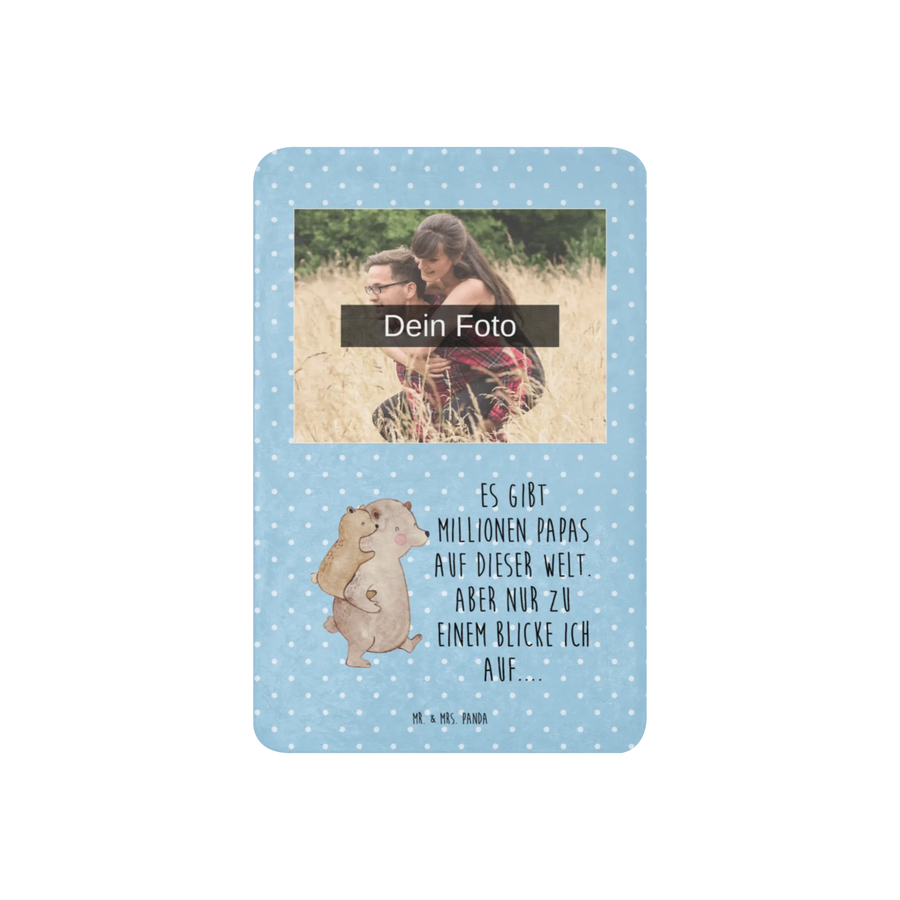 Sherpa Photo Cuddle Blanket Papa Bear - 100 x 150 cm - Blau Pastell