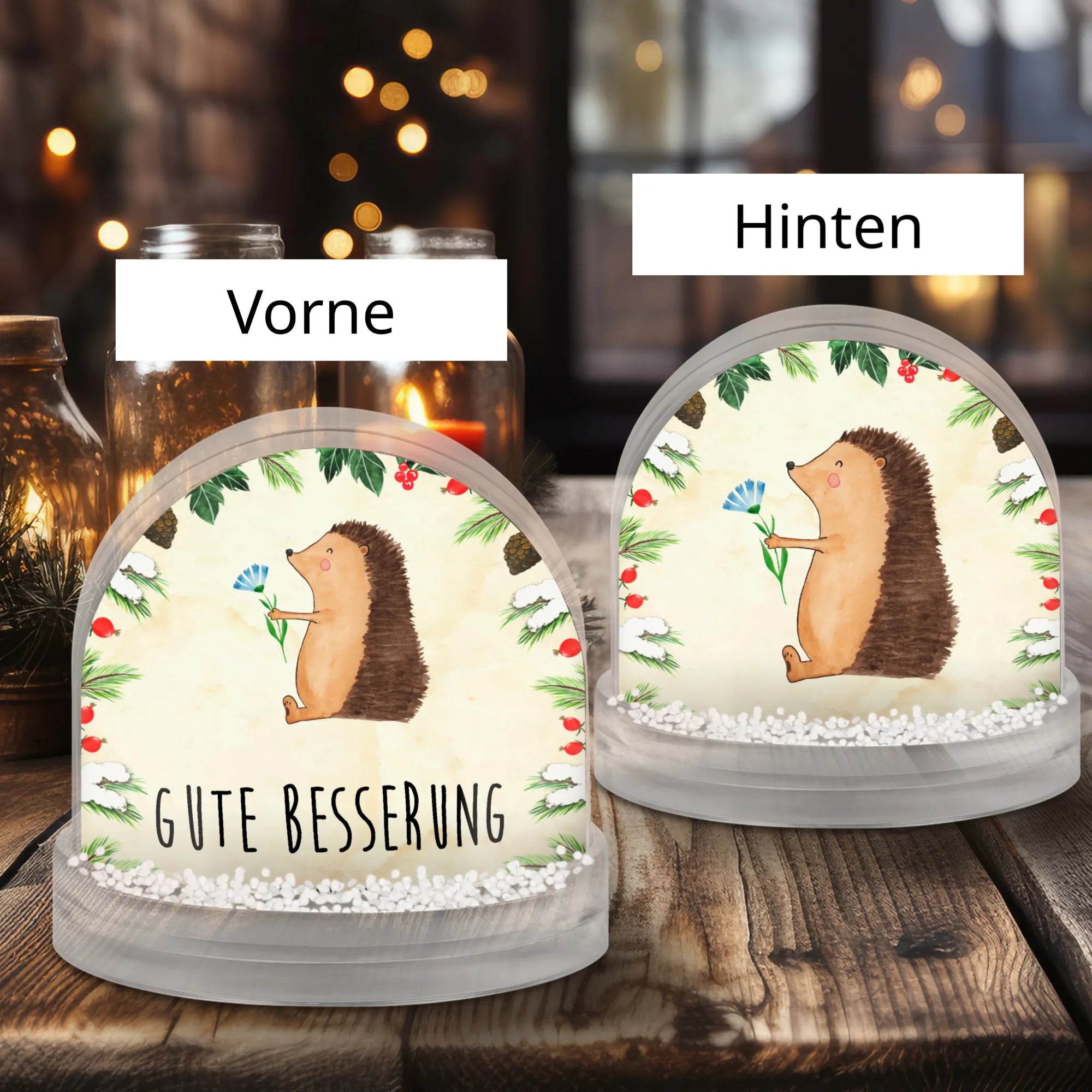 Snow globe Hedgehog Flower - natural paper