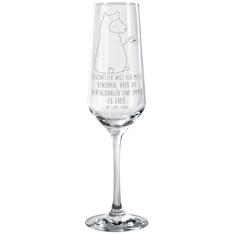 Verschenke Freude mit Stil – mit dem Sektglas „Alpaka Fahne“ aus der Alpaka-Kollektion von Mr. & Mrs. Panda.