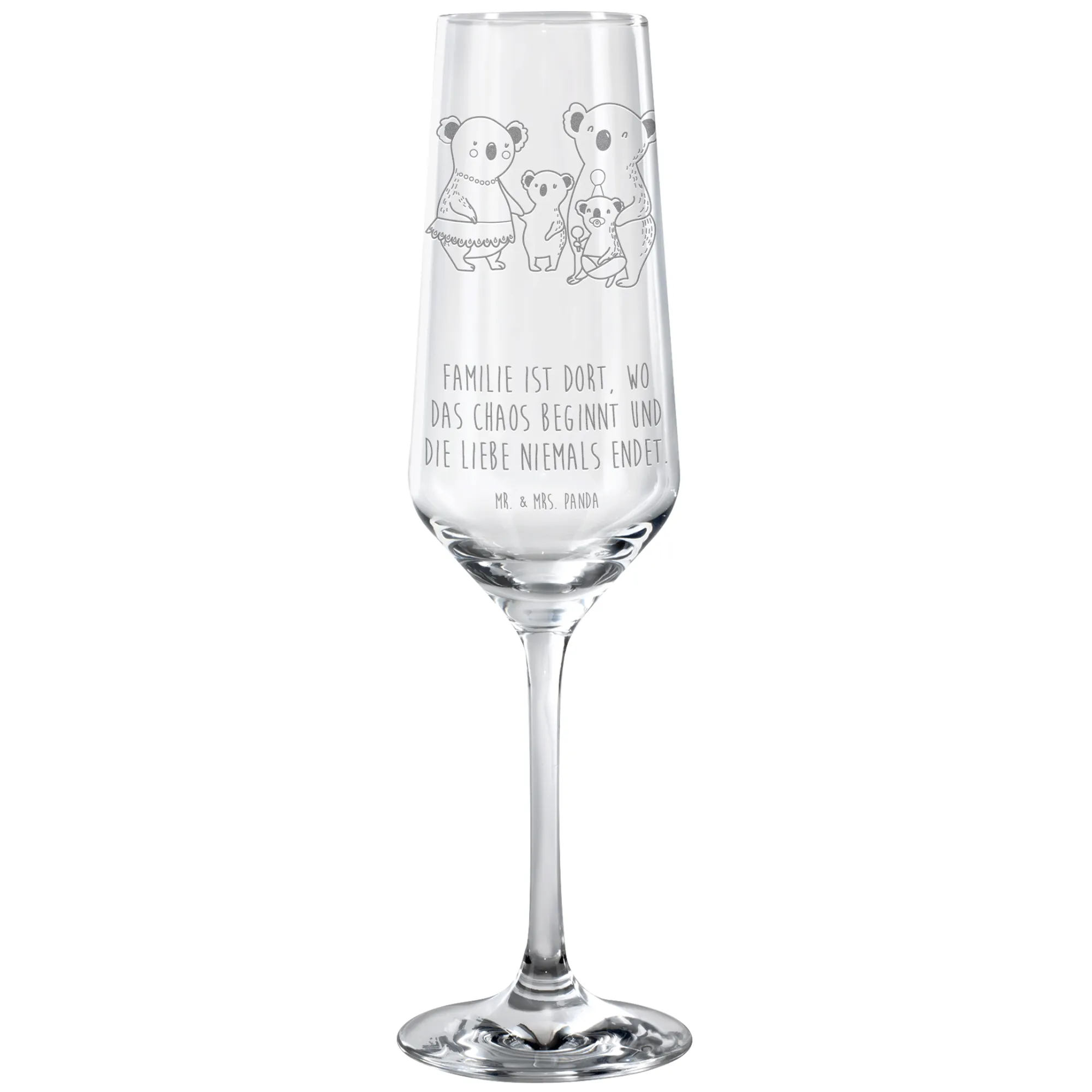 Sparkling wine glass Koala Family - with saying