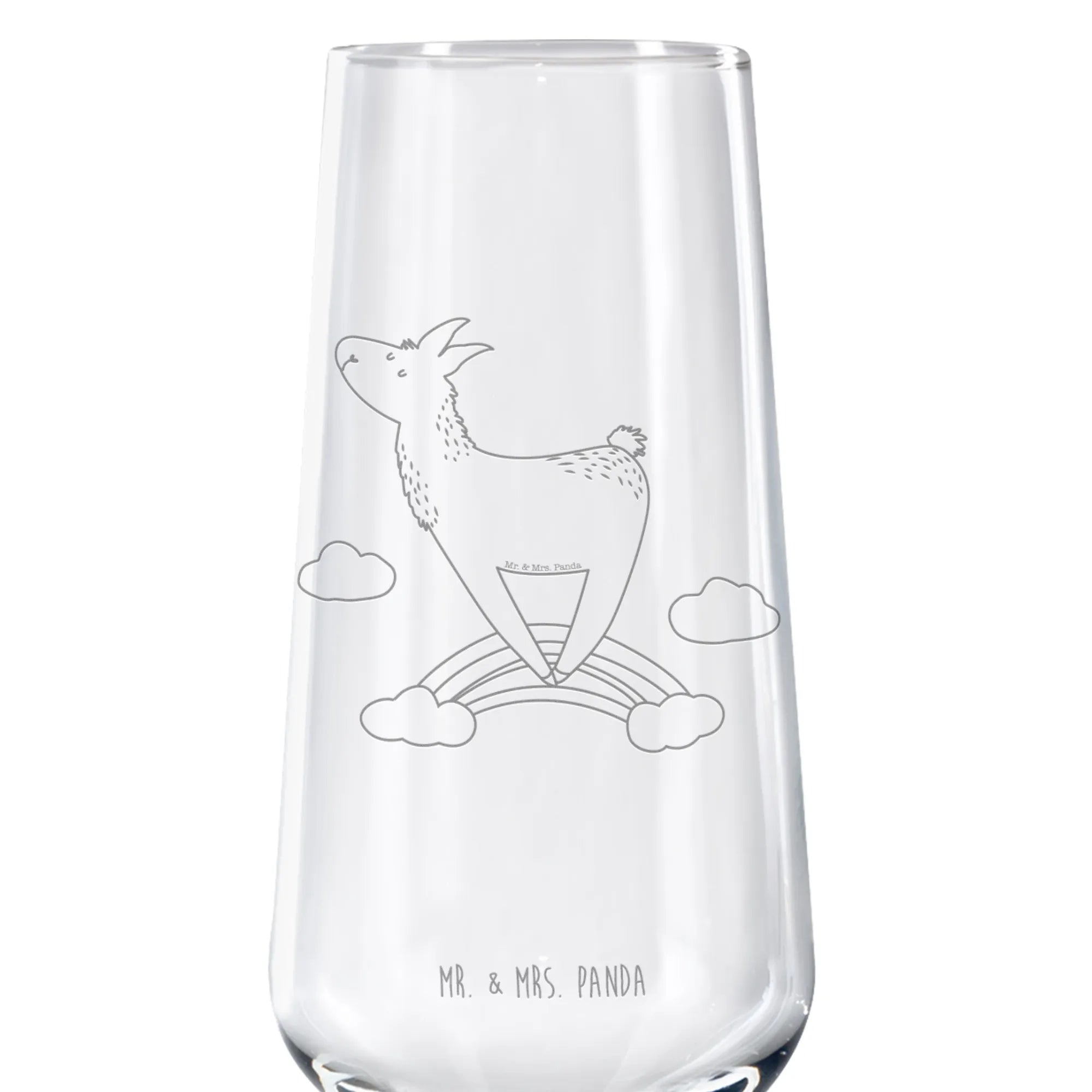 Sparkling wine glass lama rainbow - with saying