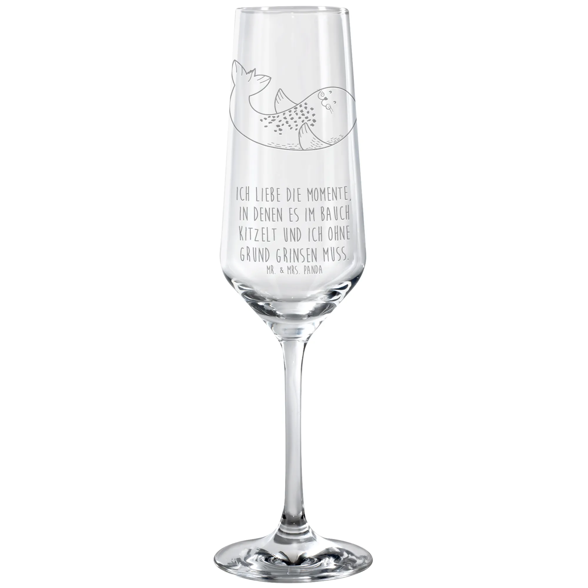 Introducing the delightful Sparkling Wine Glass featuring the charming motif of a seal lying down from the enchanting Small World collection by Mr. & Mrs. Panda! This exquisite glass isn’t just any ordinary drinkware; it encapsulates the joy and whimsy of seaside adventures and brings a ray of sunshine to every sip.