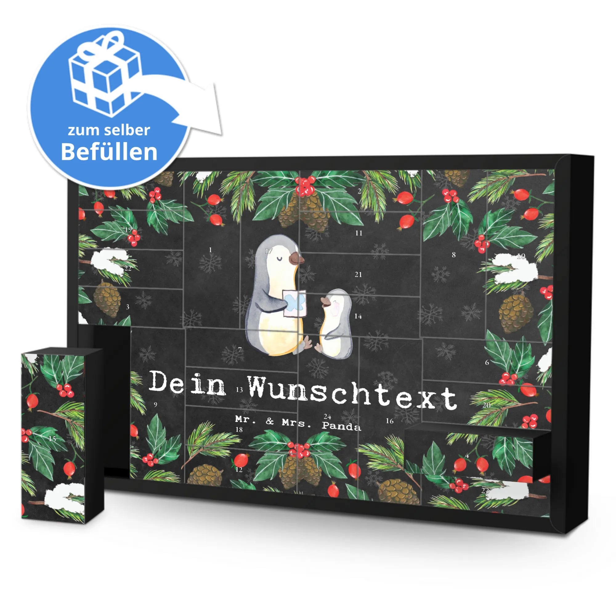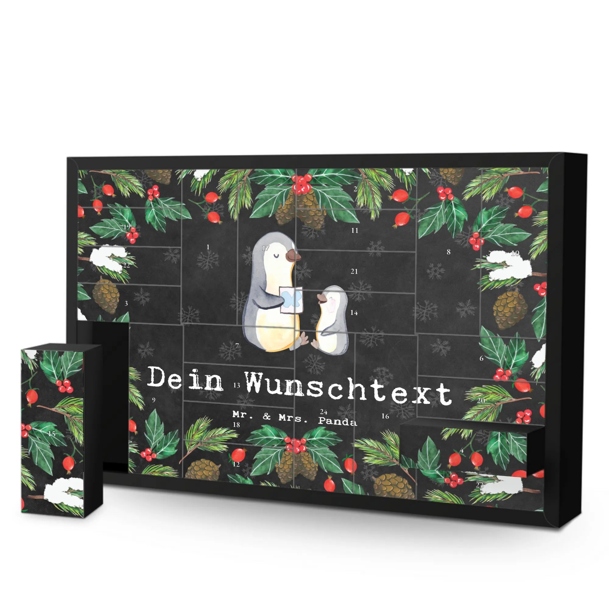 🐼 PERSONALISIERTER ADVENTSKALENDER: 24 Fächer, Mr. & Mrs. Panda Druck, inklusive Aufsteller.