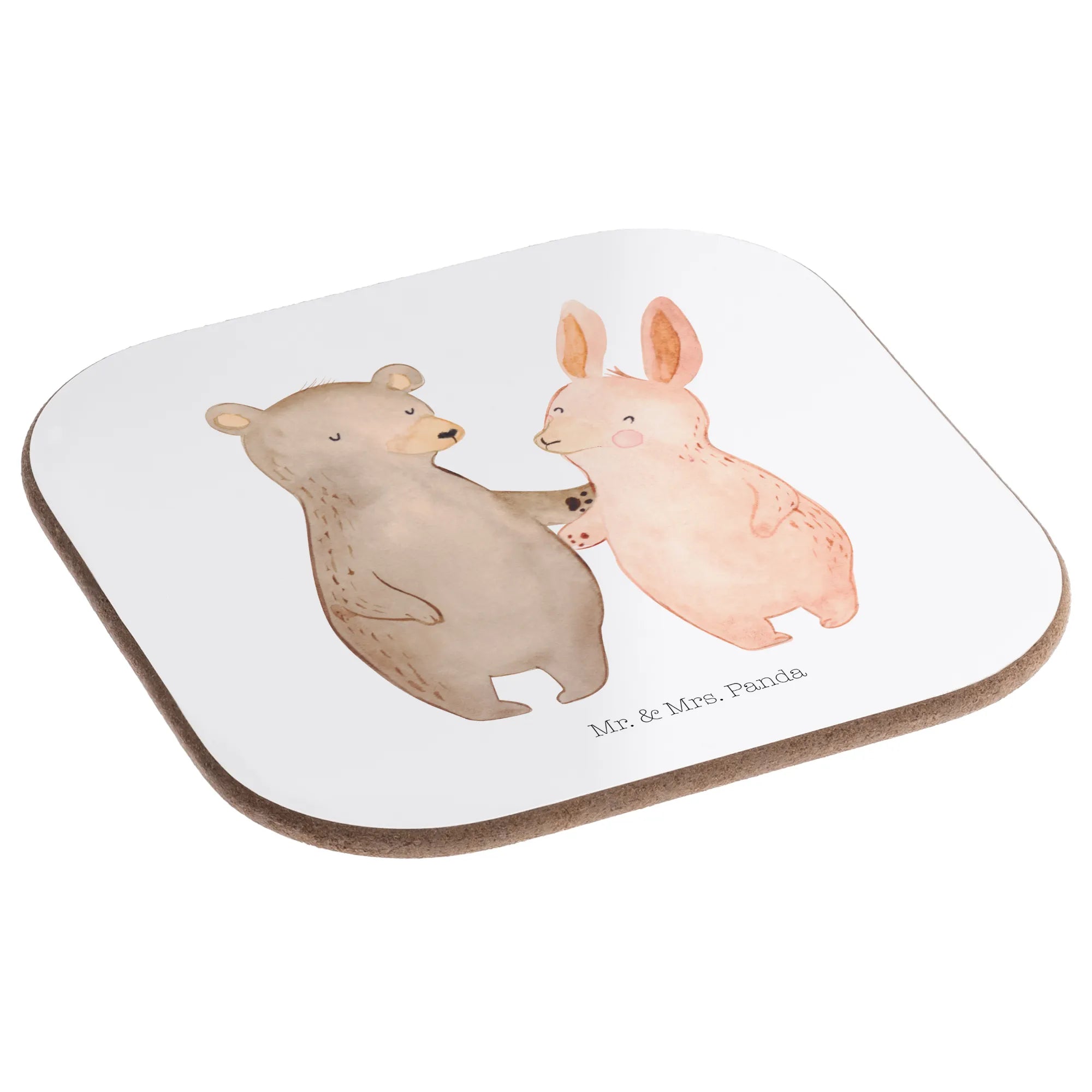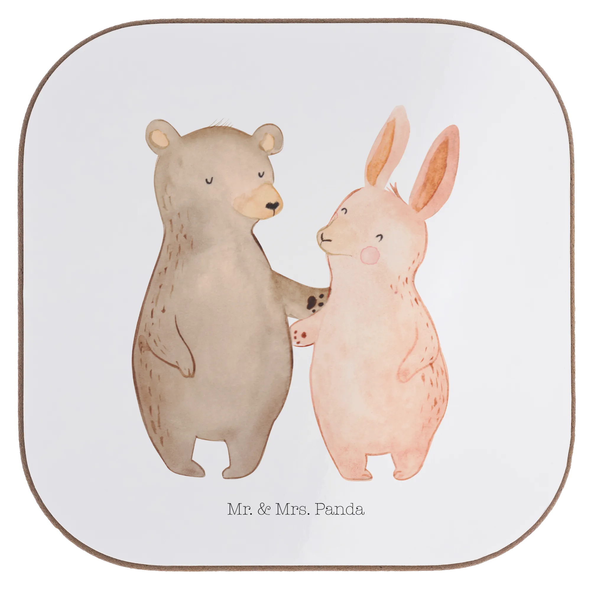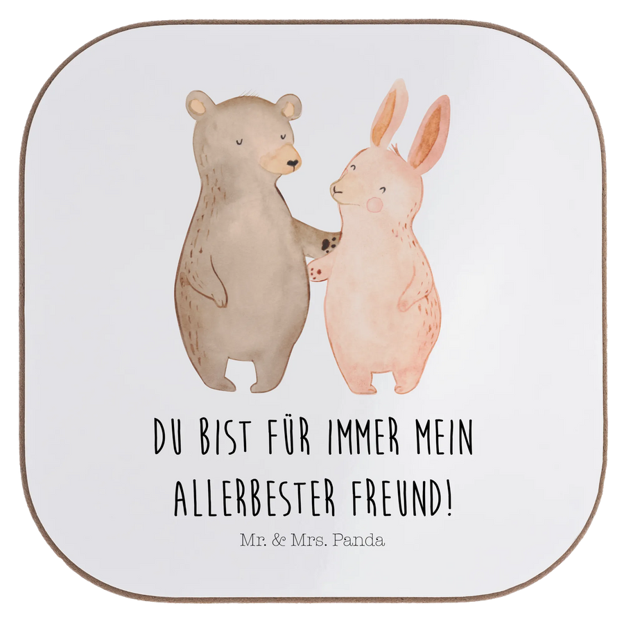 Square coaster bear and rabbit Embrace - with saying