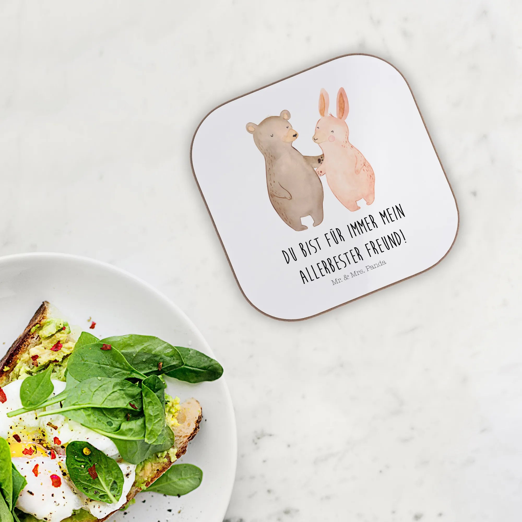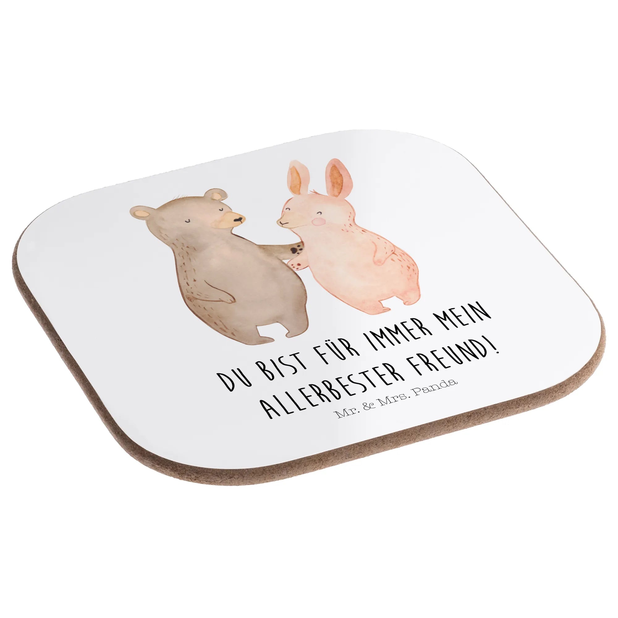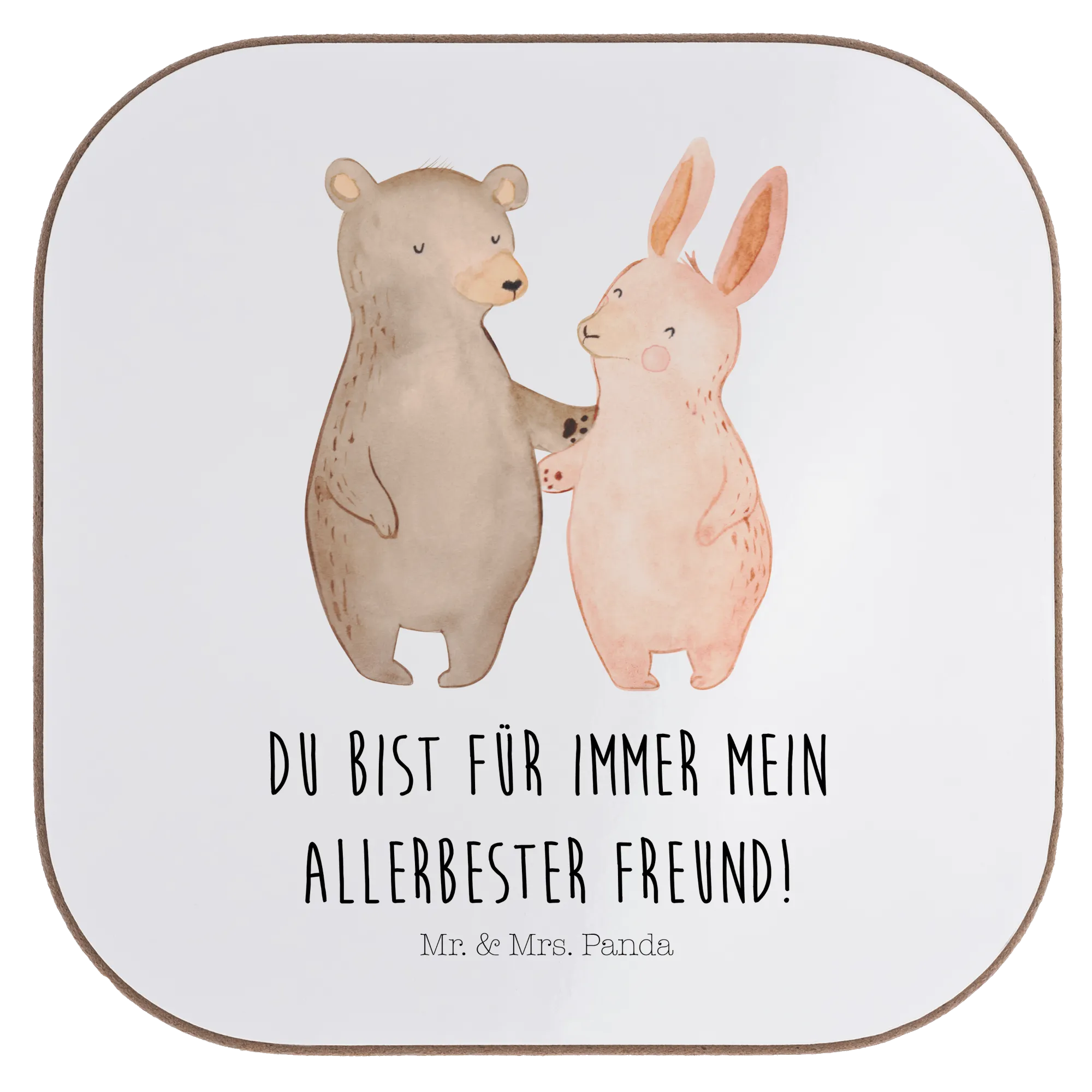Square coaster bear and rabbit Embrace - with saying