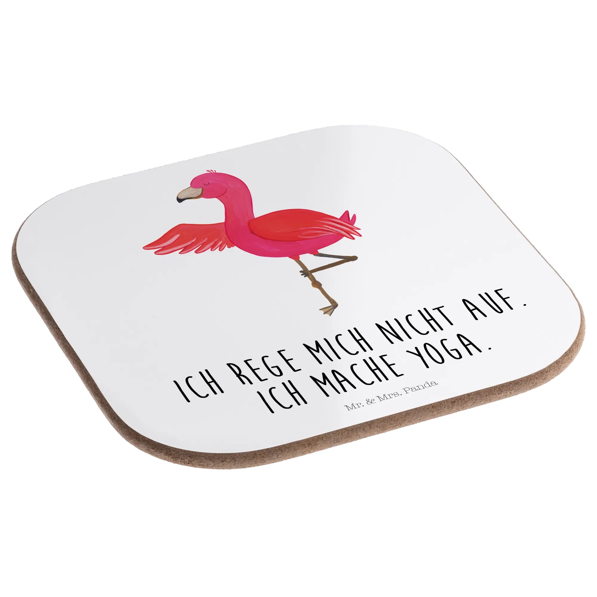 Square coaster flamingo yoga - with saying - Watercolor Pink