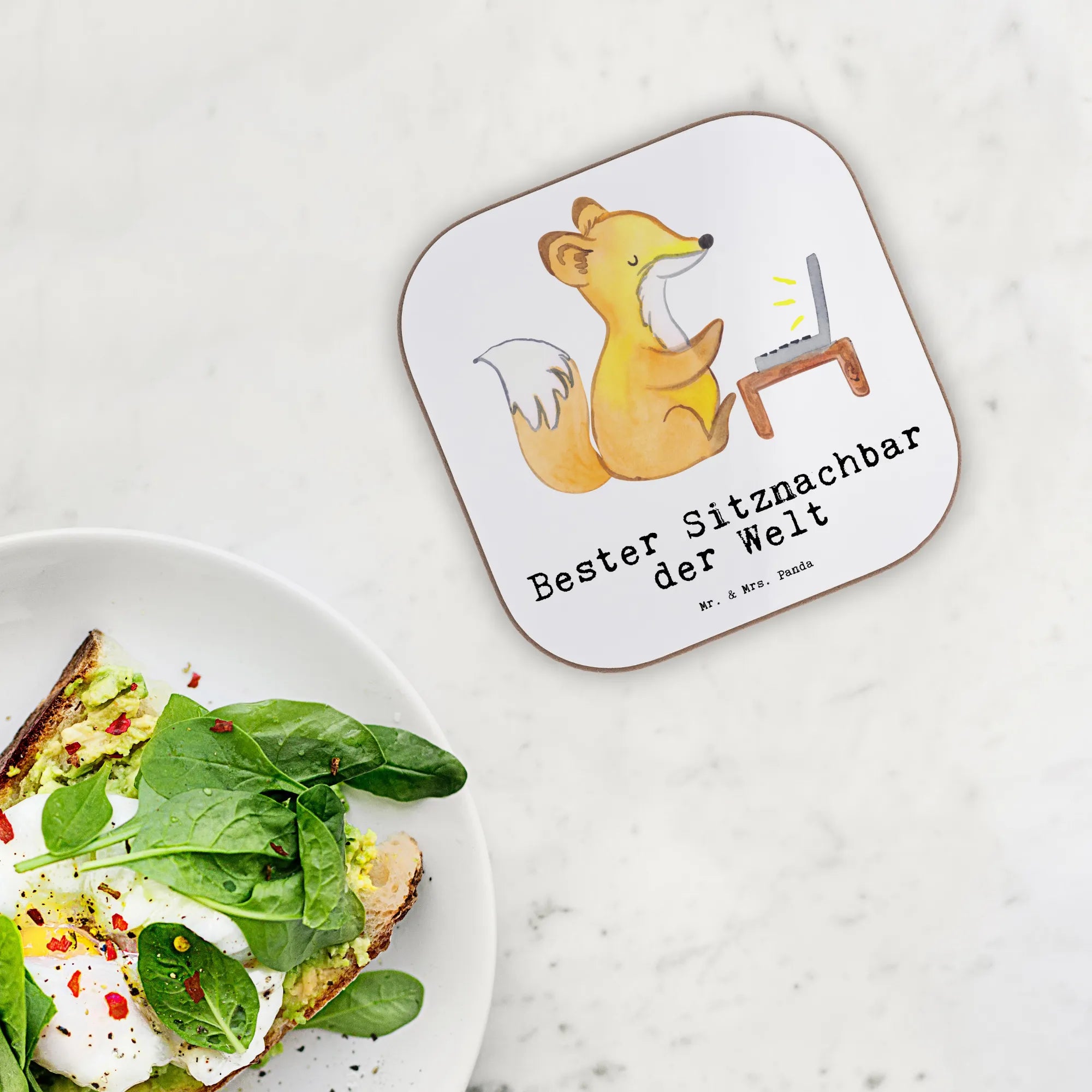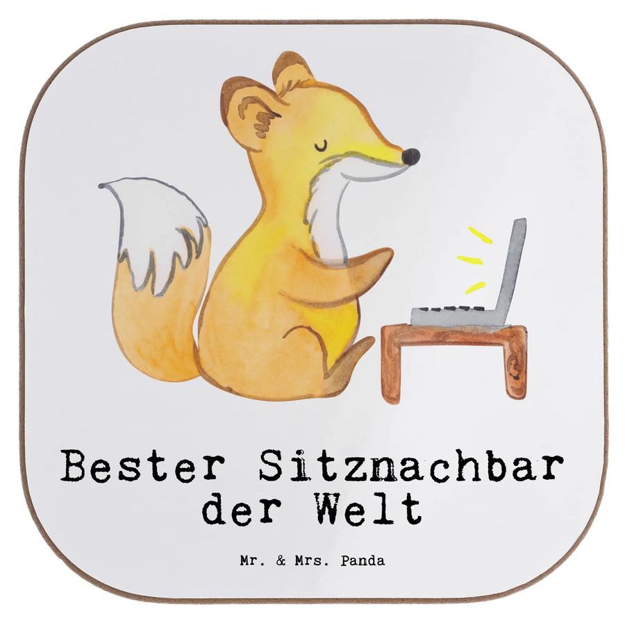 Square coaster Fox Best seat neighbor in the world breakfast, glass coasters, party, presents, gifts, gift, Coasters, for, thank you, giving, birthday, birthday present, gift idea, souvenir, make you happy, gift tip, school, neighbor, fellow student, seminar, university, classmate, college, table neighbor, chair neighbor, Seat neighbor