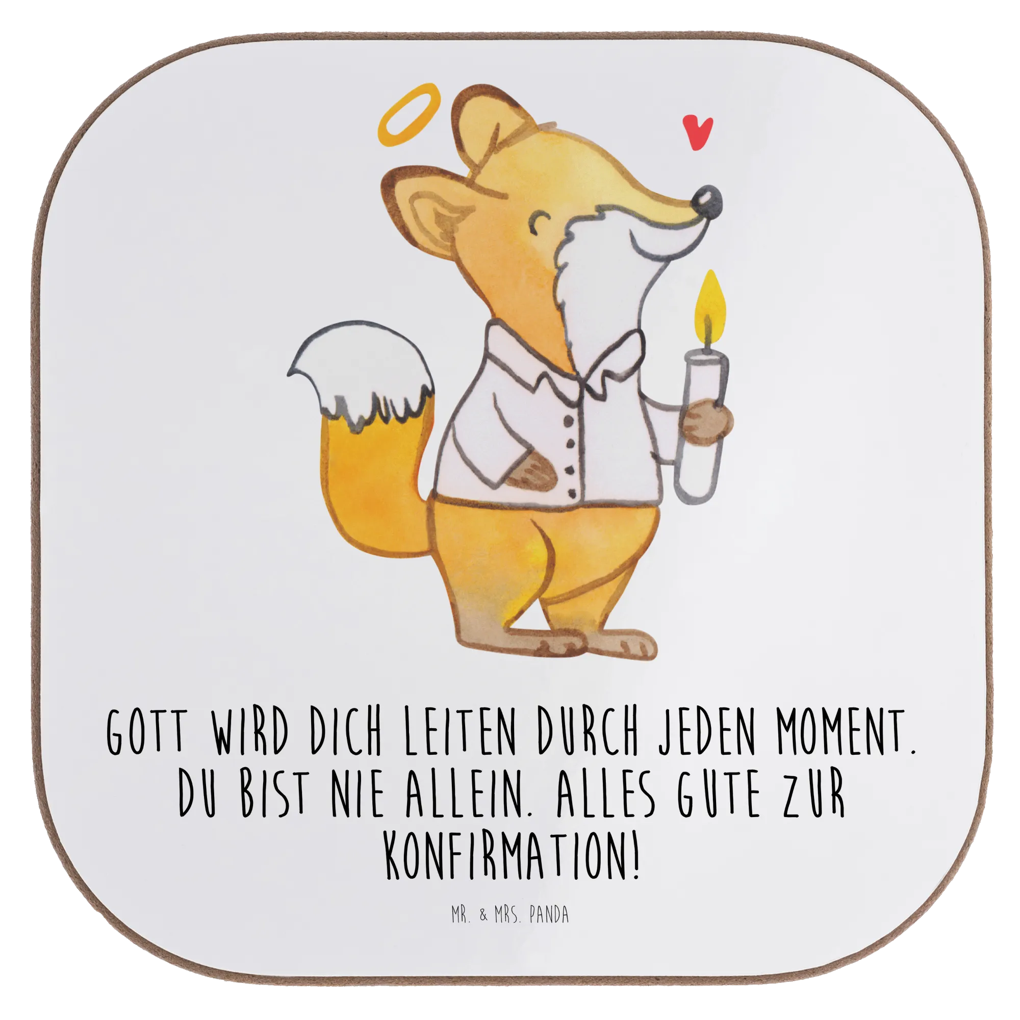 Introducing our endearing fox, dressed in a sharp white shirt as he holds a glowing candle. This motif encapsulates the essence of confirmation with a loving reminder: 'God will lead you through every moment. You are never alone. Happy Confirmation!'. It's just the right blend of warmth and faith—a perfect gift for someone embarking on their spiritual journey. Our fox isn't merely a design; it’s a symbol of joy, hope, and the divine connection that is present in each believer’s heart. So whether you’re celebrating a significant birthday or an important milestone, this charming motif will fill the moment with love and positivity.