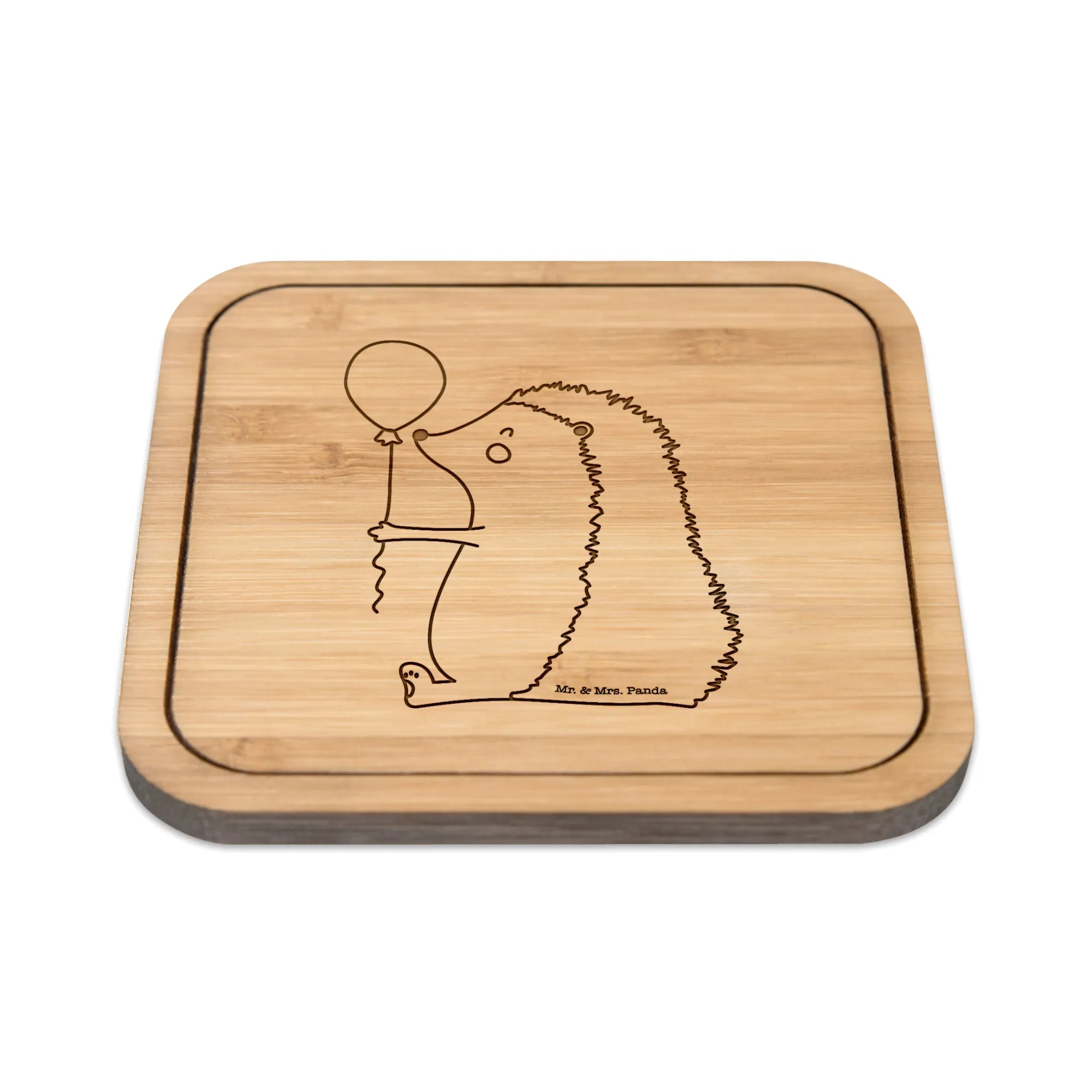 Square coaster Hedgehog balloon square, gift, glass coasters, giveaways, gifts, breakfast, coasters, set, glass, glasses, presents, wood, party, small animals, cute, funny, cute animal motives, hand drawn, small world, funny sayings, good mood, happy, gift ideas, special gifts, animal lover, card, Happy Birthday, Balloon, Birthday Child, Birthday, hedgehog