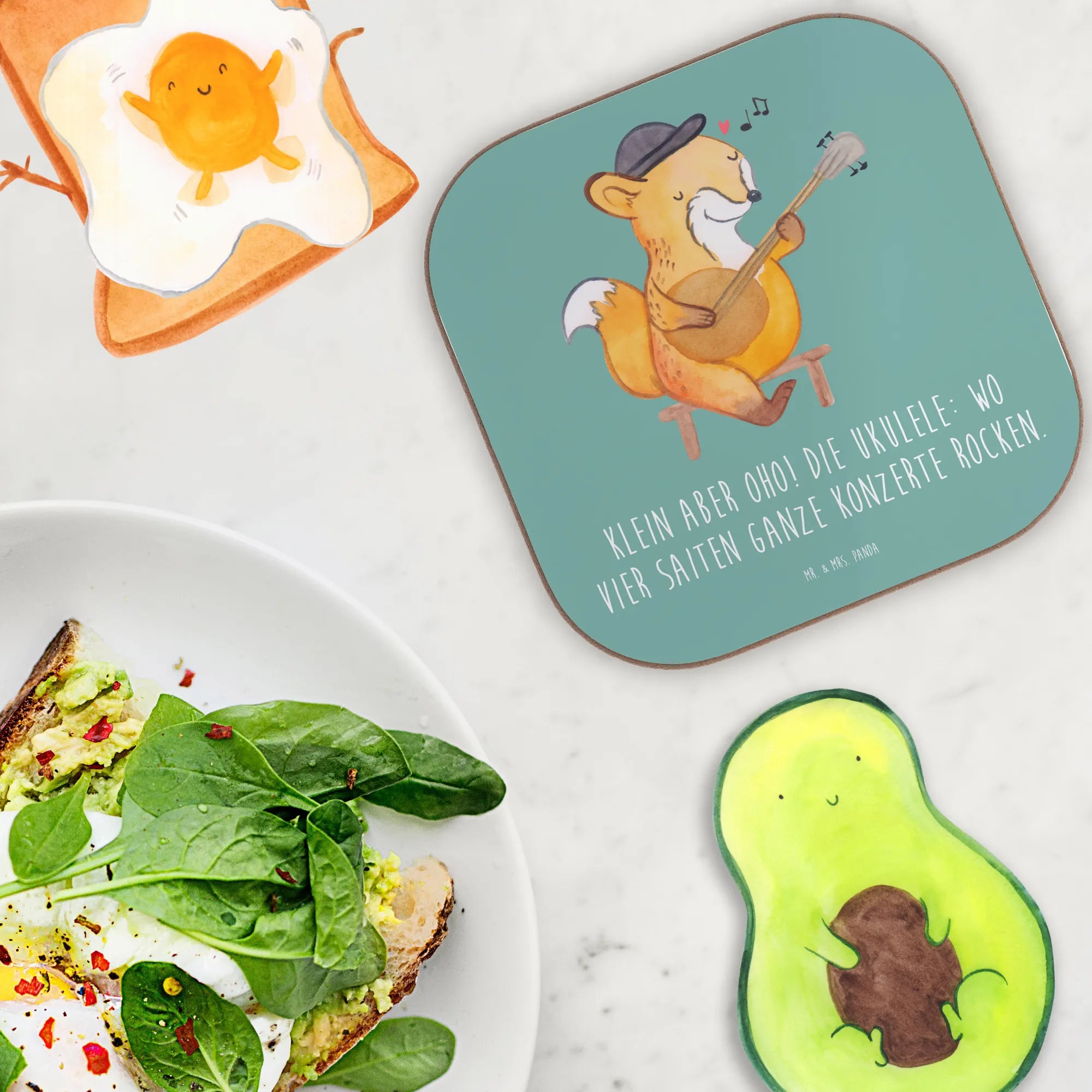 Square coaster Klein aber oho! Die Ukulele: wo vier Saiten ganze Konzerte rocken. - Meeresbrise