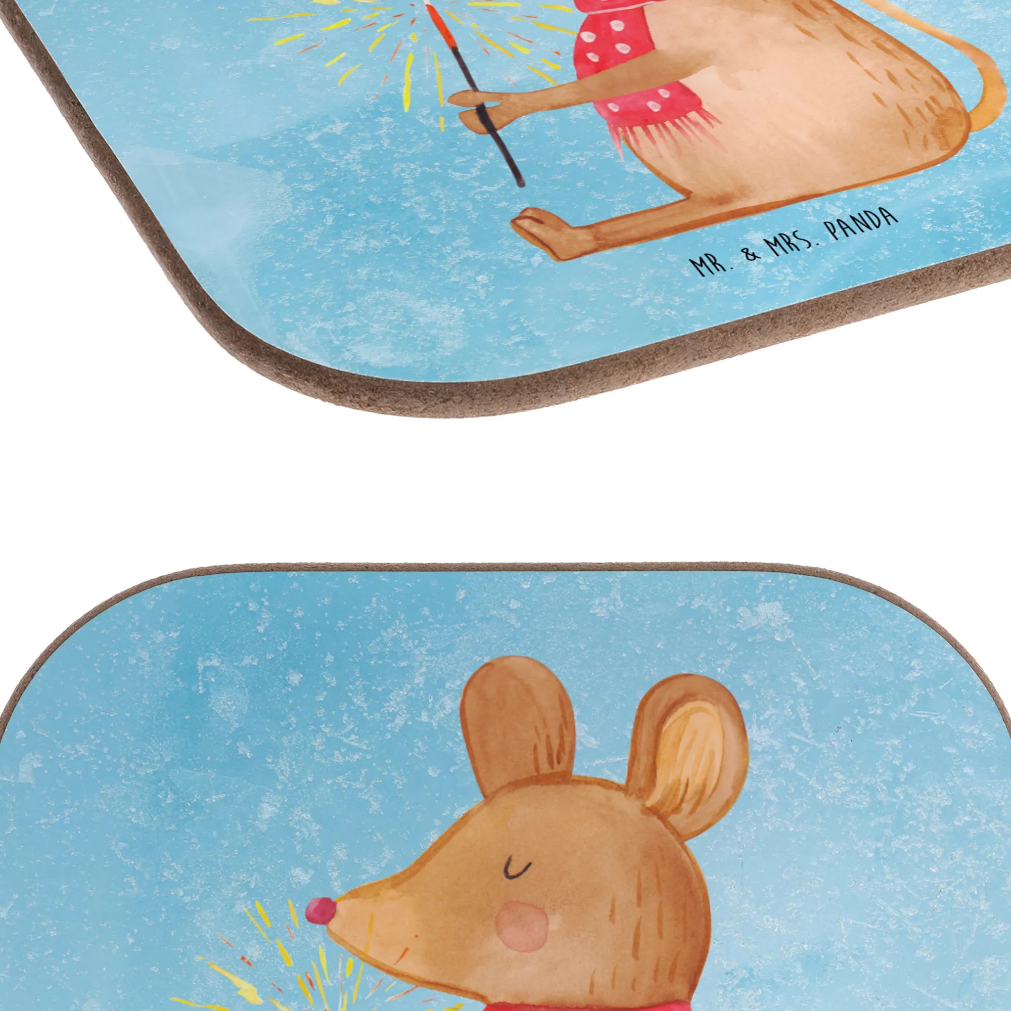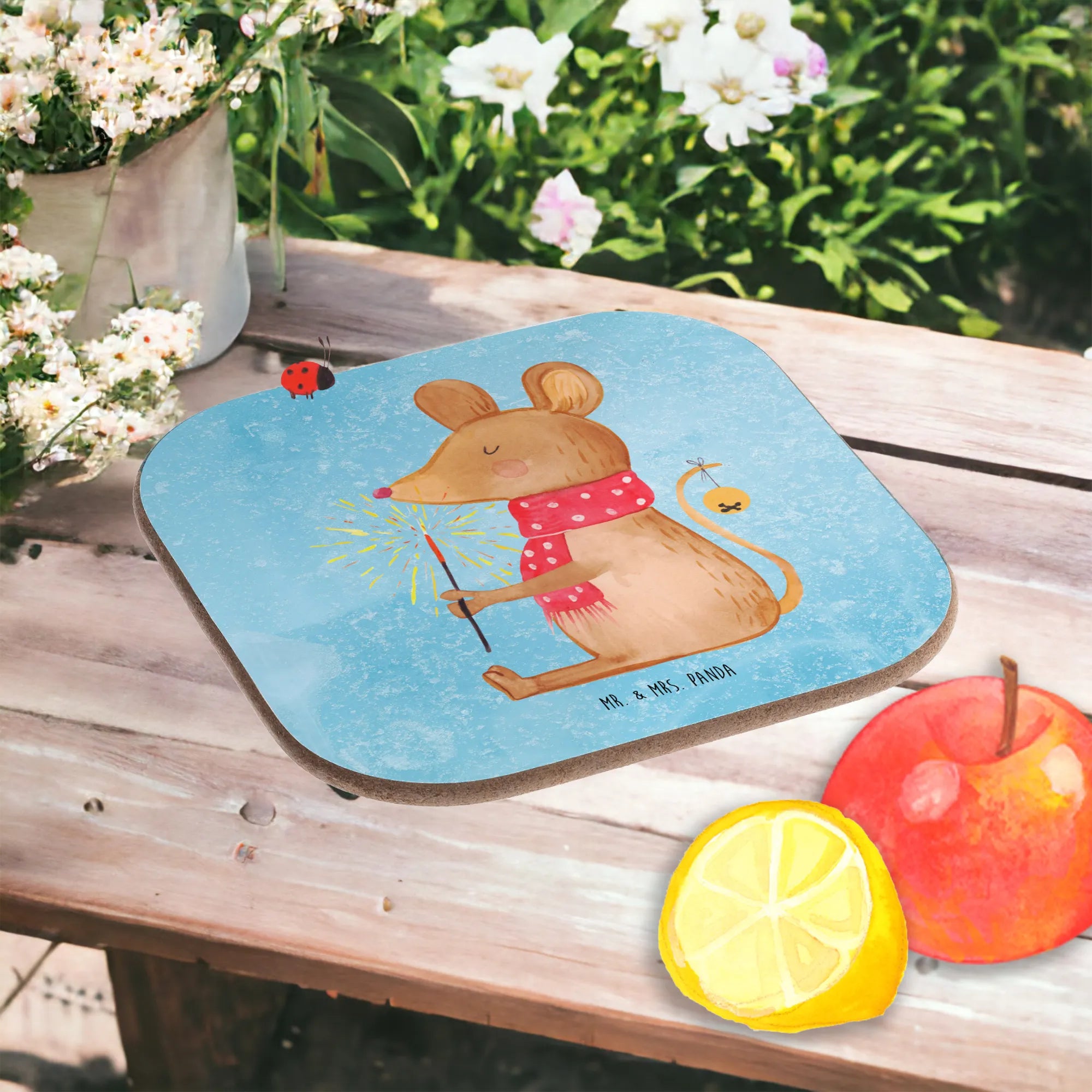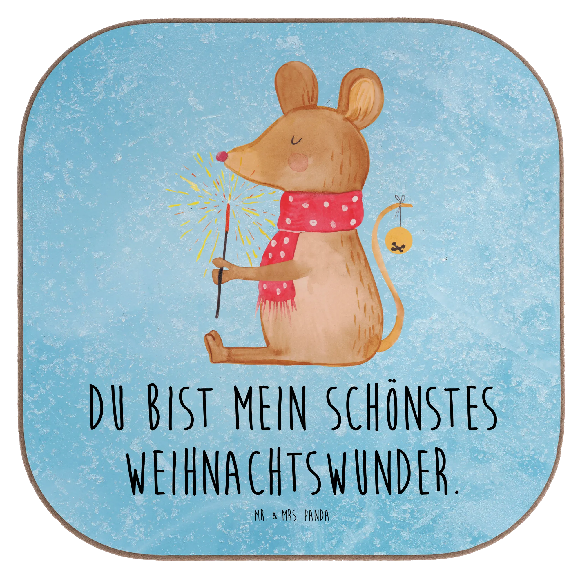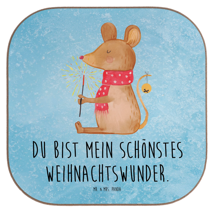 Square coaster Mouse Christmas - with saying - Ice Blue