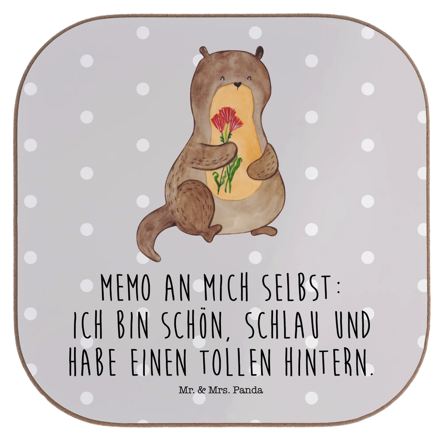 Square coaster otter Bunch of flowers - with saying - Grey Pastel