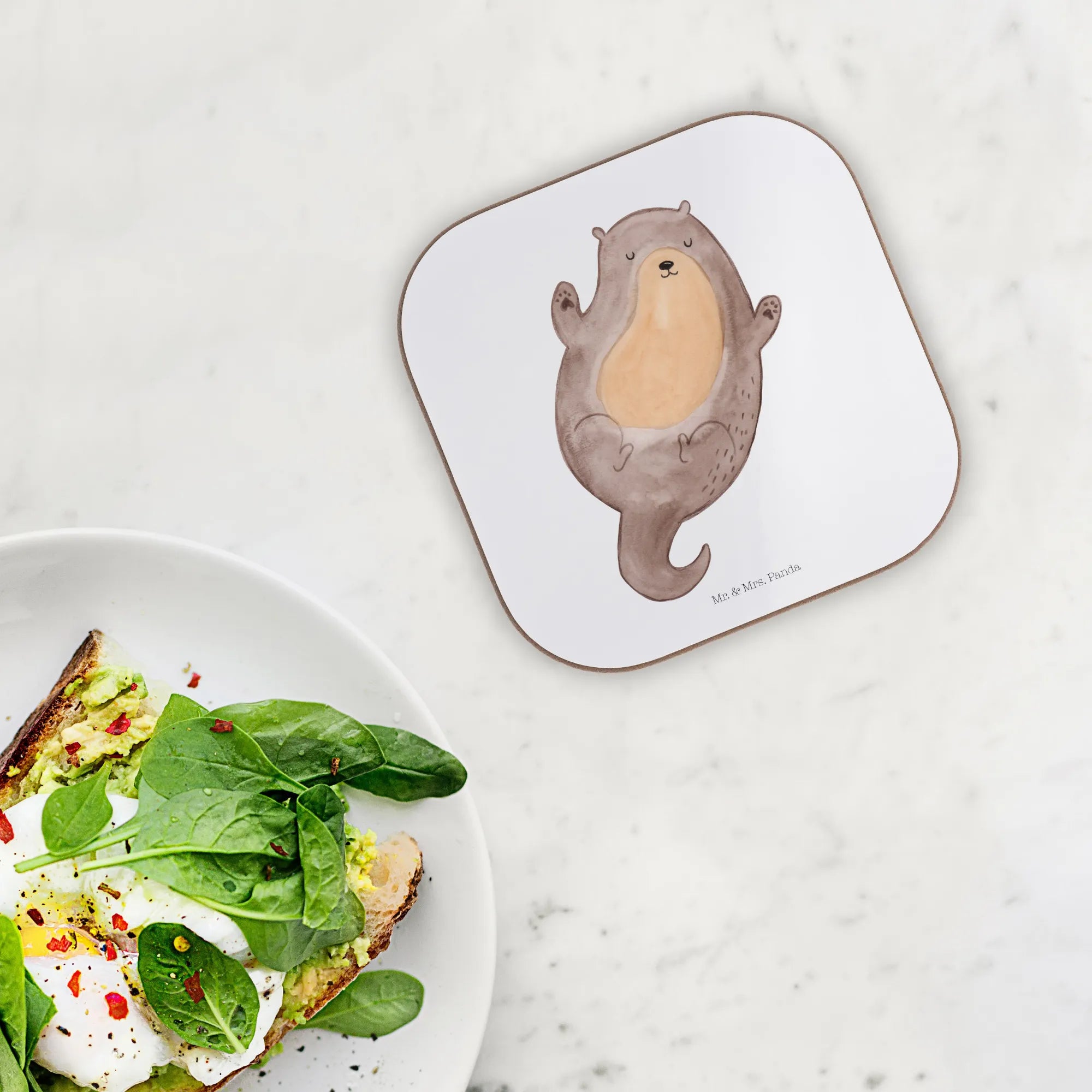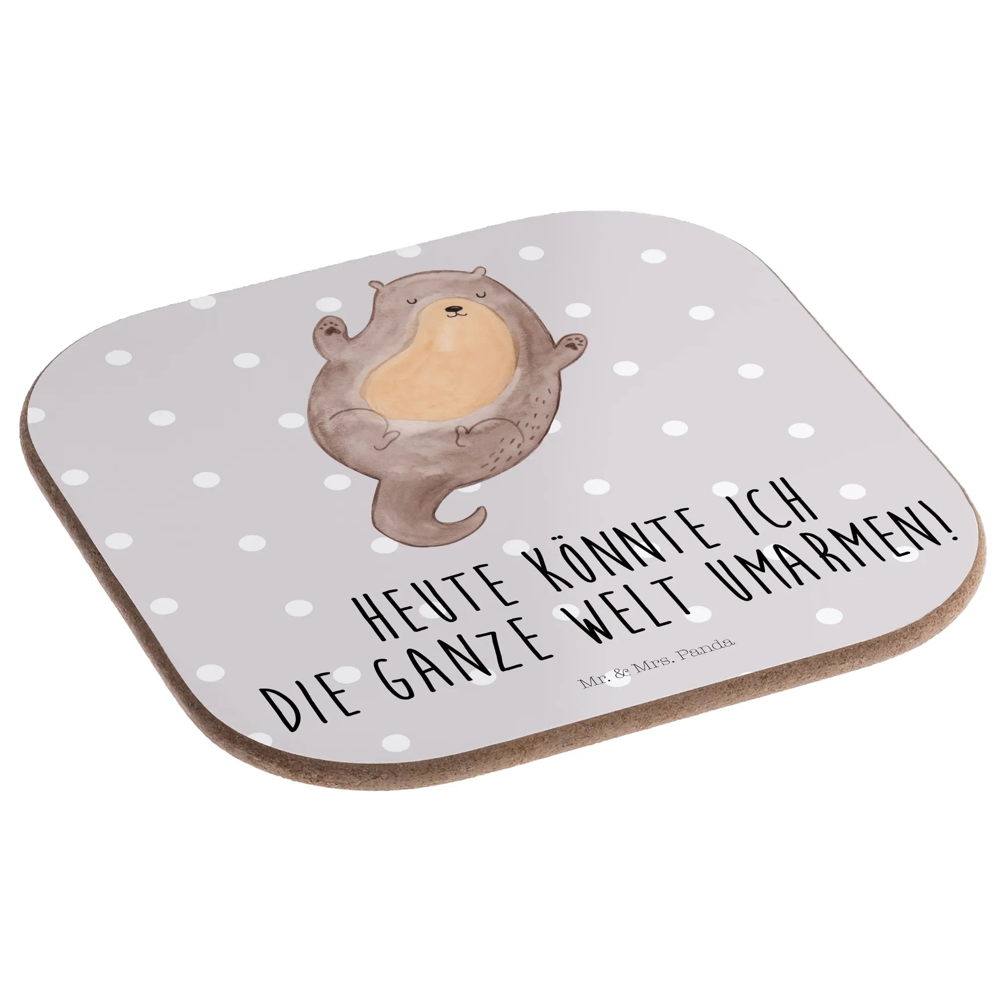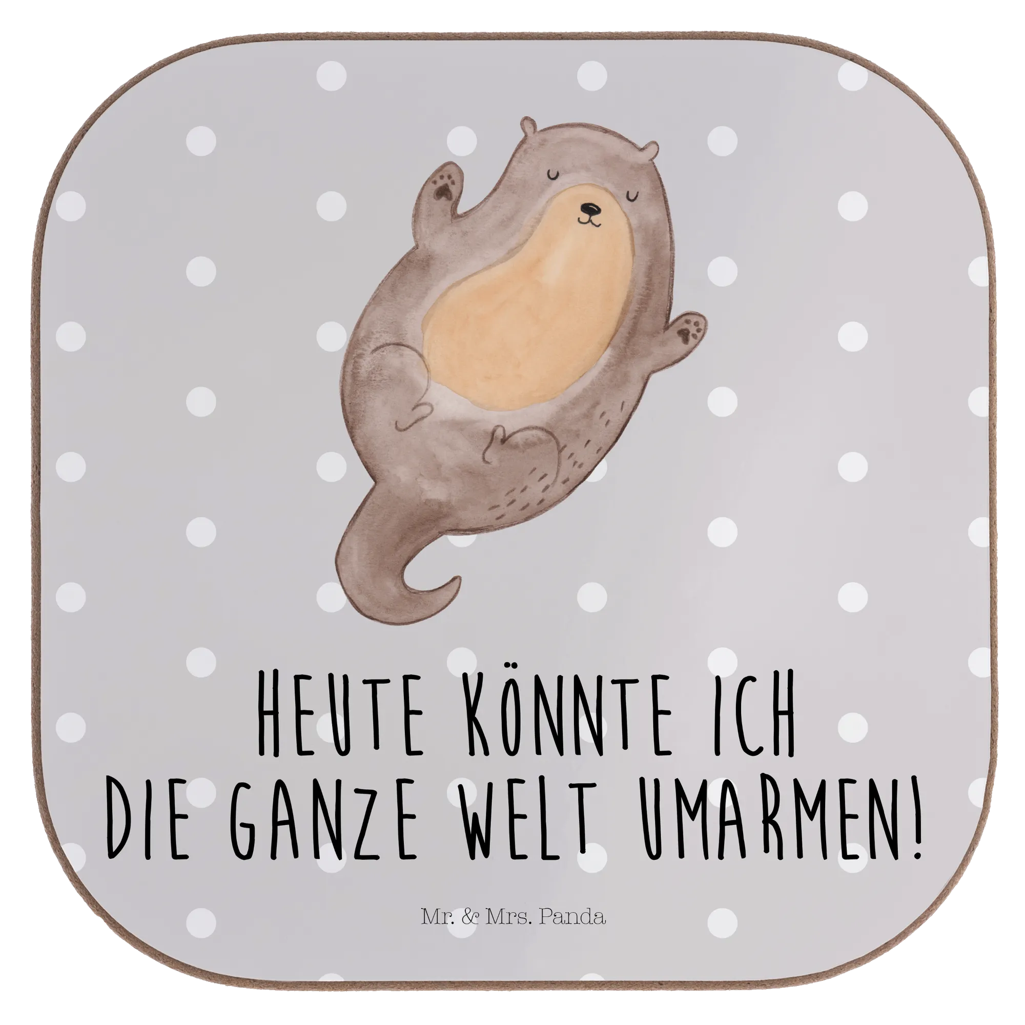 Square coaster otter Embrace - with a saying - Grey Pastel