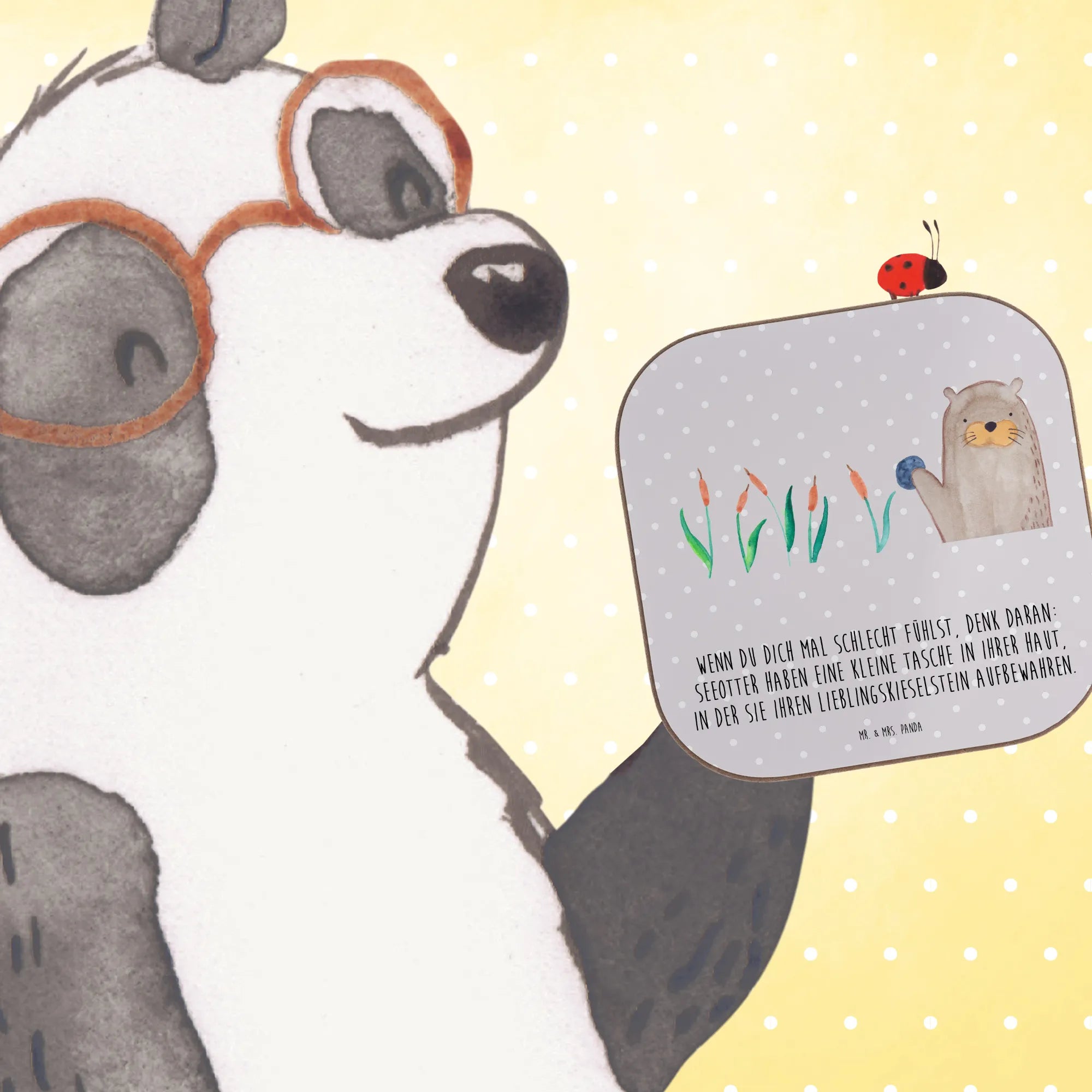 This charming otter design is not just functional but also a playful piece of art! The otter, holding its favorite pebble high in the air, is hand-drawn with love by Mrs. Panda. What better way to brighten up your day or that of a fellow animal lover? Each time you use the coaster, you'll be reminded of the fun and cheerfulness that otters represent.