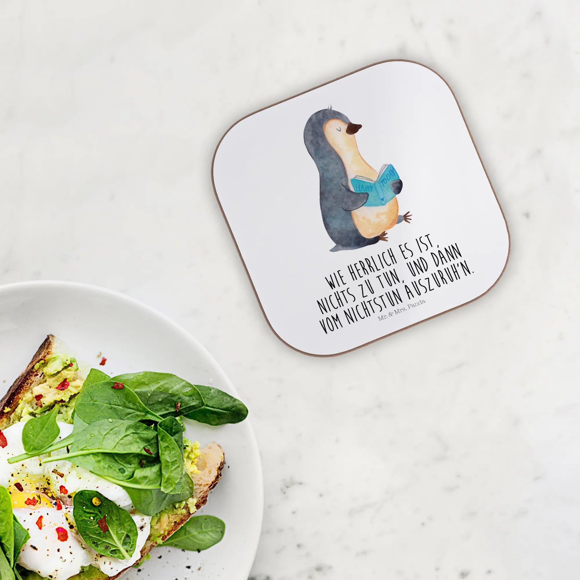 Are you searching for the perfect gift that captures the essence of coziness and leisure? Look no further than the Square Coaster with the delightful Penguin Book motif from our Penguin Collection! This charming coaster features a sweet penguin engrossed in a thrilling book, embodying the quintessential 'bookworm' spirit. Imagine your loved ones enjoying a warm cup of coffee or tea while being inspired by the joy of reading.