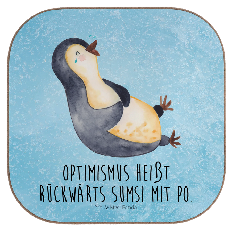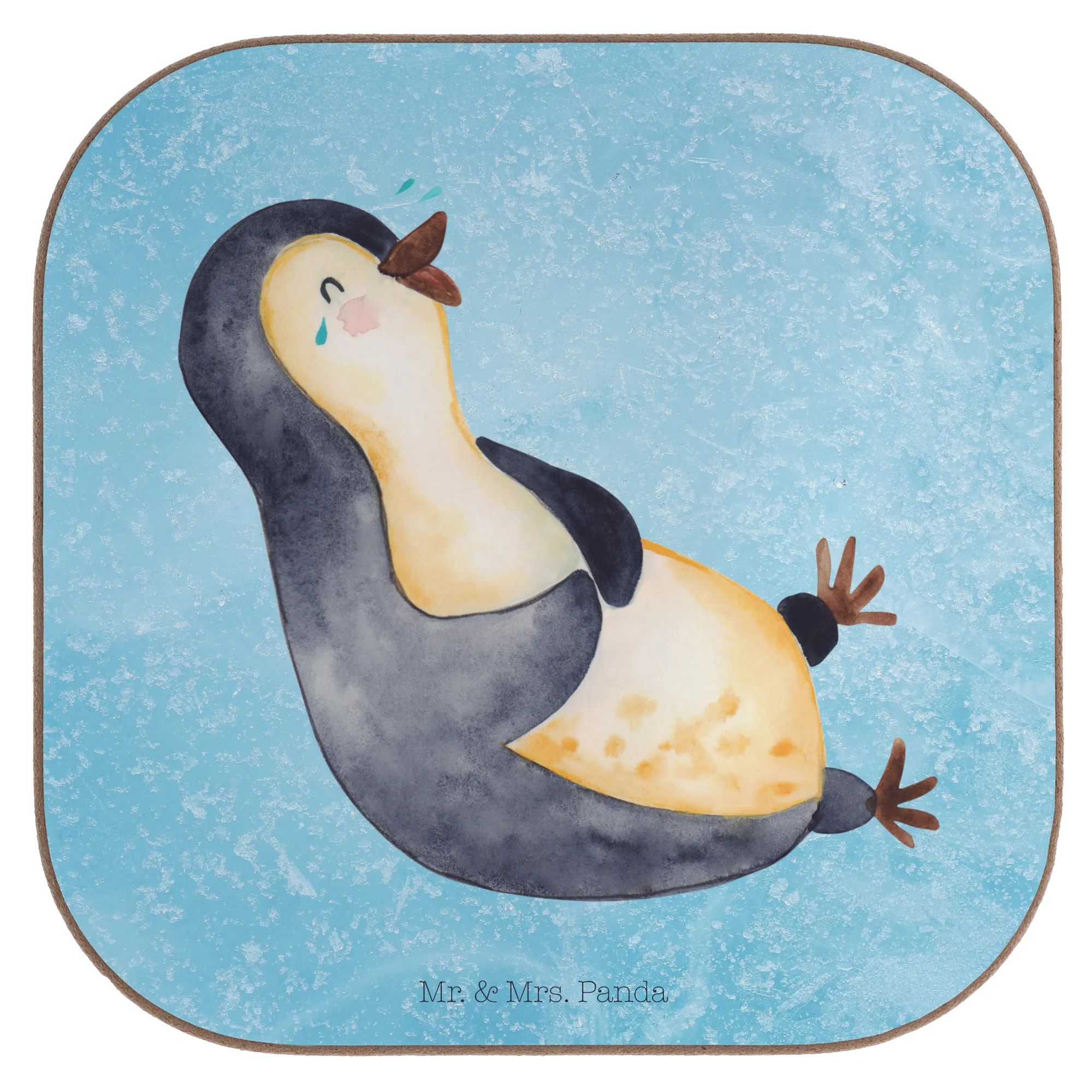 Square coaster Penguin Laugh - with saying - Ice Blue