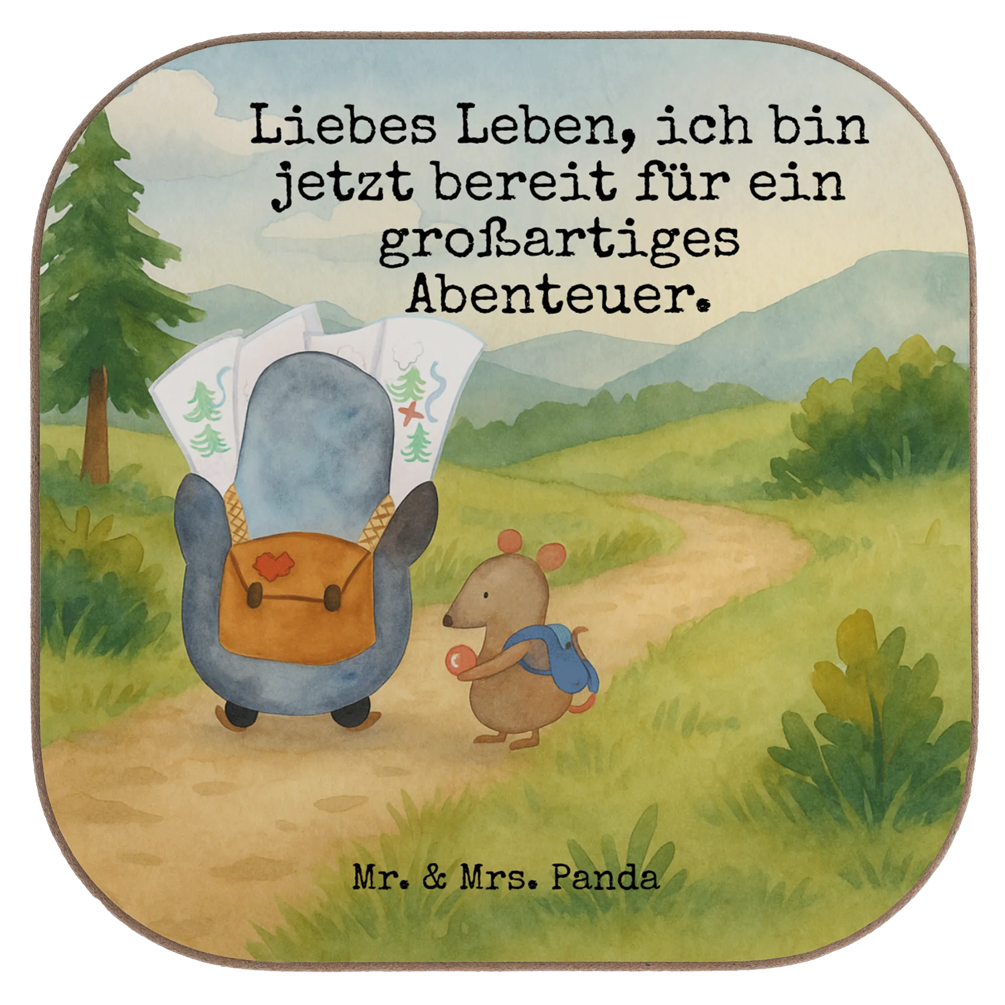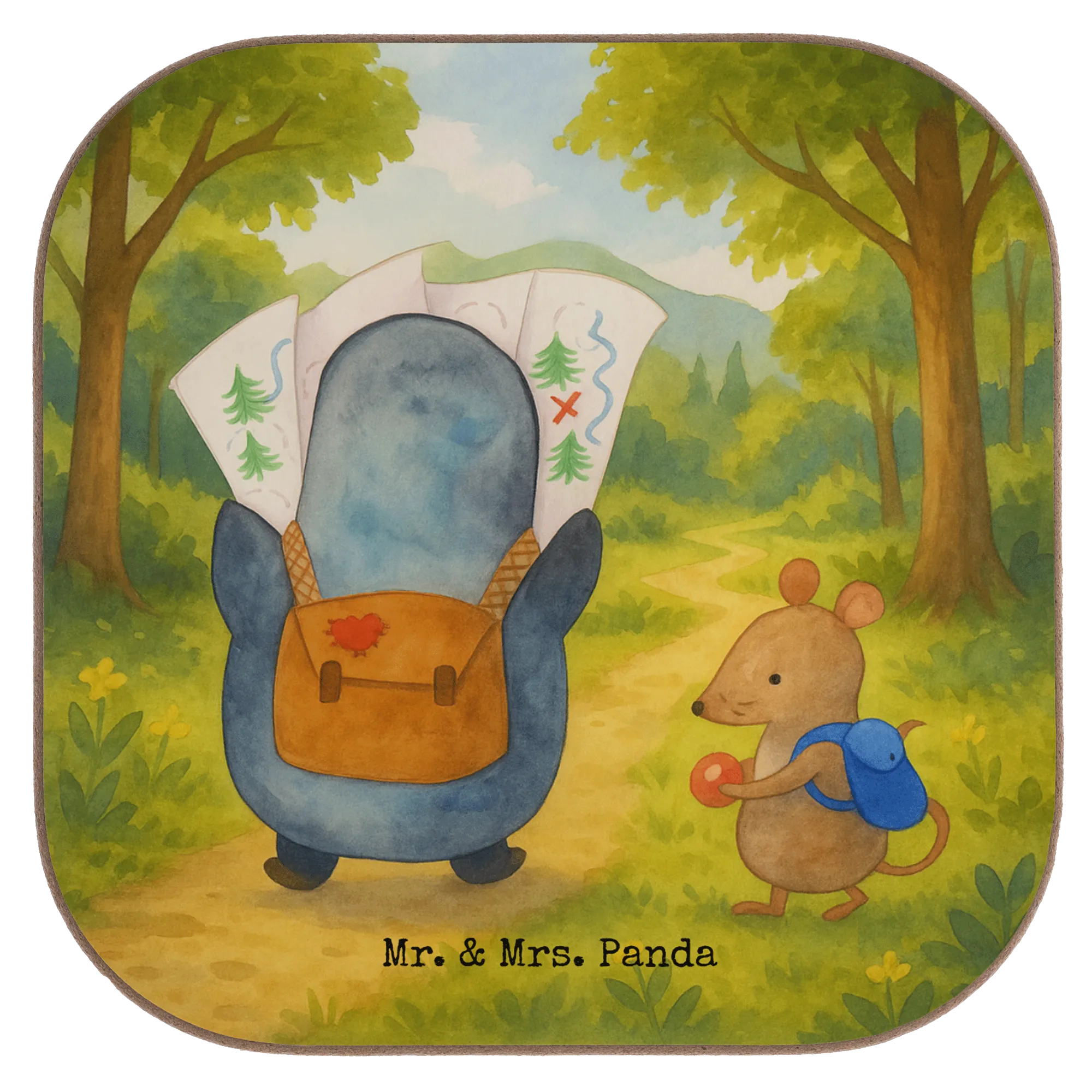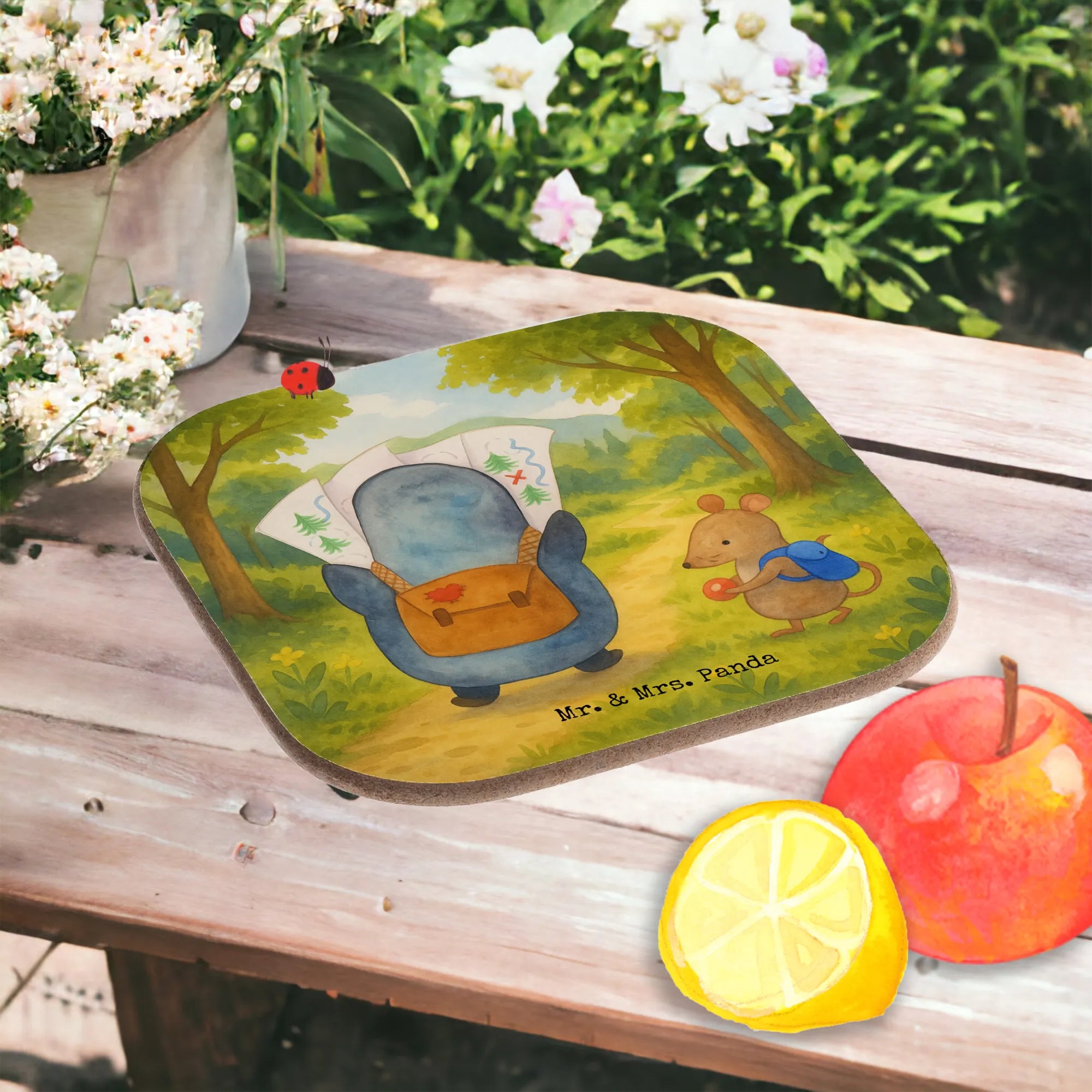 Square coaster Penguin & Mouse Hiker Design - with a saying