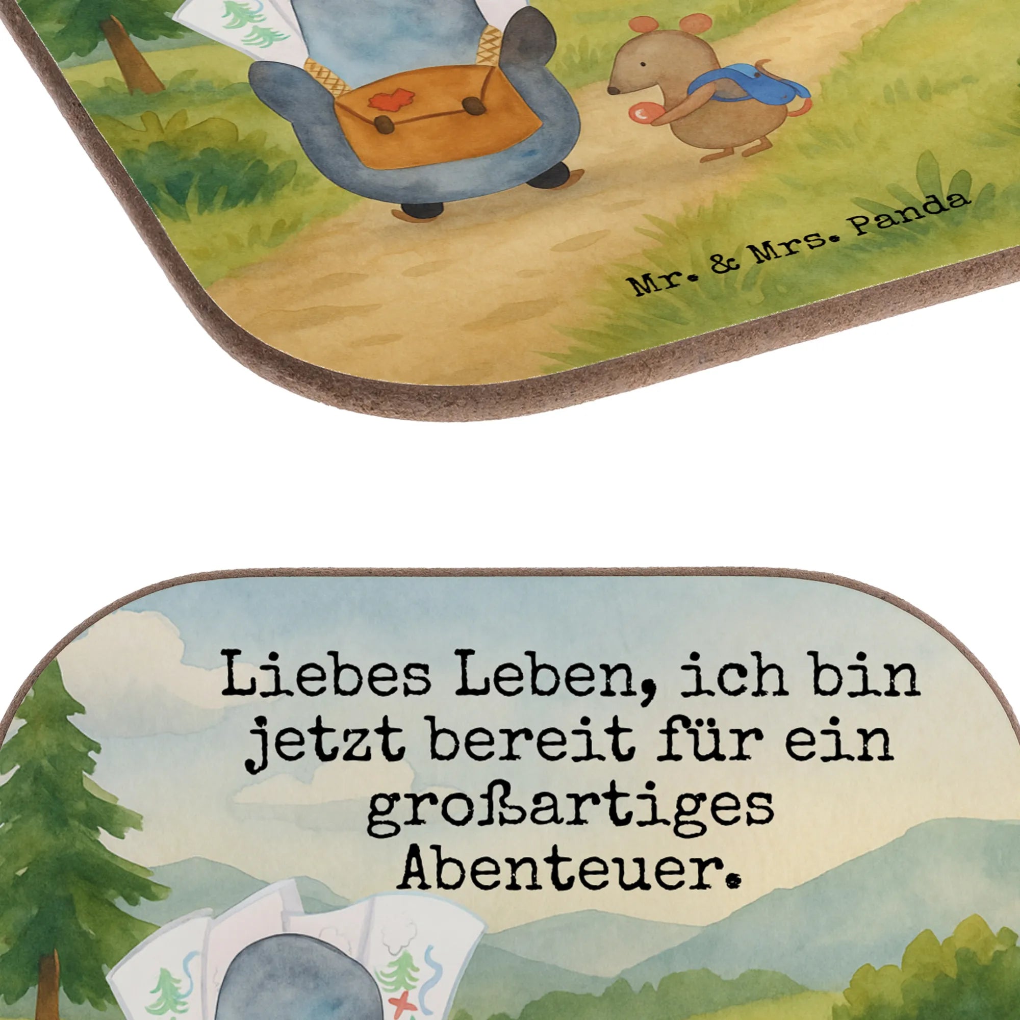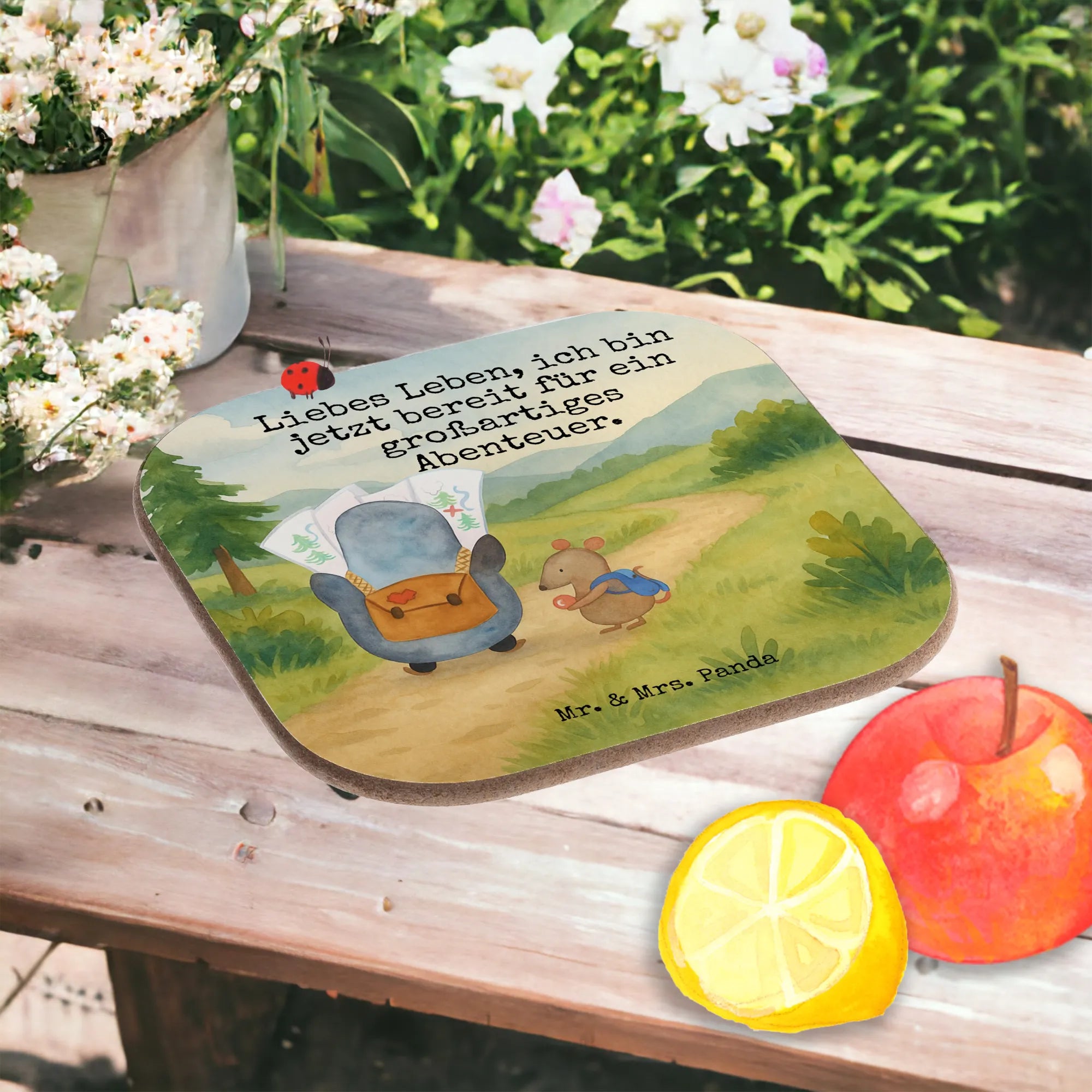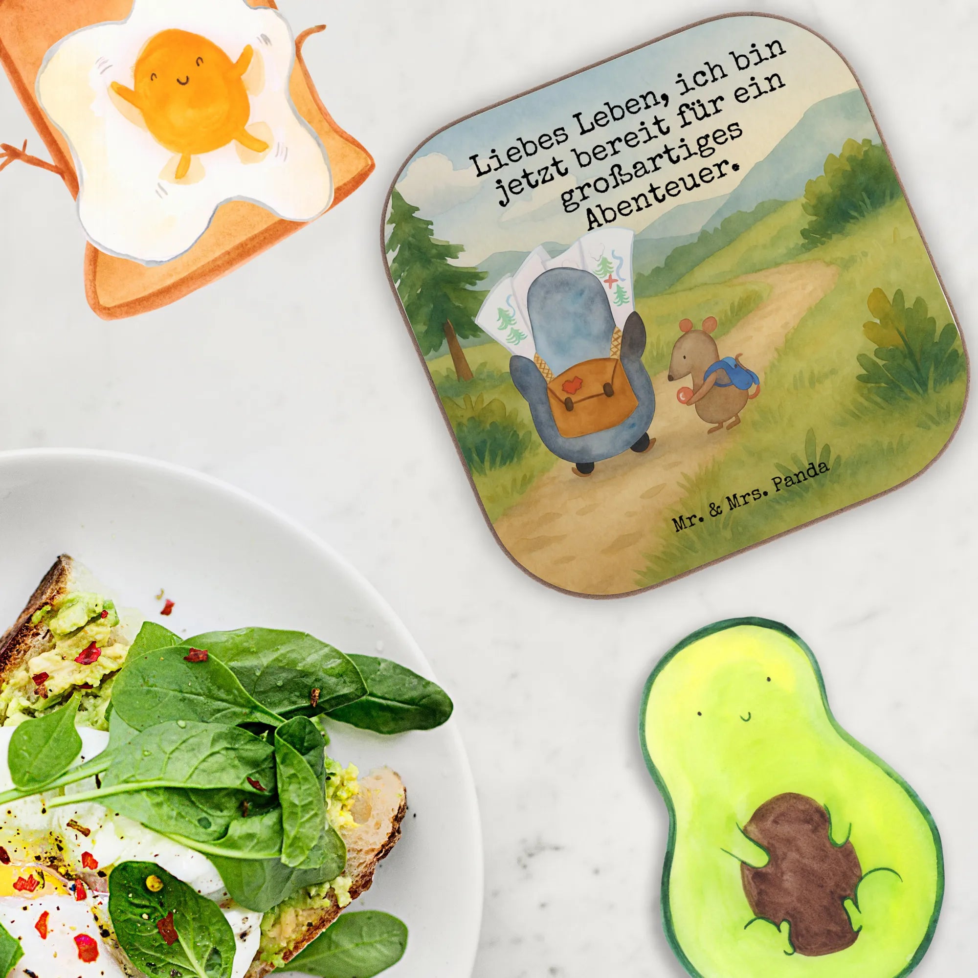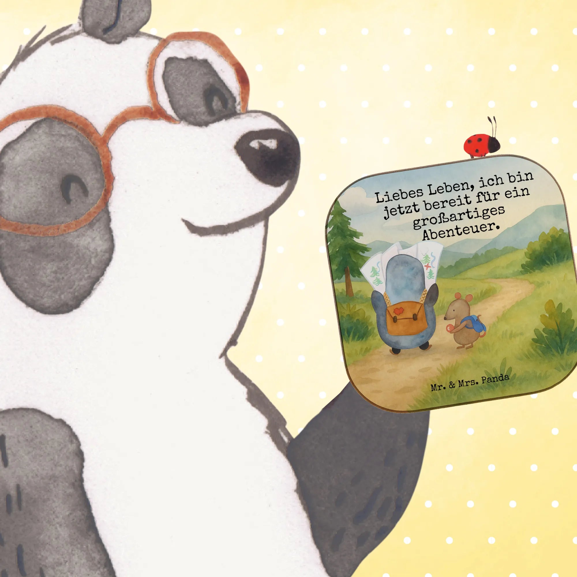 Square coaster Penguin & Mouse Hiker Design - with a saying