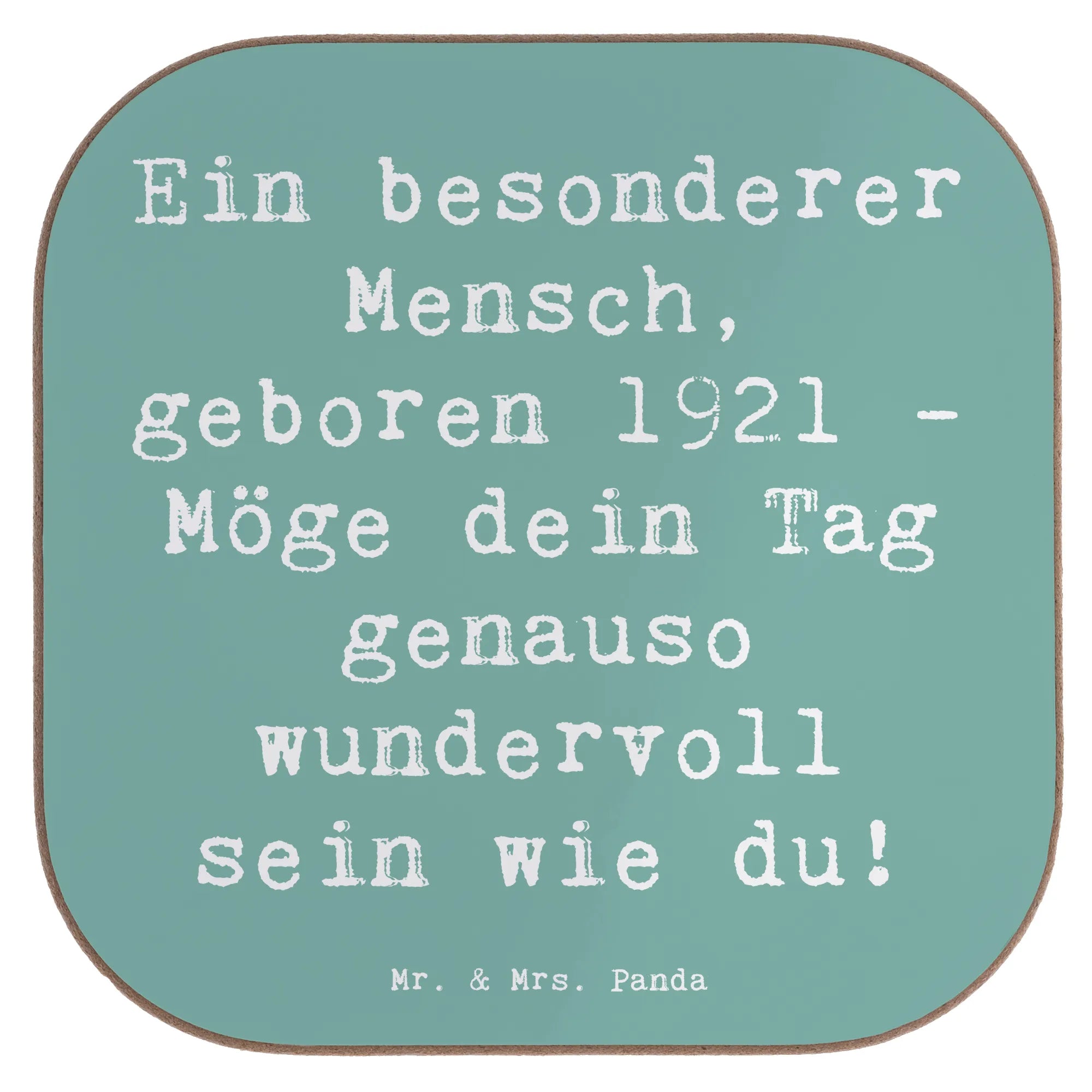 Square coaster Saying Ein besonderer Mensch, geboren 1921 - Möge dein Tag genauso wundervoll sein wie du! - Sea Breeze