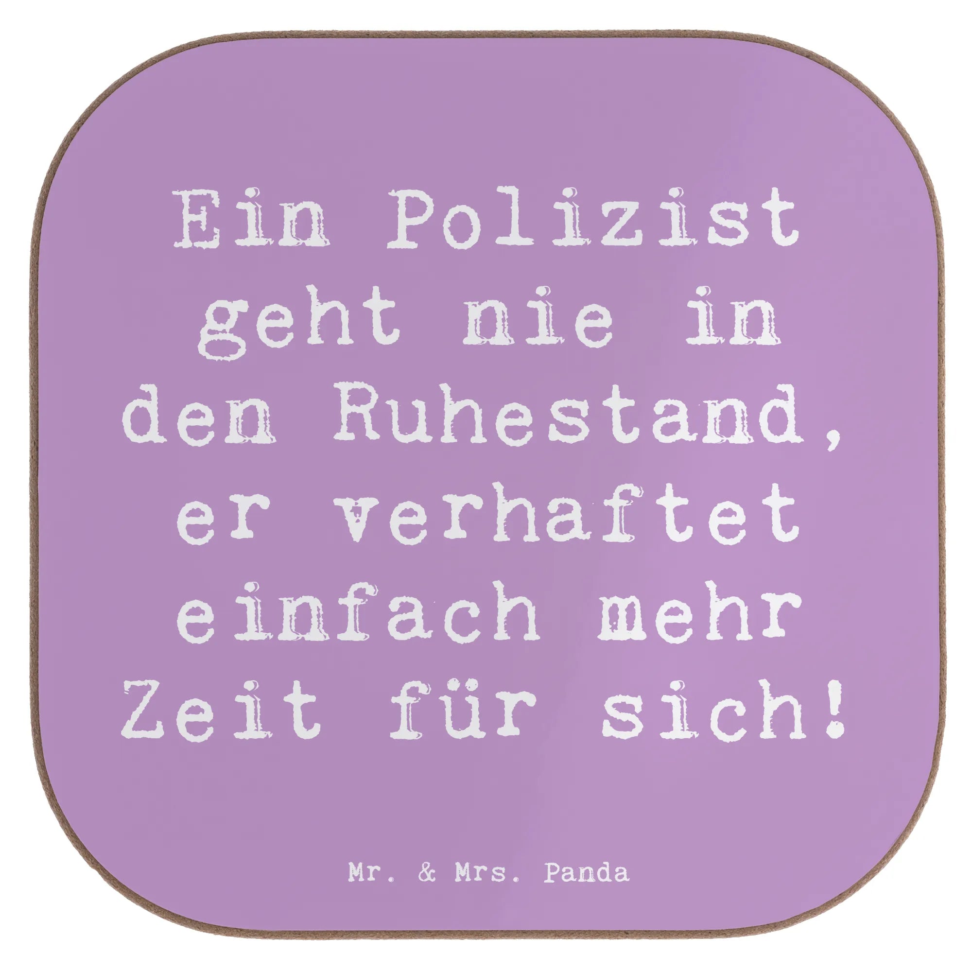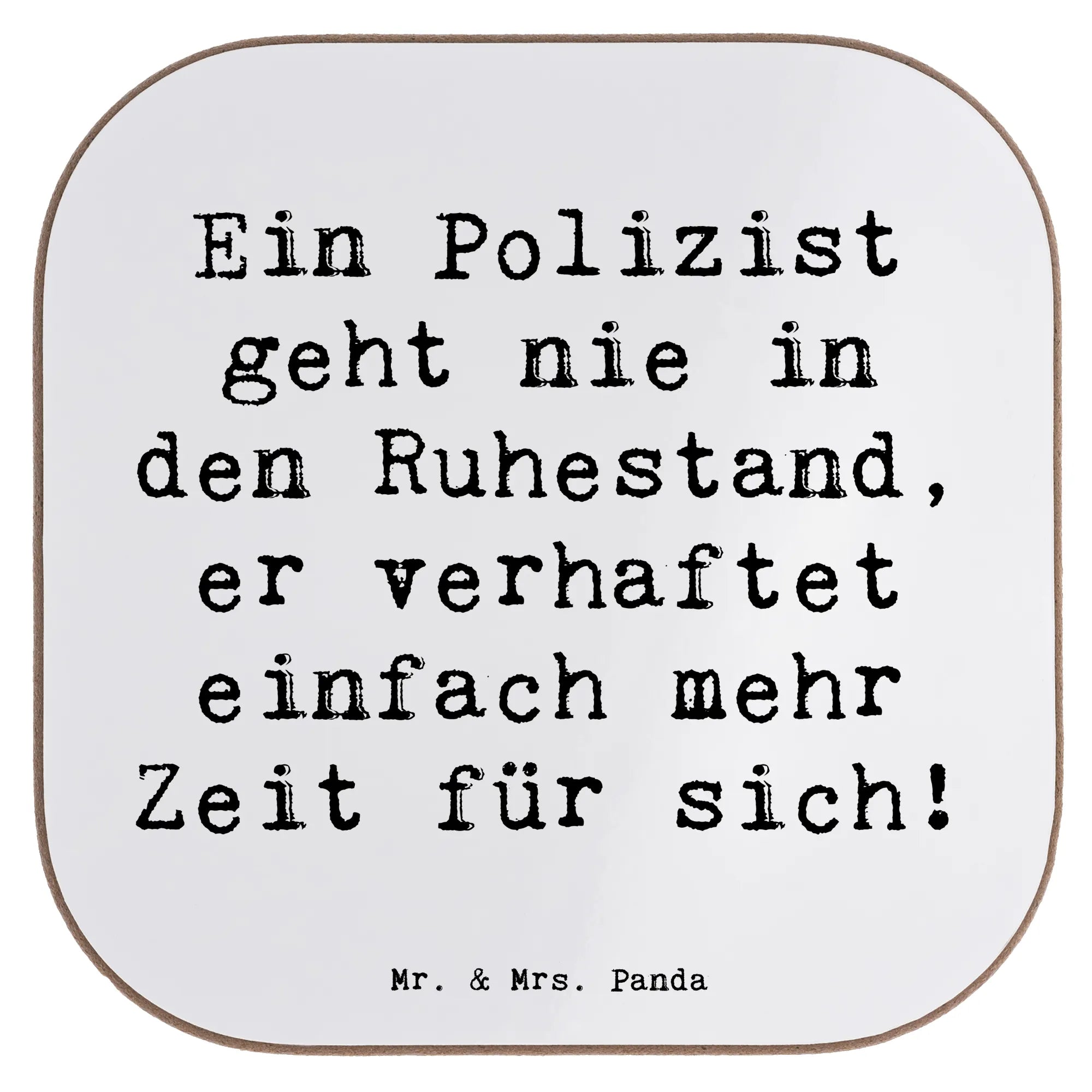 Hol dir ein kleines Lieblingsstück für den Tisch: Unser liebevoll gestalteter, quadratischer Untersetzer zeigt das handgezeichnete Polizisten-Motiv und den lustigen Spruch „Ein Polizist geht nie in den Ruhestand, er verhaftet einfach mehr Zeit für sich!“. Ein echter Hingucker für Kaffee, Tee, Wein oder Bier.