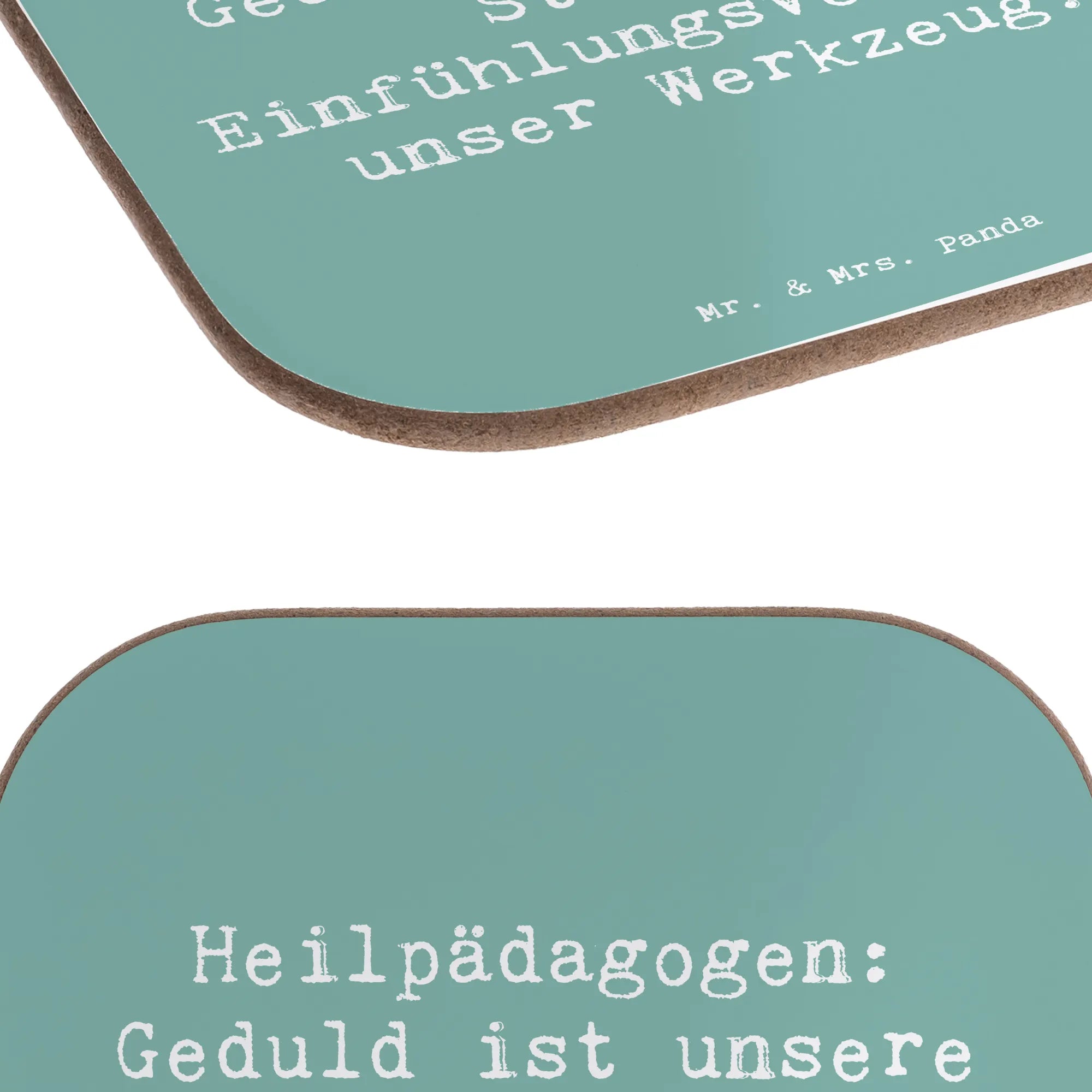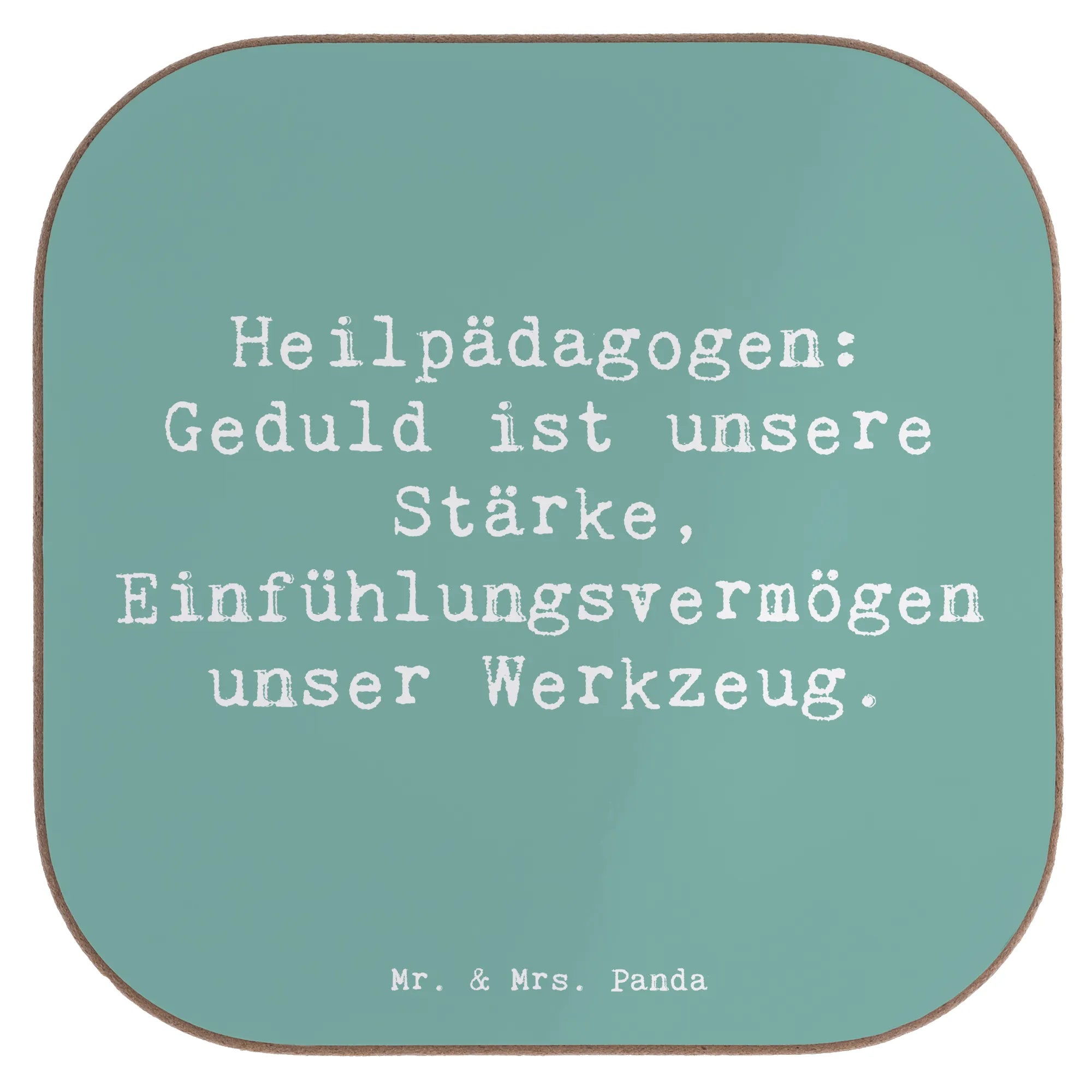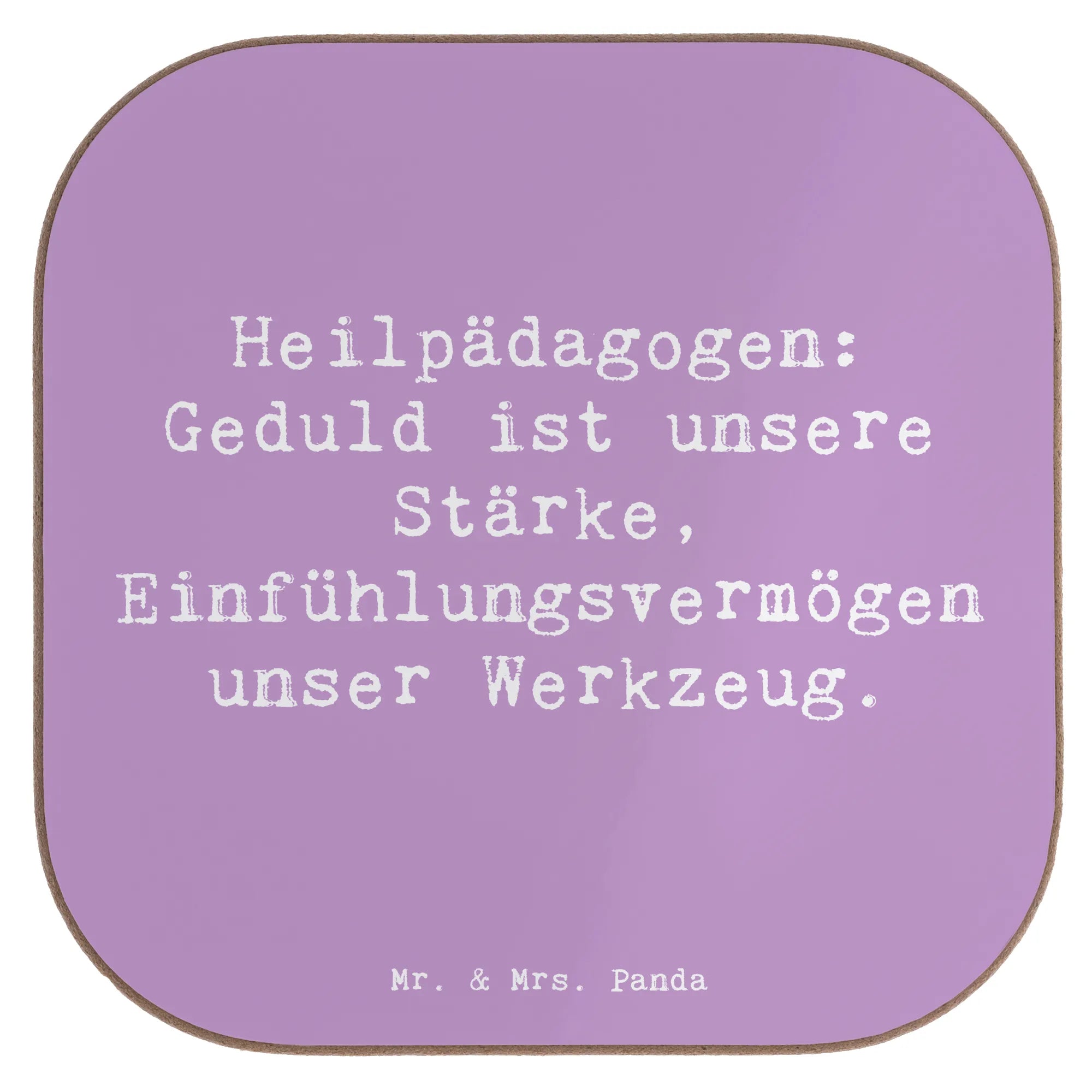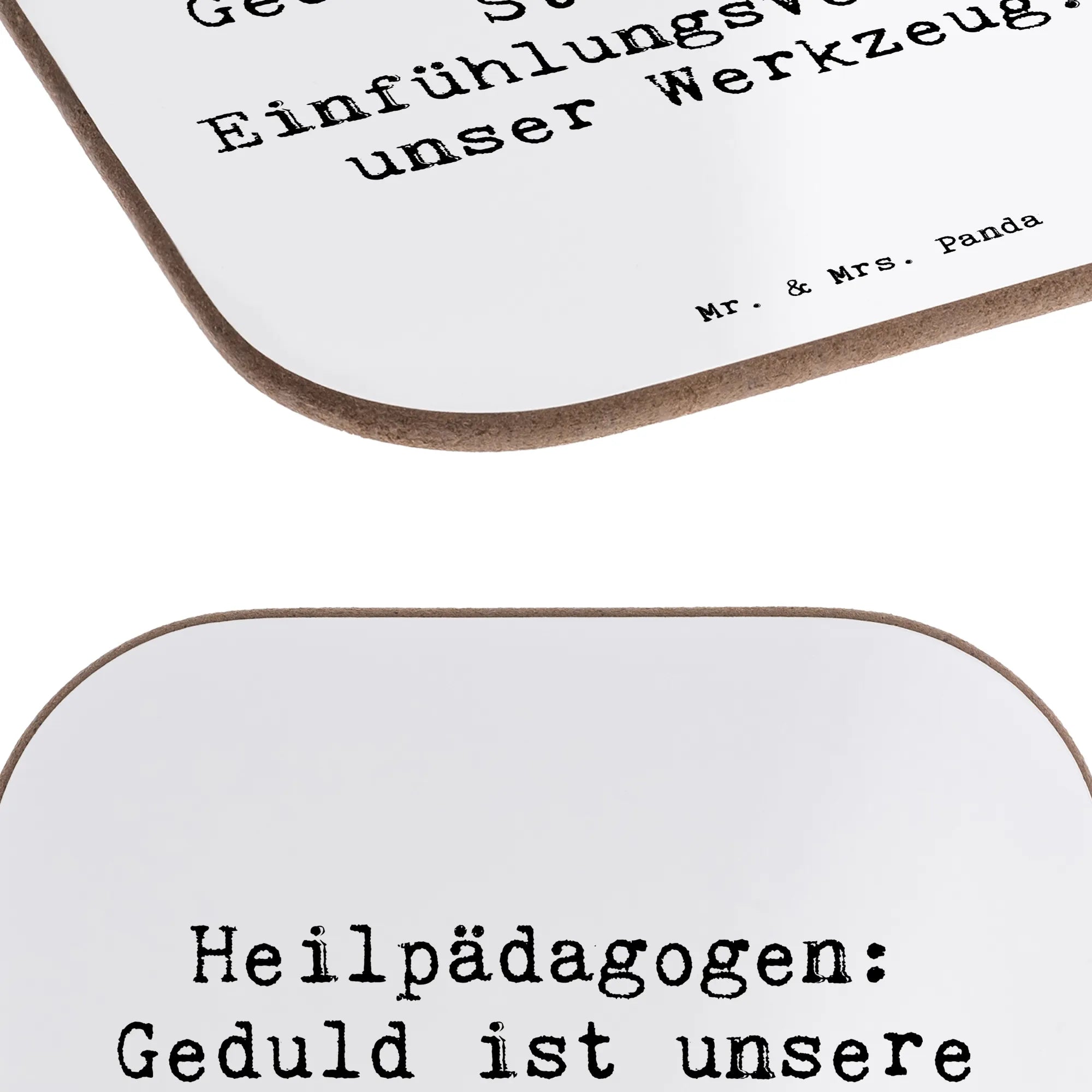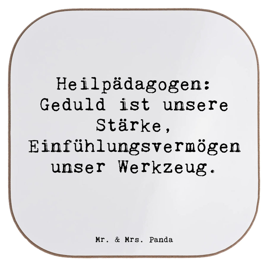 Square coaster Saying Heilpädagogen: Geduld ist unsere Stärke, Einfühlungsvermögen unser Werkzeug. - White
