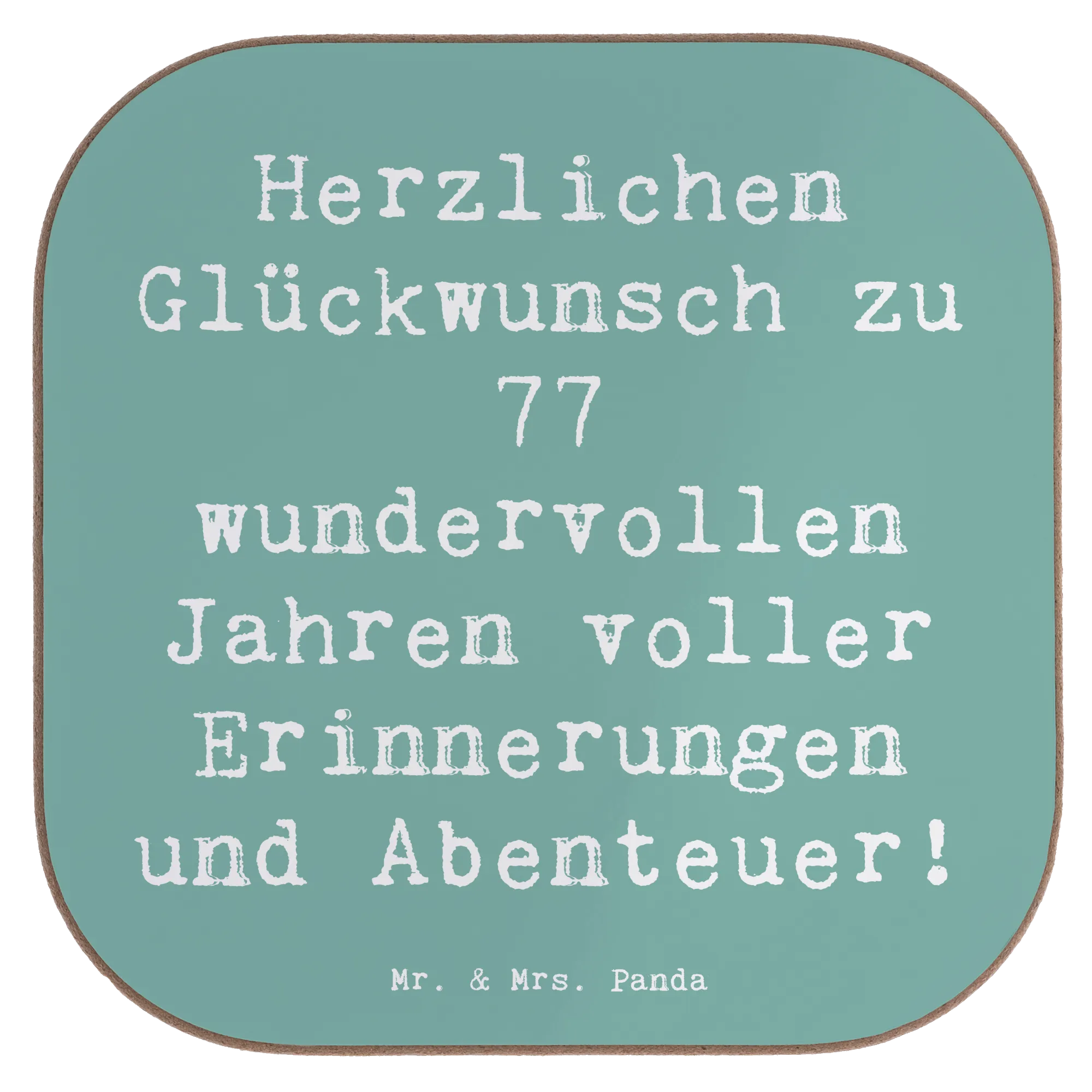 Square coaster Saying Herzlichen Glückwunsch zu 77 wundervollen Jahren voller Erinnerungen und Abenteuer! - Sea Breeze