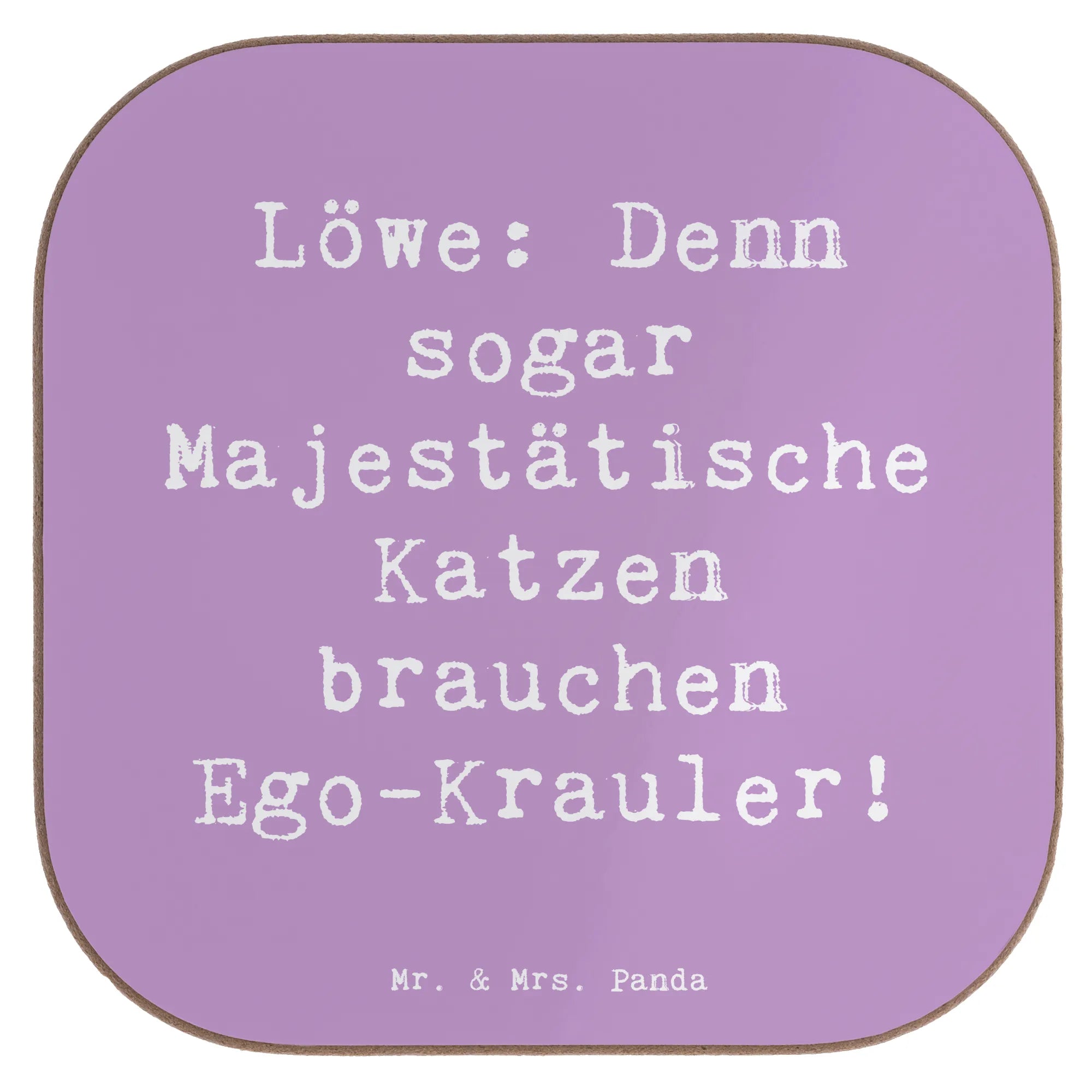 Square coaster Saying Löwe: Denn sogar Majestätische Katzen brauchen Ego-Krauler! - Carton 300 grams - Sea Breeze
