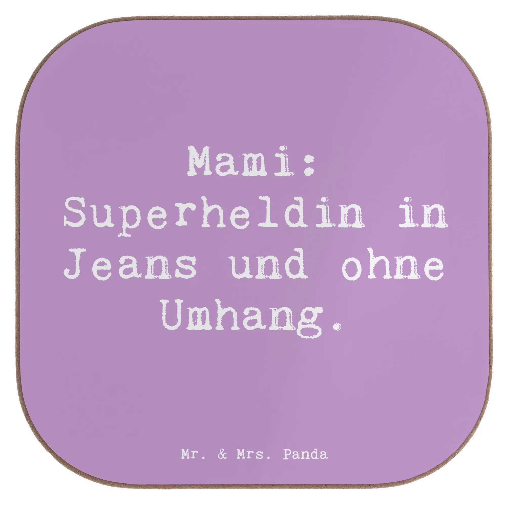 Square coaster Saying Mami: Superheldin in Jeans und ohne Umhang.