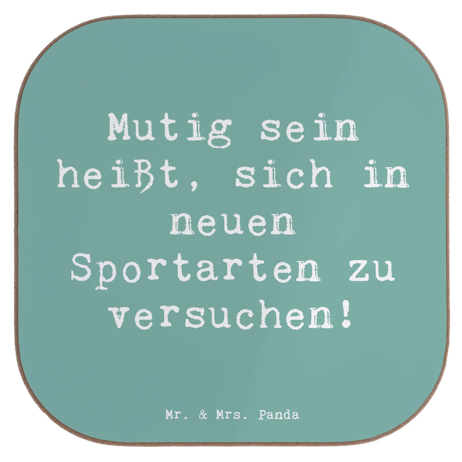Square coaster Saying Mutig sein heißt, sich in neuen Sportarten zu versuchen! - Carton 300 grams - Sea Breeze