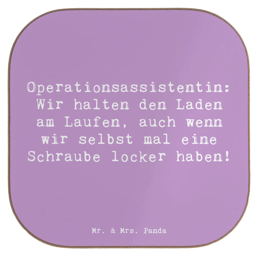 Square coaster Saying Operationsassistentin: Wir halten den Laden am Laufen, auch wenn wir selbst mal eine Schraube locker haben! - Lavender Dream