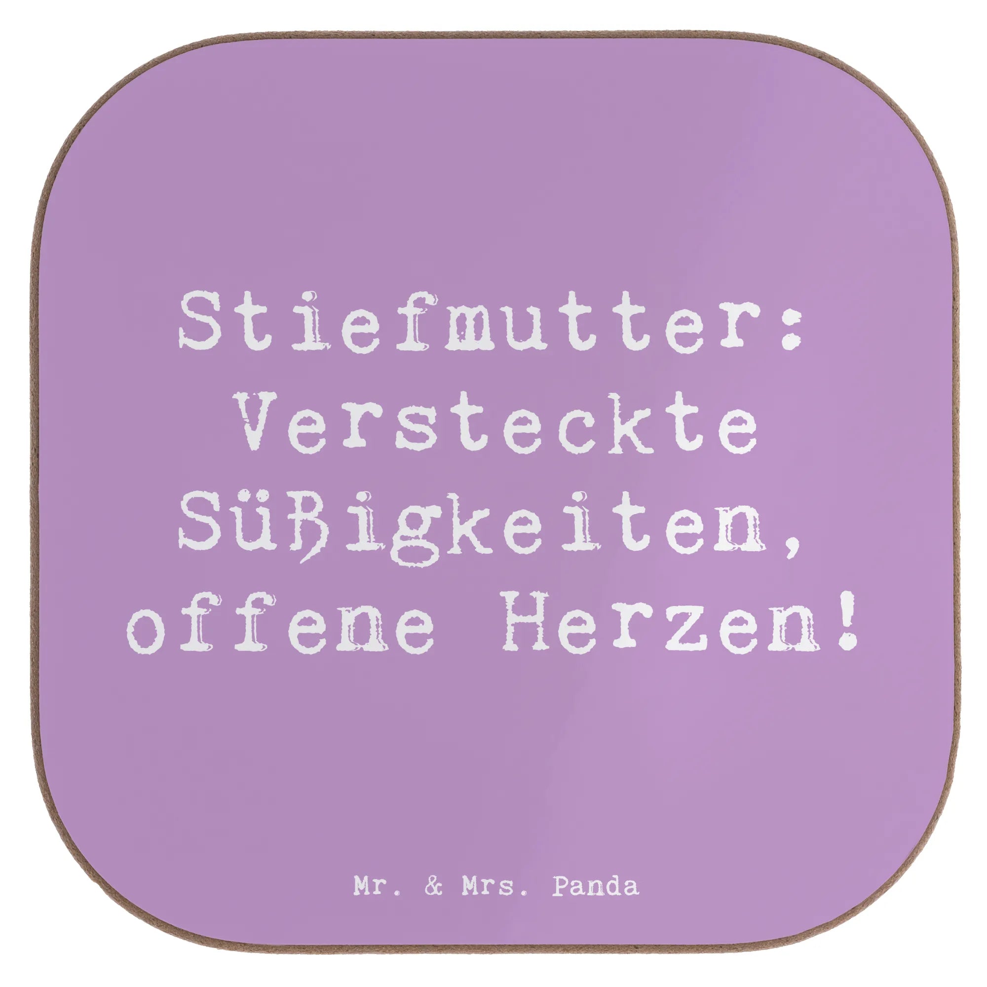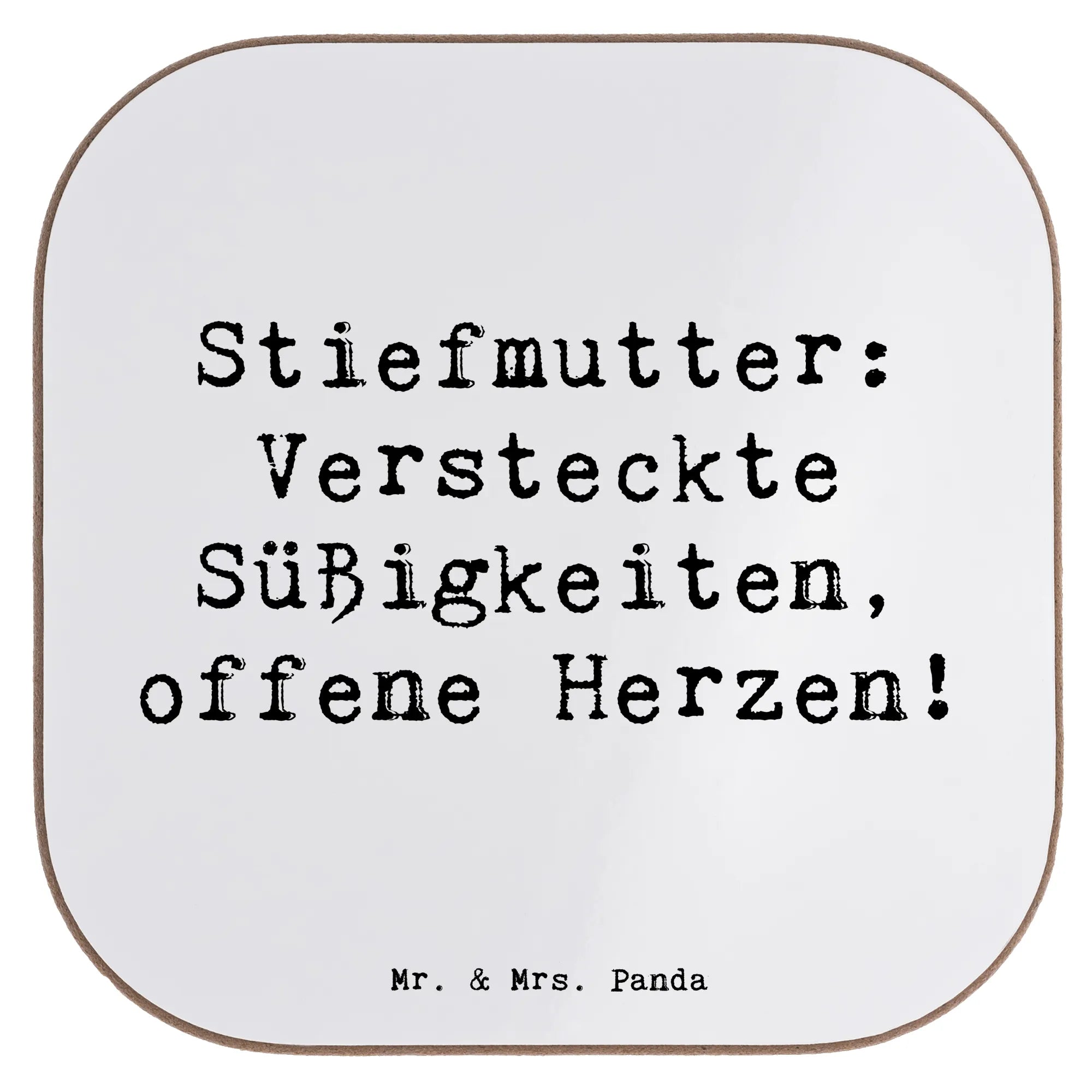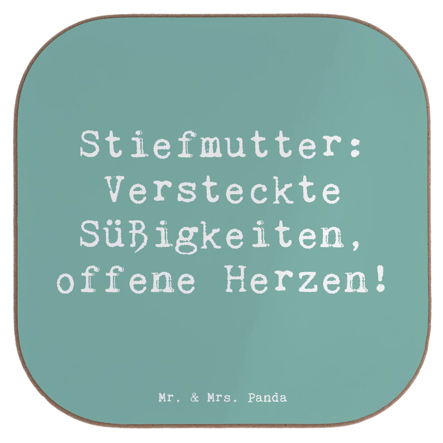 Square coaster Saying Stiefmutter: Versteckte Süßigkeiten, offene Herz – Mr. & Mrs. Panda