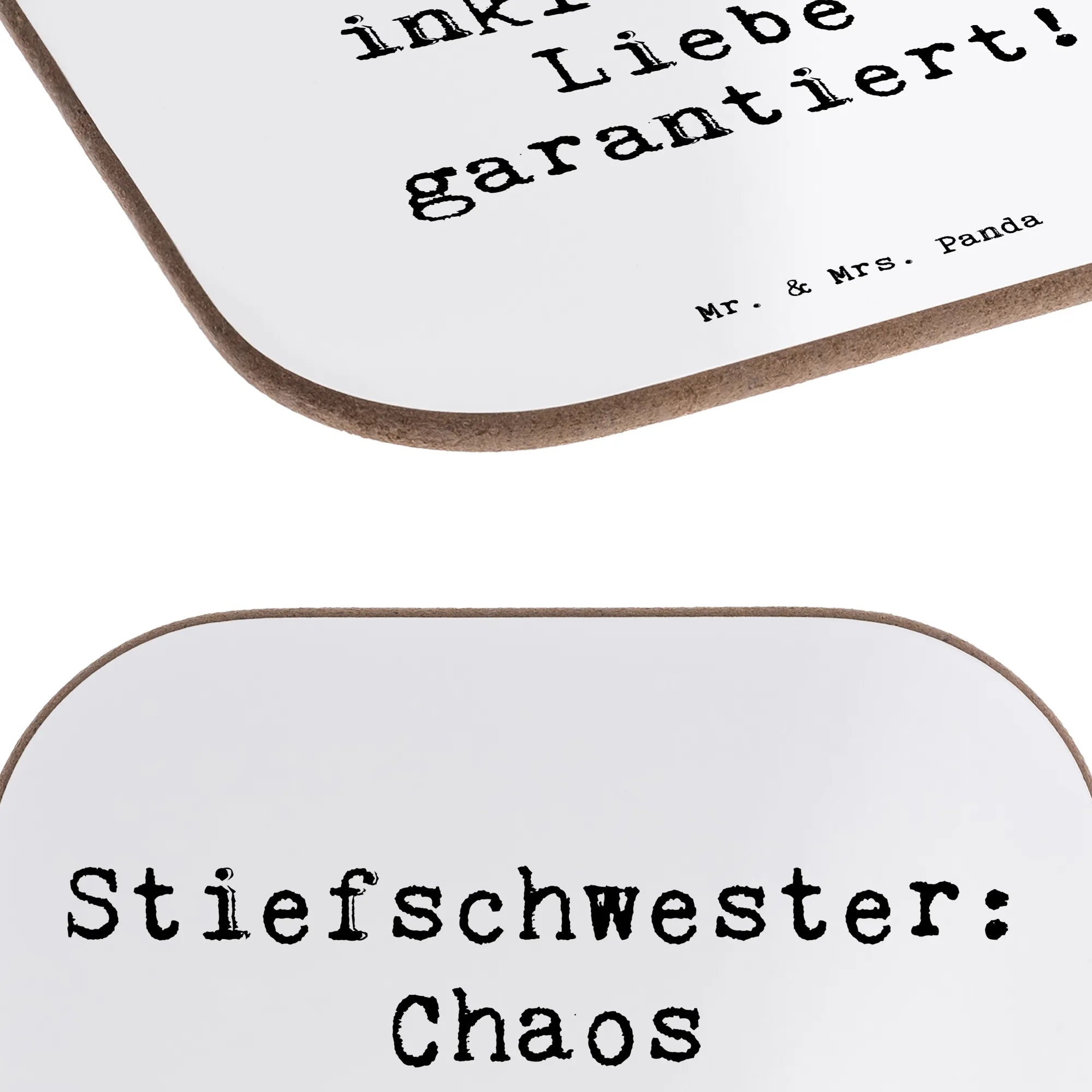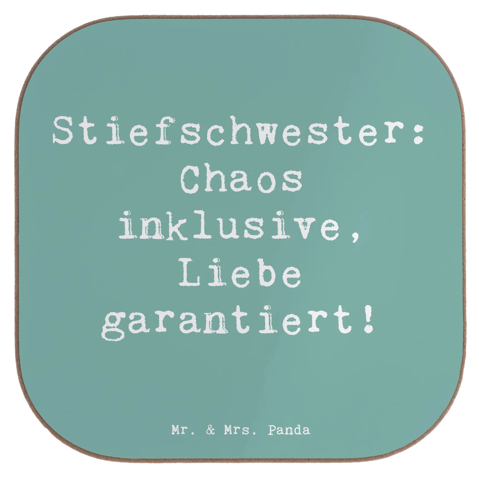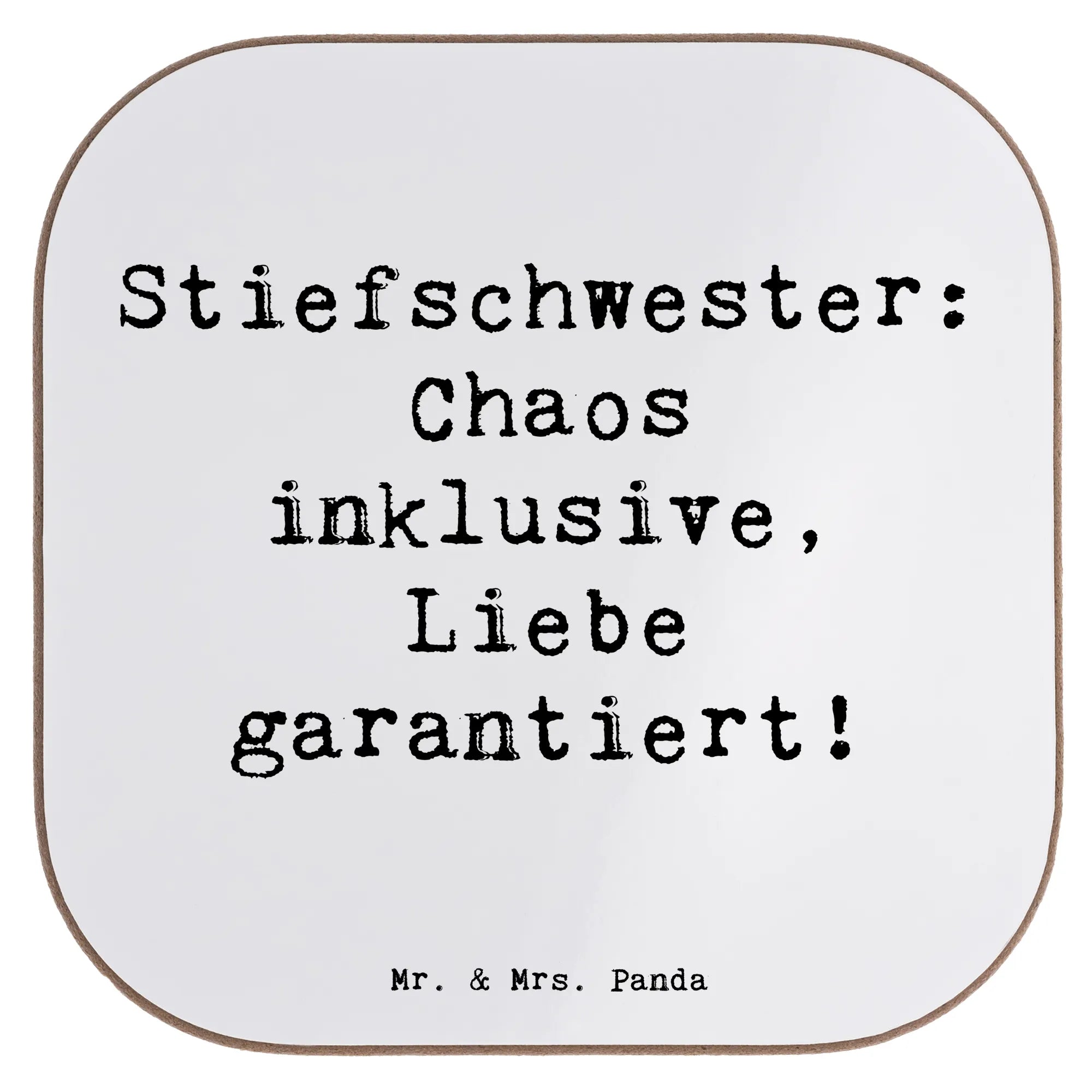 Square coaster Saying Stiefschwester: Chaos inklusive, Liebe garantier – Mr. & Mrs. Panda