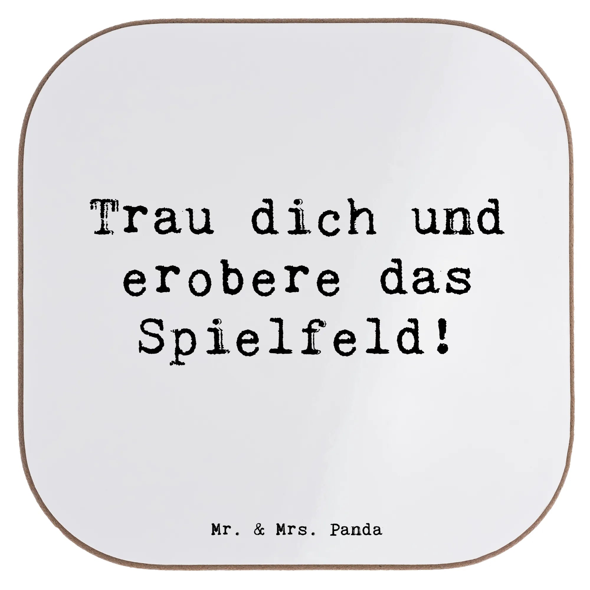 Square coaster Saying Trau dich und erobere das Spielfeld! - Carton 300 grams - Sea Breeze