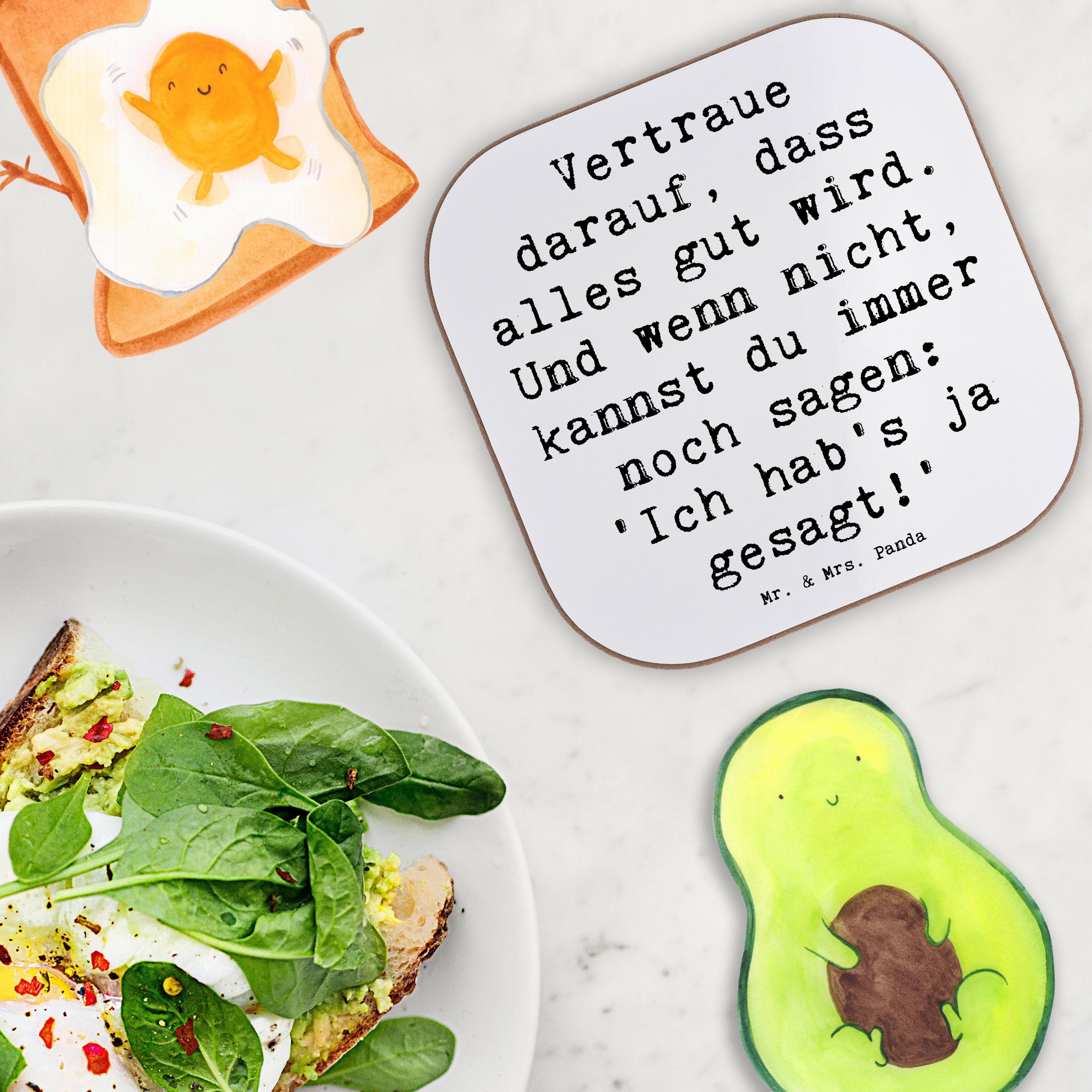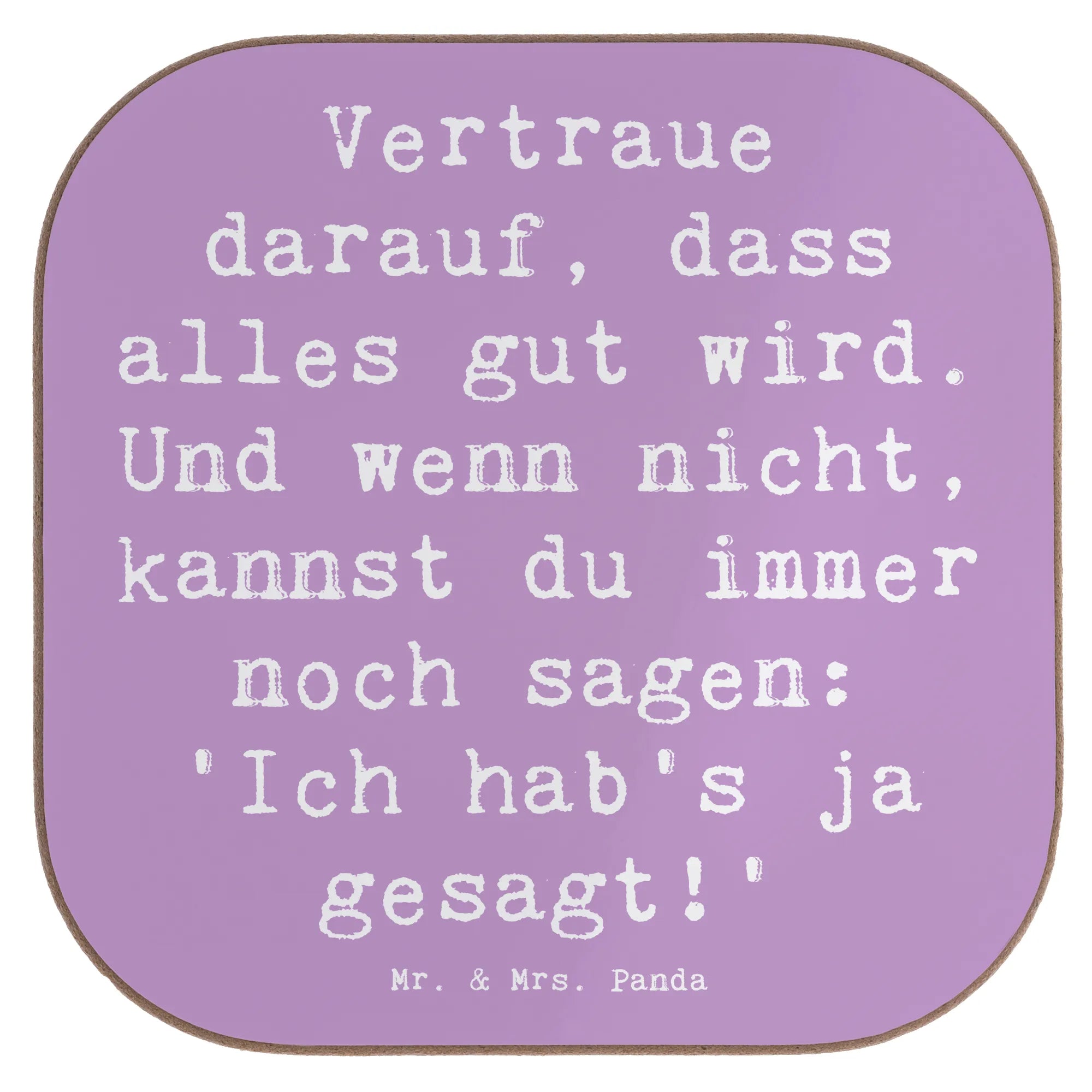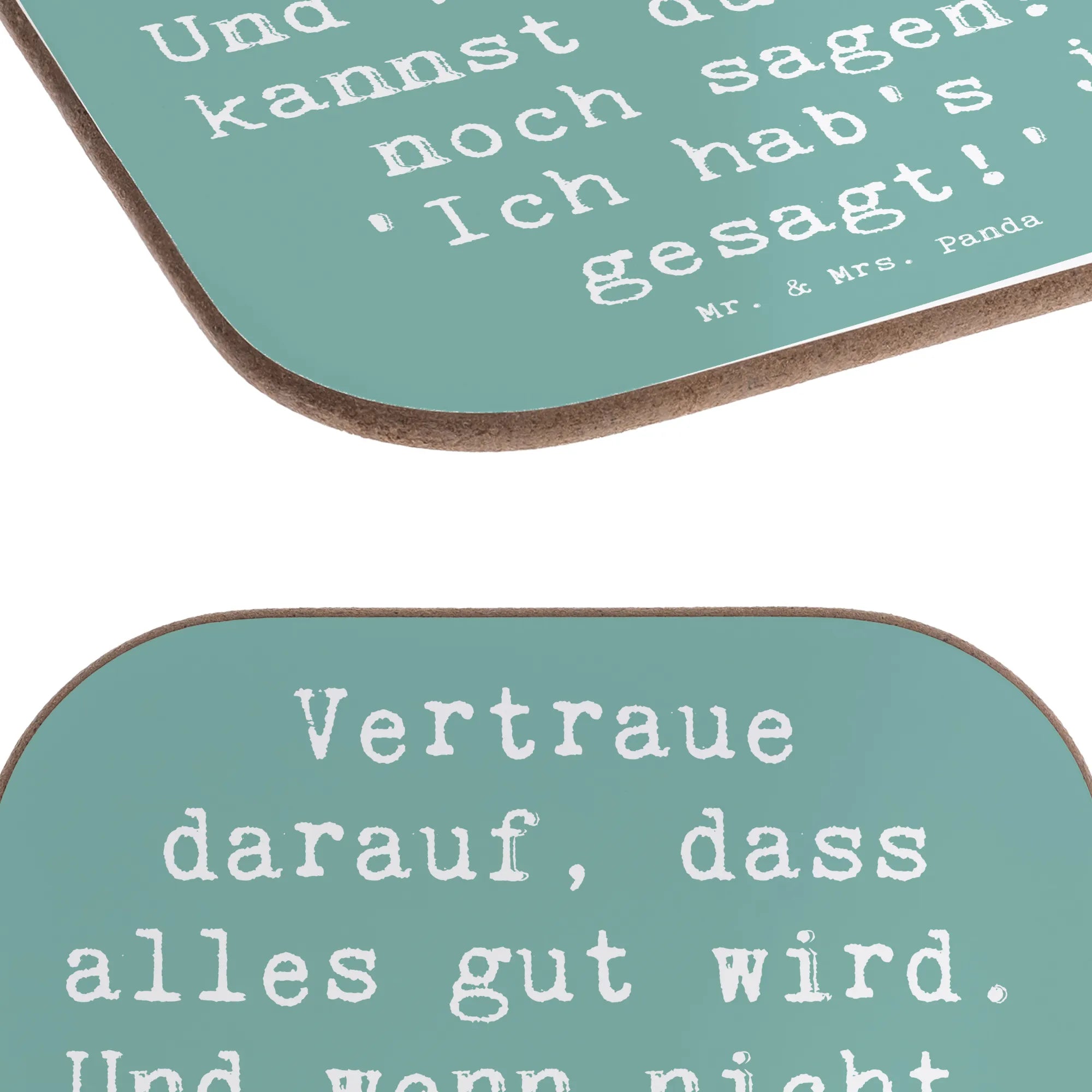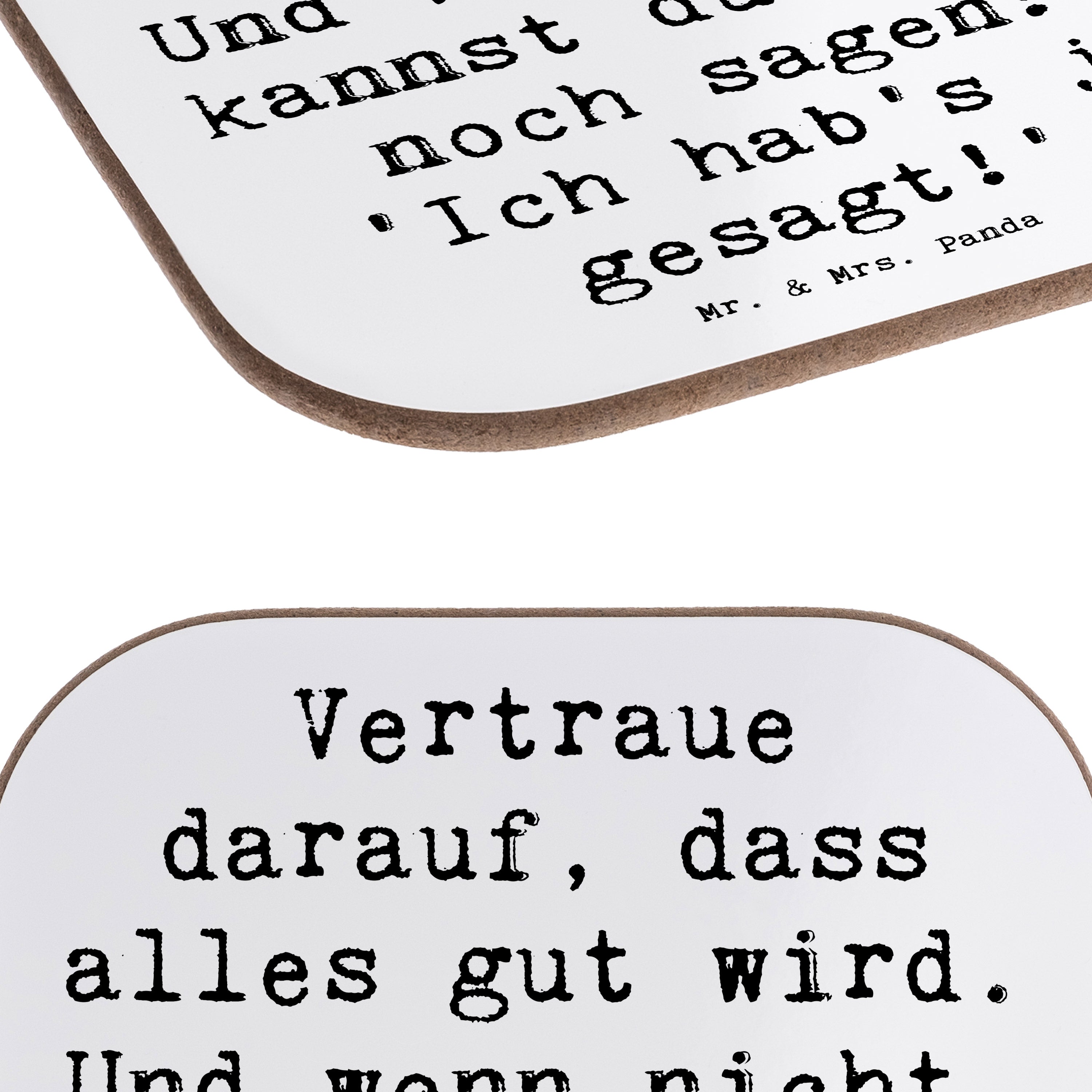 Square coaster Saying Vertraue darauf, dass alles gut wird. Und wenn nicht, kannst du immer noch sagen: 'Ich hab's ja gesagt!' - hardboard - White