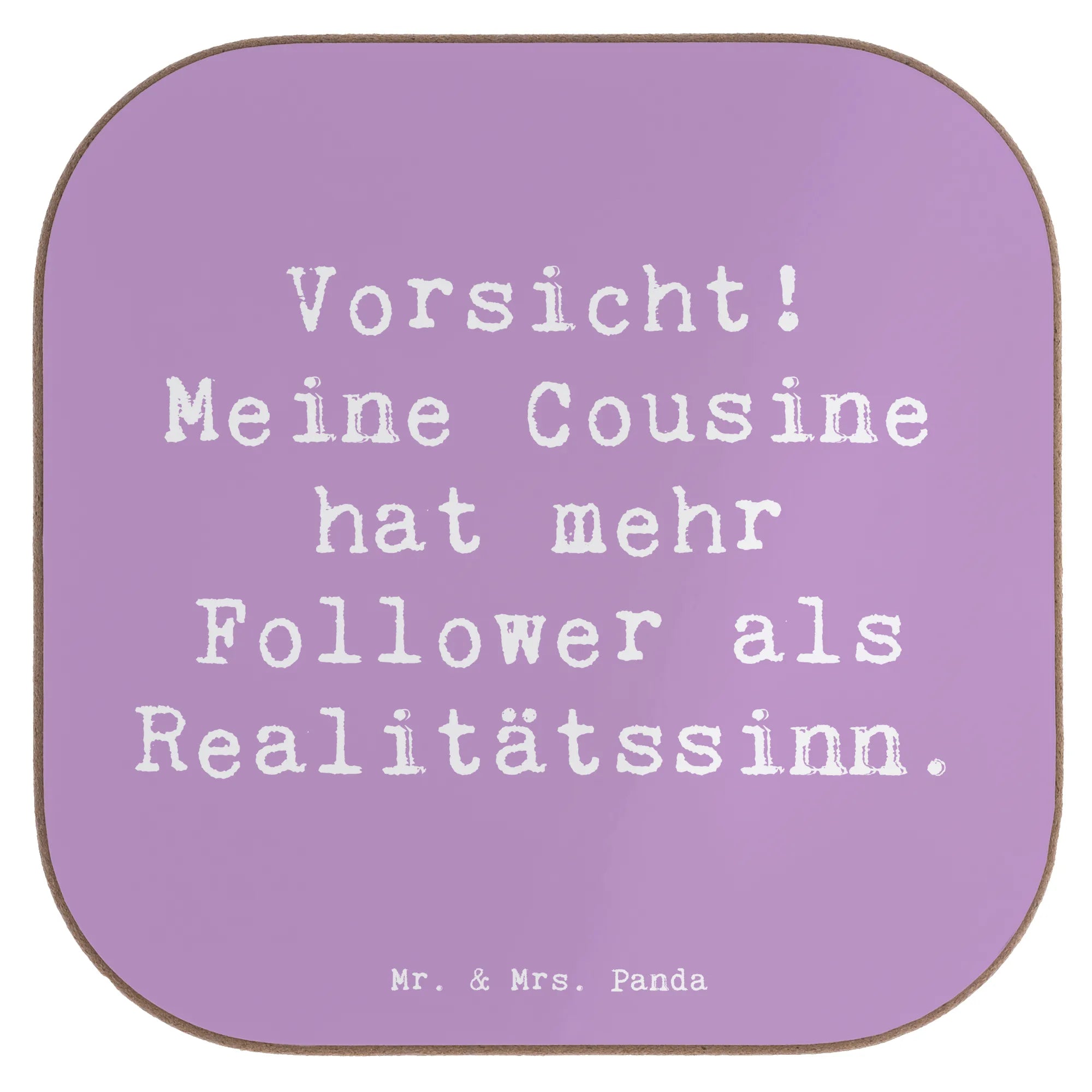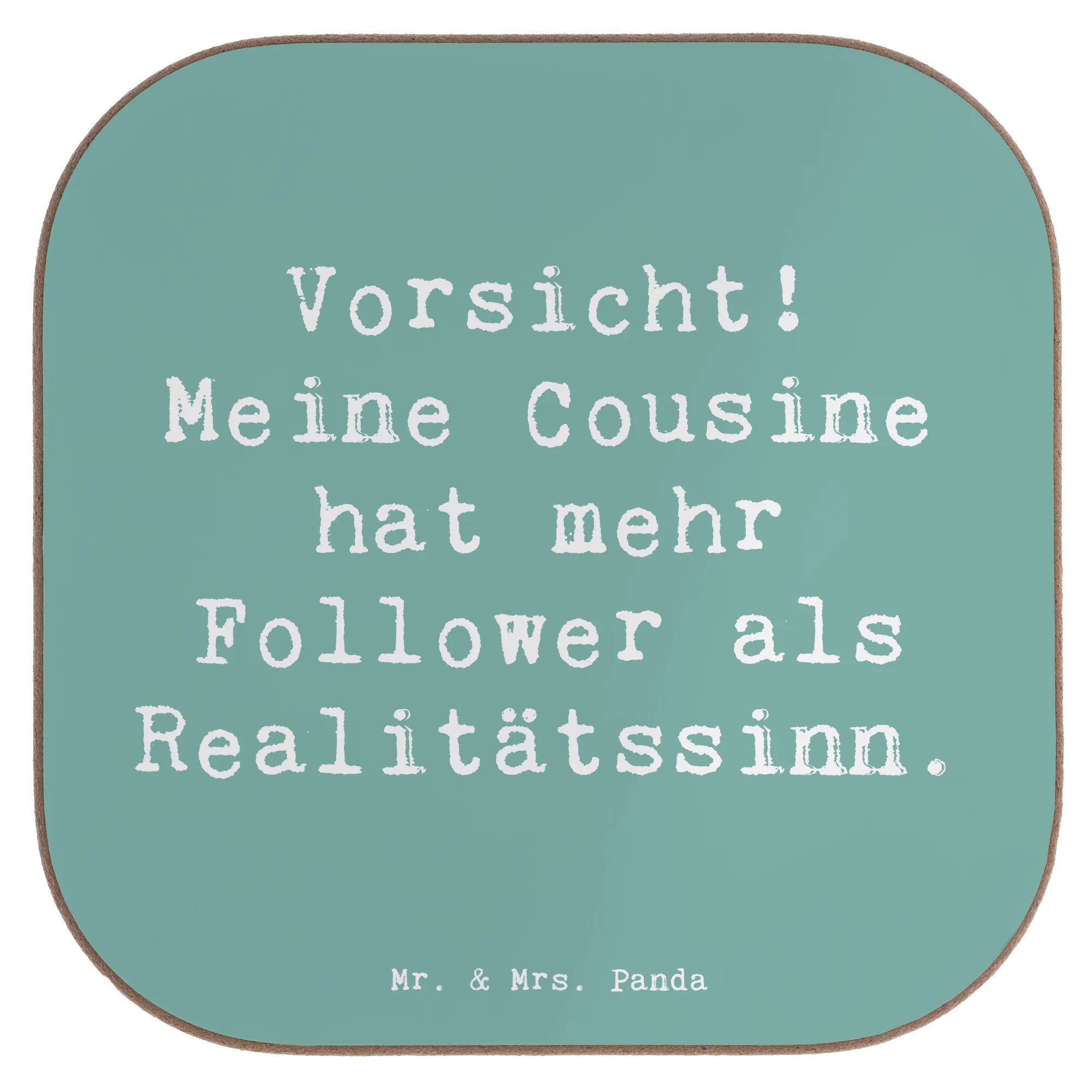 Square coaster Saying Vorsicht! Meine Cousine hat mehr Follower als Realitätssinn.