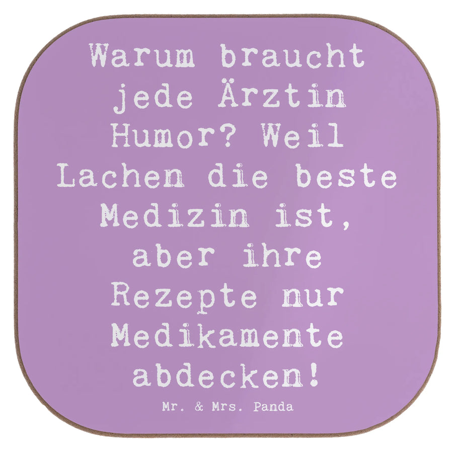 Square coaster Saying Warum braucht jede Ärztin Humor? Weil Lachen die beste Medizin ist, aber ihre Rezepte nur Medikamente abdecken! - Carton 300 grams - Lavender Dream