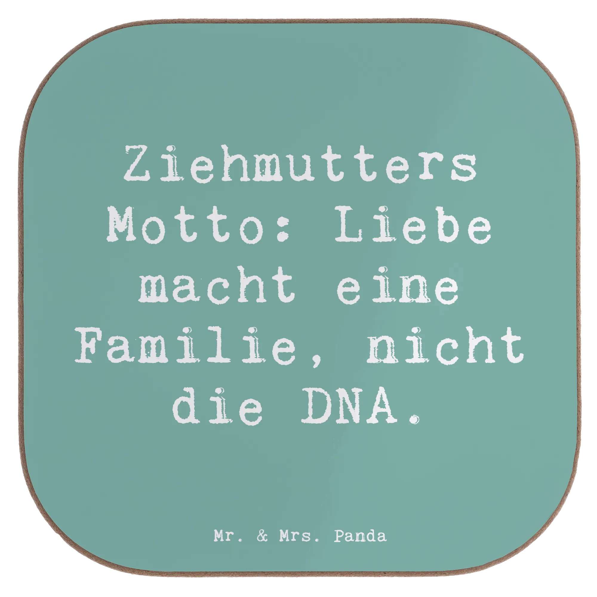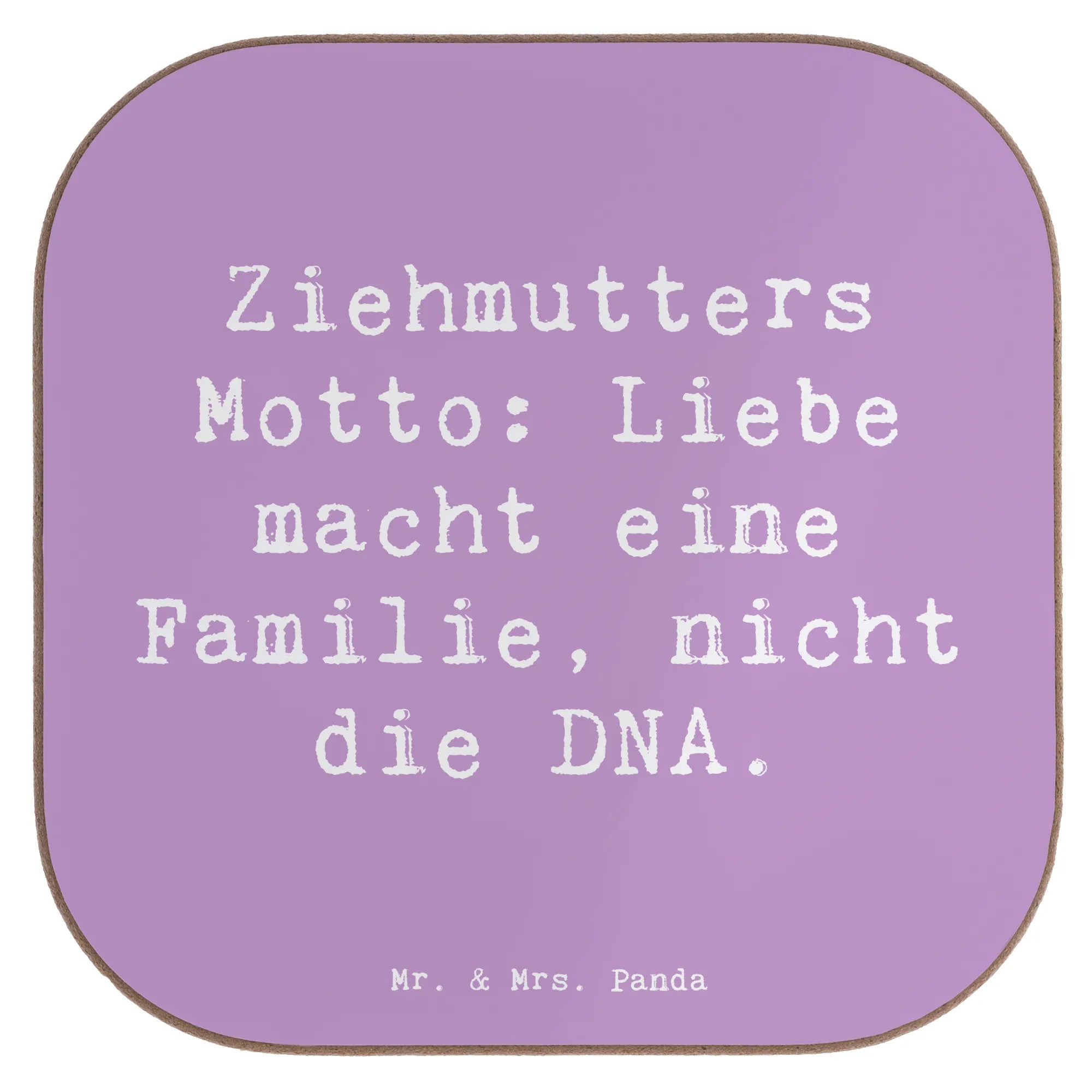 Square coaster Saying Ziehmutters Motto: Liebe macht eine Familie, nicht die DNA.