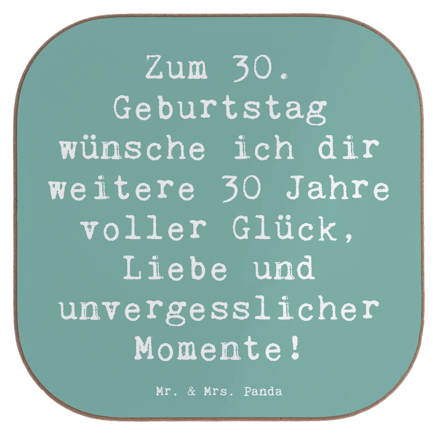 Square coaster Saying Zum 30. Geburtstag wünsche ich dir weitere 30 Jahre voller Glück, Liebe und unvergesslicher Momente! - Meeresbrise