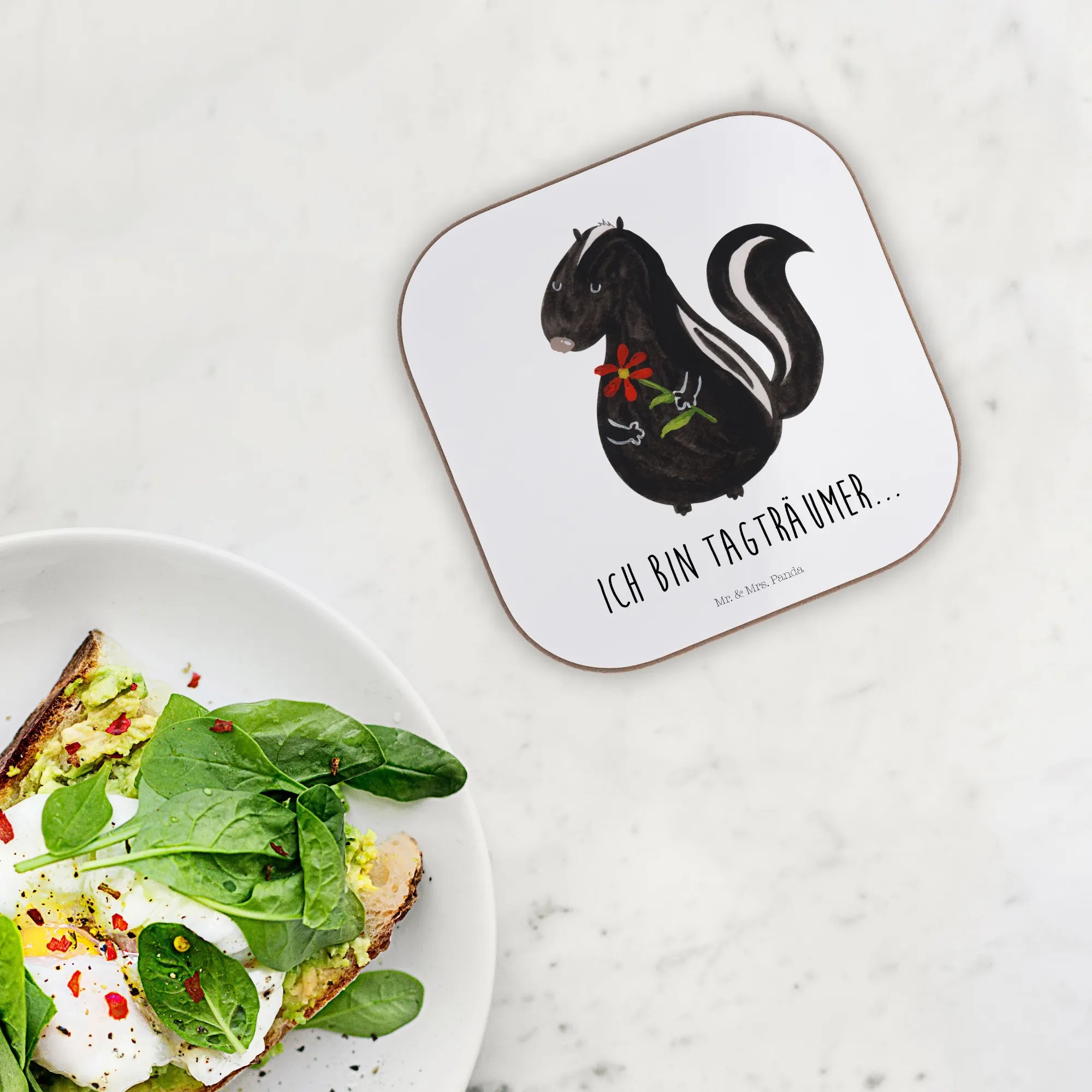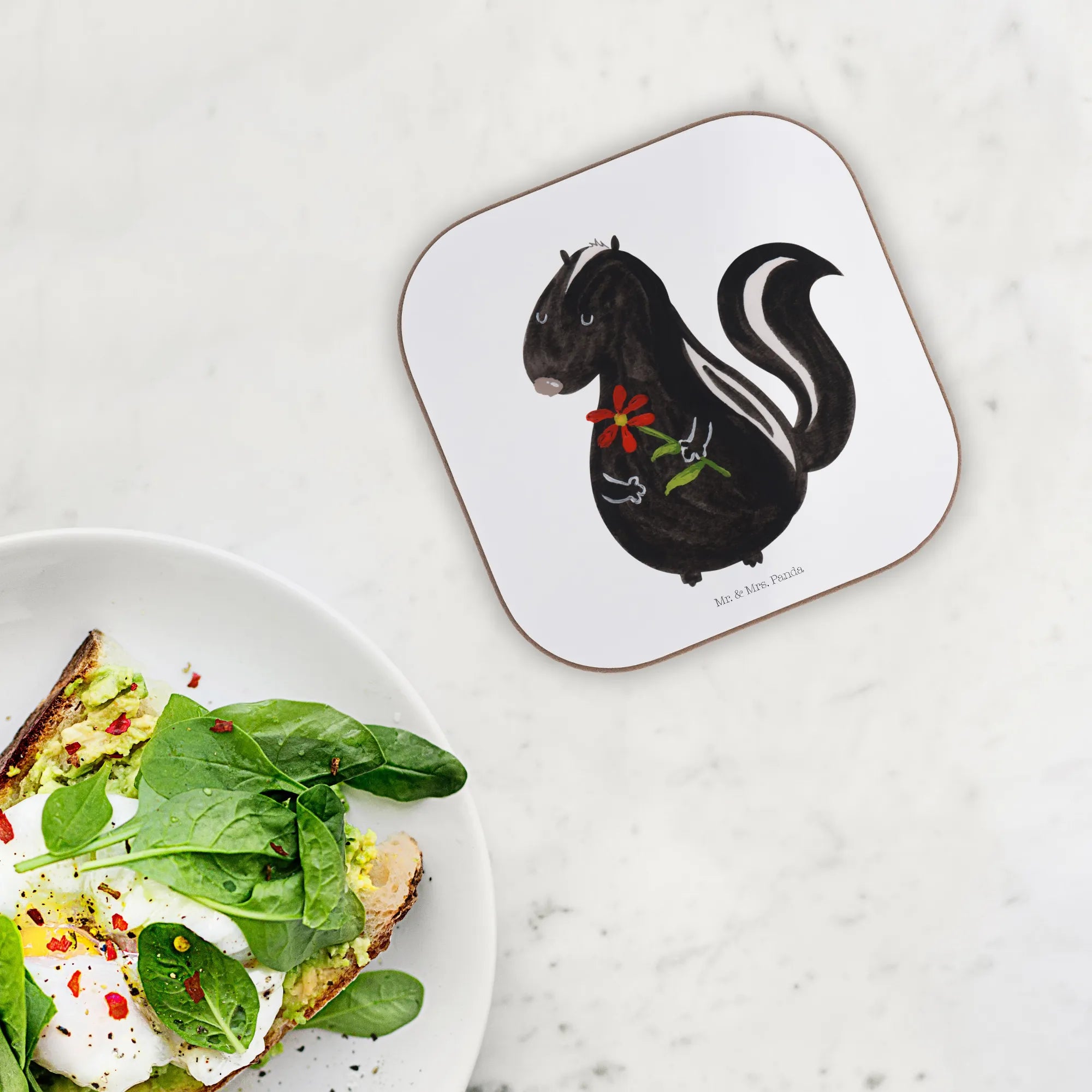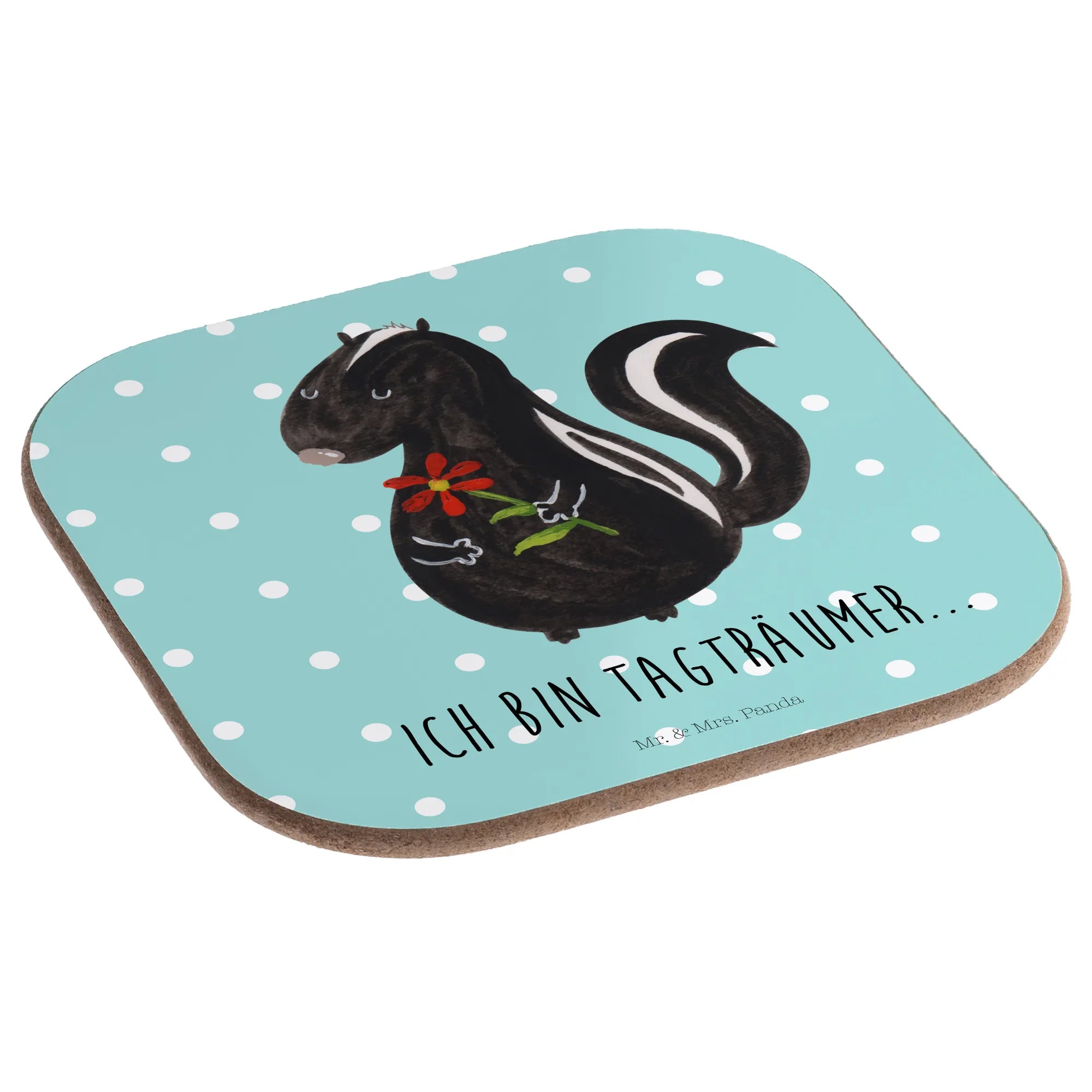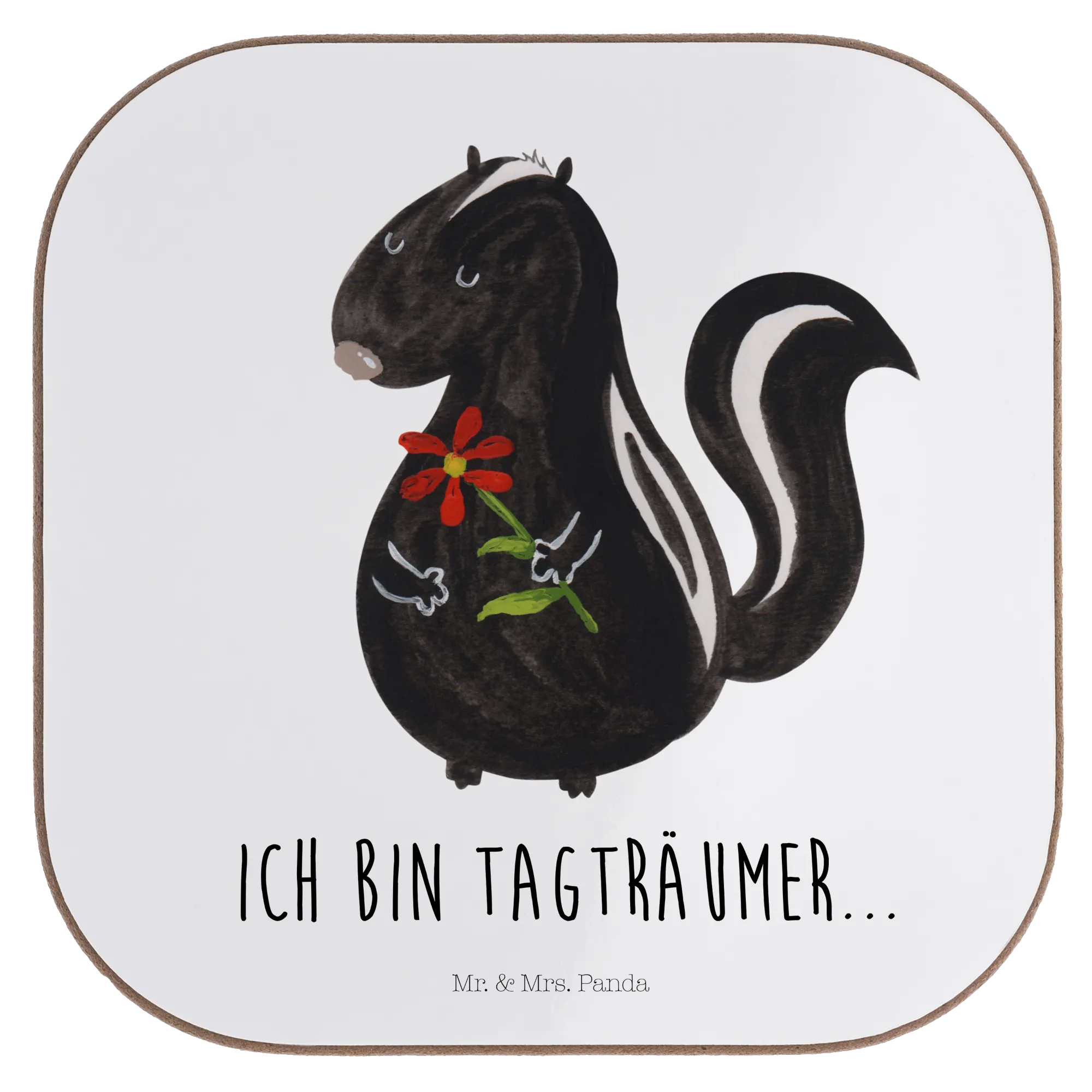 Square coaster skunk flower - with saying - White