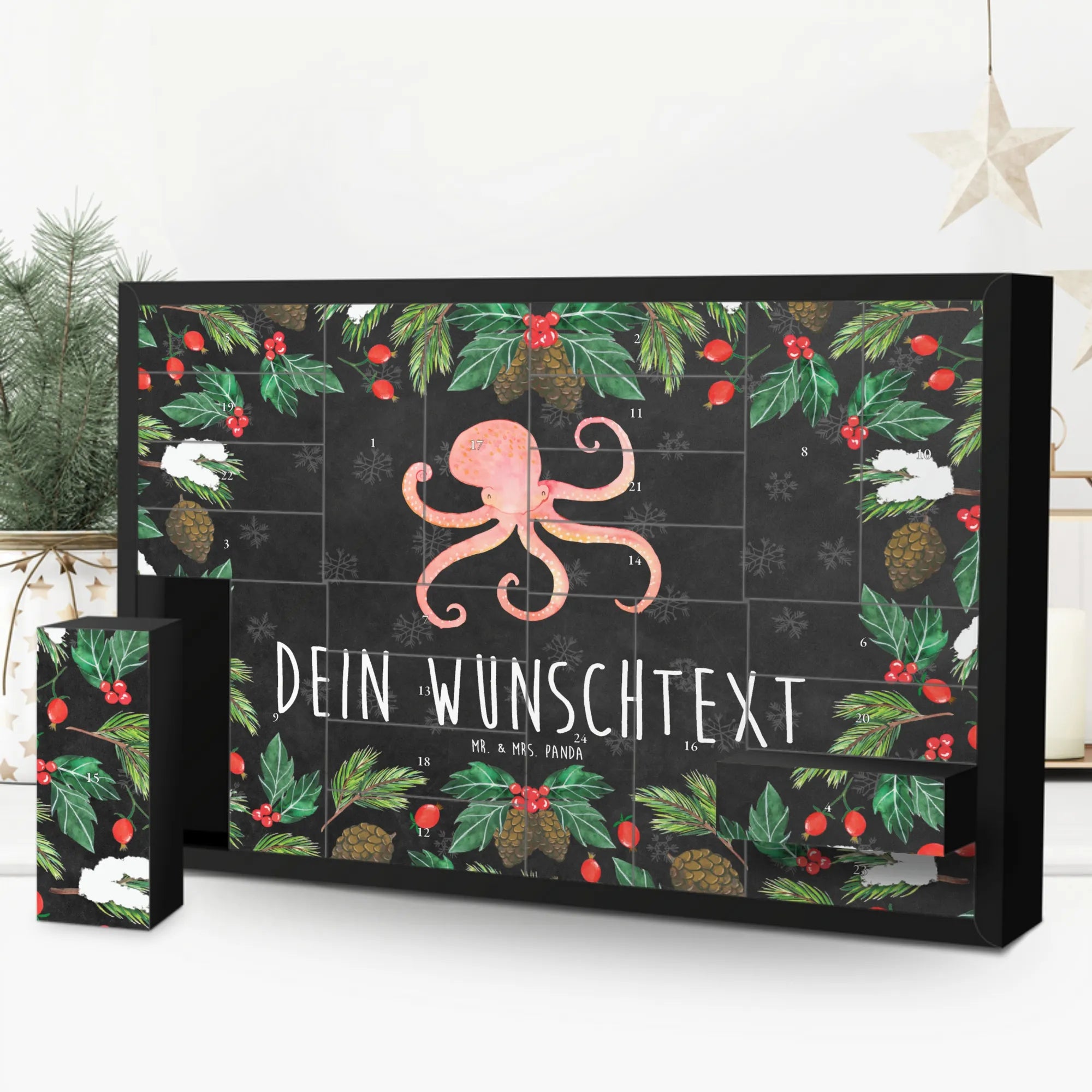 Discover the magic of the Advent season with Mr. & Mrs. Panda's personalized fillable Advent calendar. With the option to fill it with your own favorite surprises, this calendar becomes a heartwarming centerpiece of your holiday preparations. Each of the 24 boxes is ready to be uniquely filled by you, bringing daily joy to your loved ones or yourself. The heartfelt drawings and sayings, combined with the ability to personalize the calendar with a name or message of your choice, make it an incomparable and special gift that makes the Christmas season even more magical.