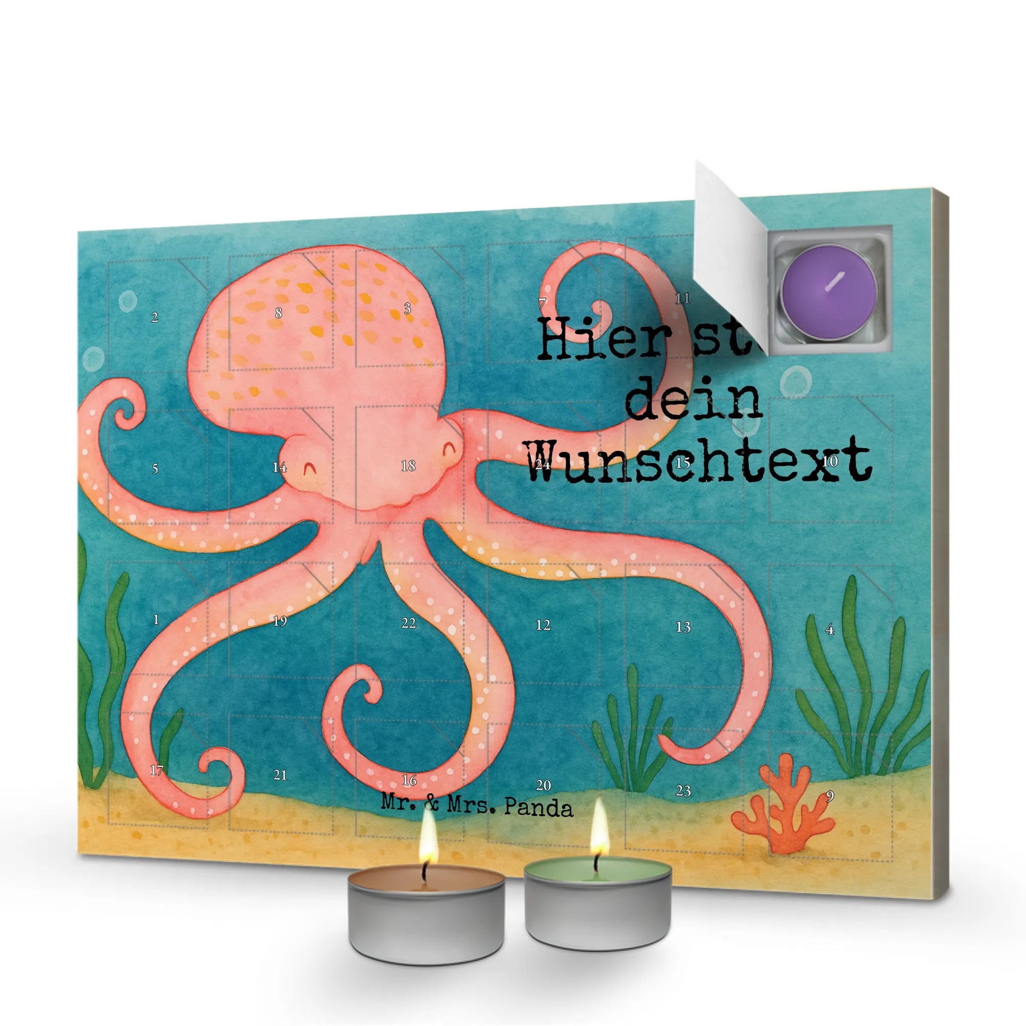Discover the magic of the pre-Christmas season with our 'Personalized Scented Candle Advent Calendar' from Mr. & Mrs. Panda. Enchantingly adorned with beautiful quotes and motifs, this unique Advent calendar can be personalized with a message or name of your choice. Be captivated by Mrs. Panda's charming drawings on the front and a new festive scent behind every door, including vanilla, lavender, and apple-cinnamon. A sturdy box that can be hung up or displayed completes the experience.