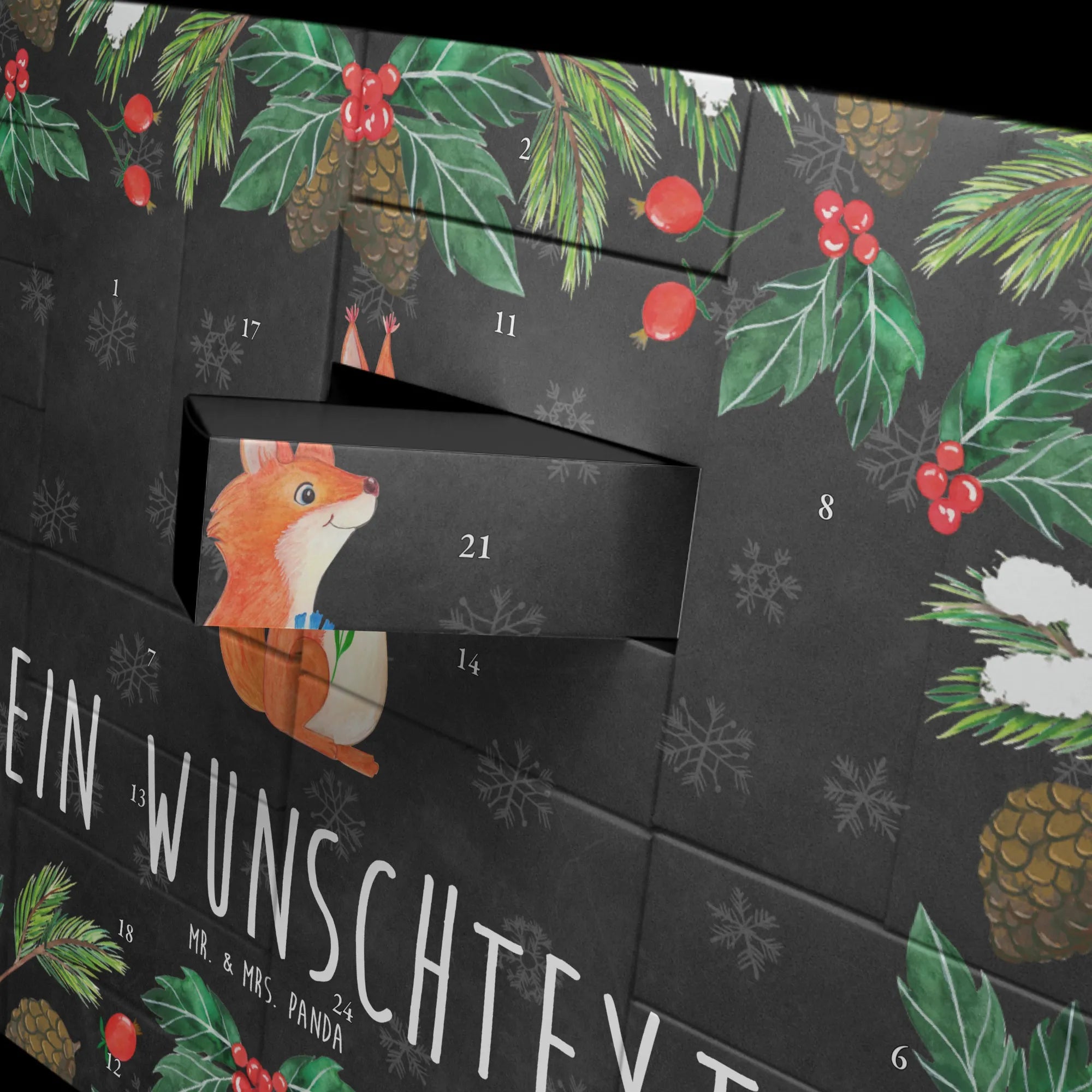 Discover the magic of the Advent season with Mr. & Mrs. Panda's personalized fillable Advent calendar. With the option to fill it with your own favorite surprises, this calendar becomes a heartwarming centerpiece of your holiday preparations. Each of the 24 boxes is ready to be uniquely filled by you, bringing daily joy to your loved ones or yourself. The heartfelt drawings and sayings, combined with the ability to personalize the calendar with a name or message of your choice, make it an incomparable and special gift that makes the Christmas season even more magical.