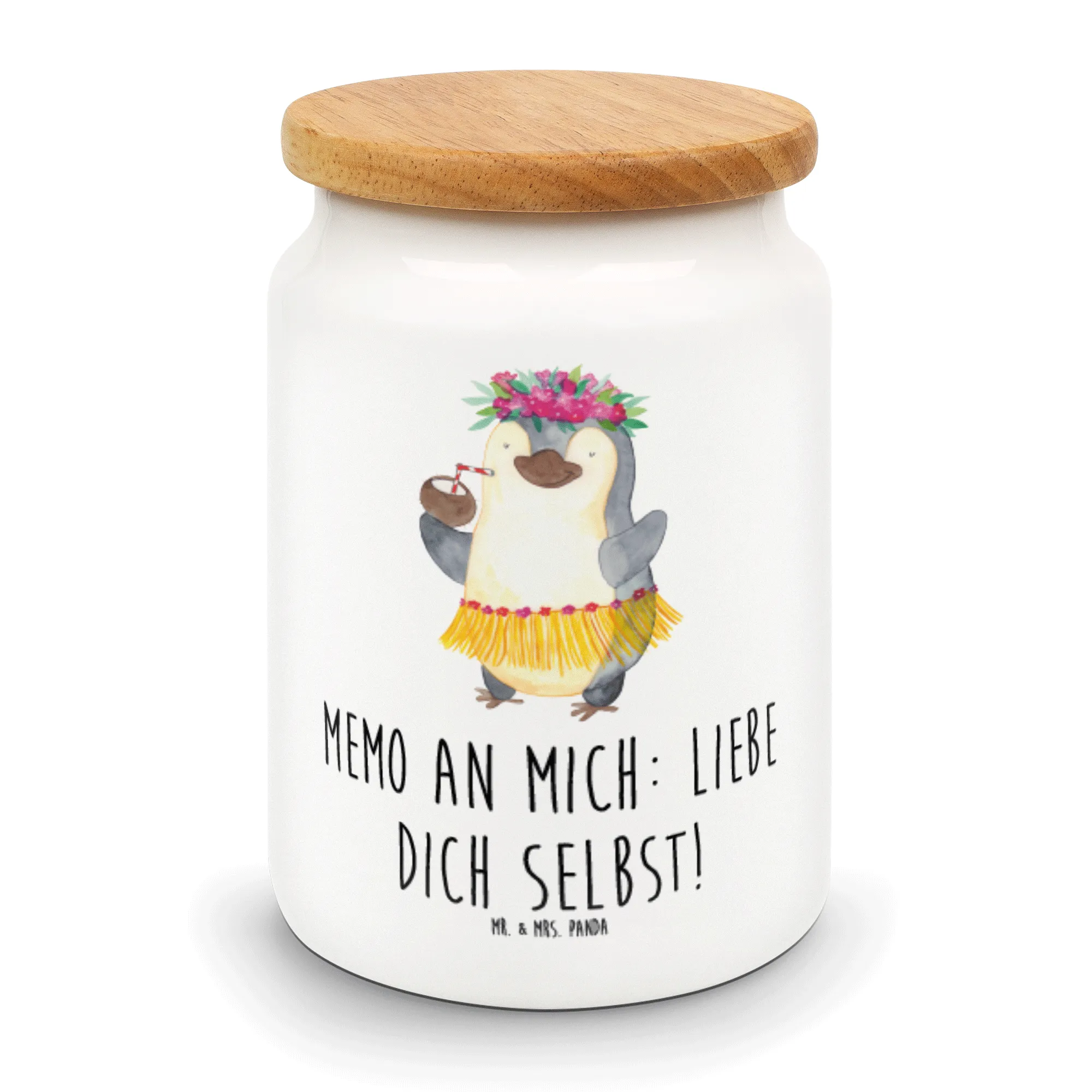 Crafted from high-quality ceramic, this cookie jar, with its adorable penguin design, embodies the spirit of fun and relaxation reminiscent of a sunny day in Hawaii, complete with a coconut in hand!
