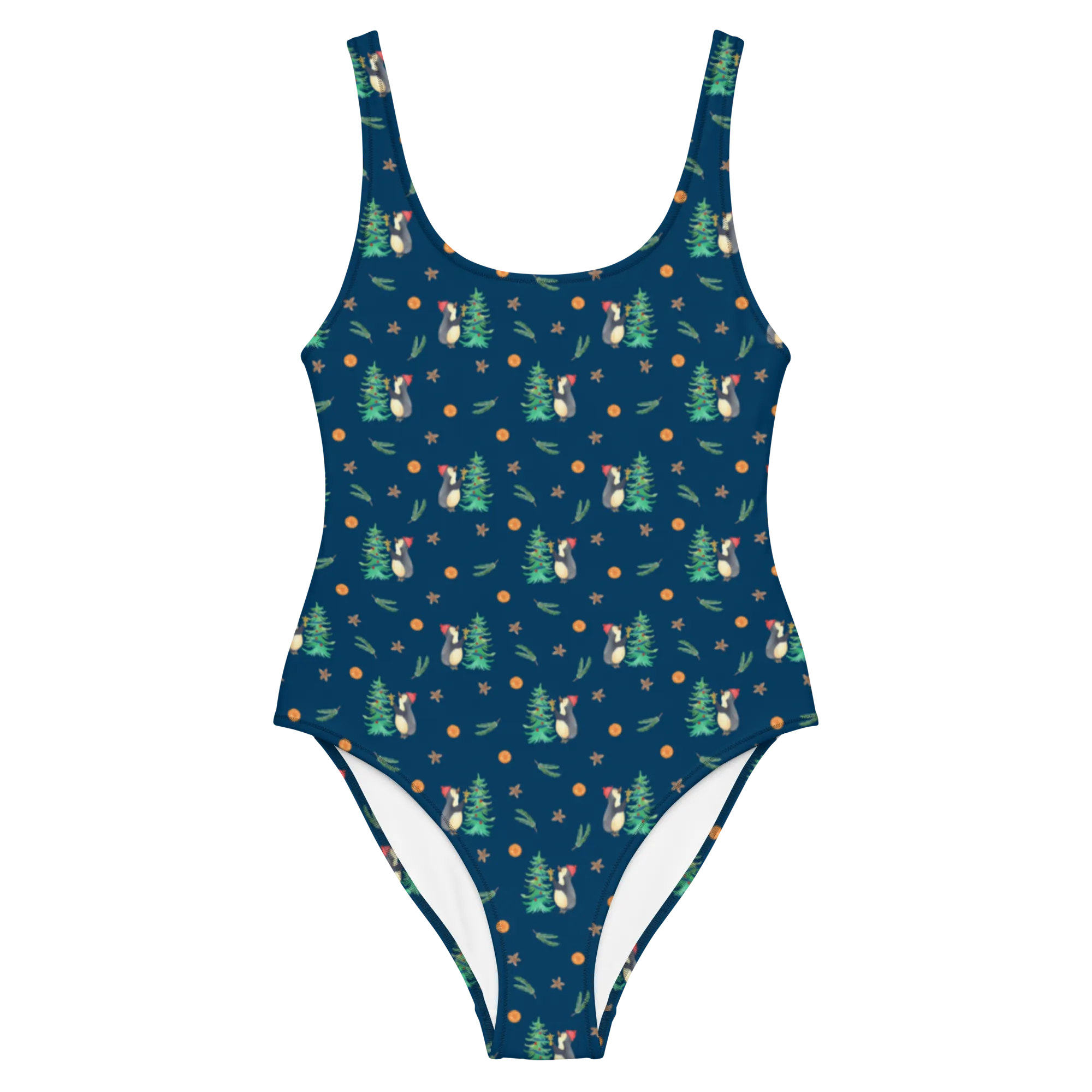 Embrace the festive spirit this holiday season with our adorable Penguin Christmas Tree Swimsuit from the enchanting Winter Collection by Mr. & Mrs. Panda! Perfectly suited for those magical winter getaways or cozy family gatherings, this swimsuit combines style and playfulness that will not only make you stand out but also spread joy all around. With its charming motif of a cheerful penguin proudly decorating a Christmas tree, it's hard not to smile each time you wear it!