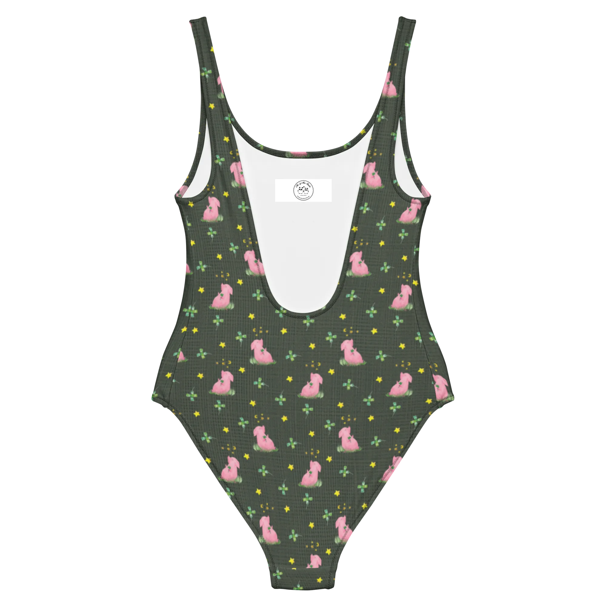 Looking for the perfect swimsuit to make a splash this summer? Look no further than the delightful Lucky Pig Swimsuit from the Small World collection by Mr. & Mrs. Panda! This adorable swimsuit combines style and fun, featuring a charming design of a little piglet holding a lucky four-leaf clover.
