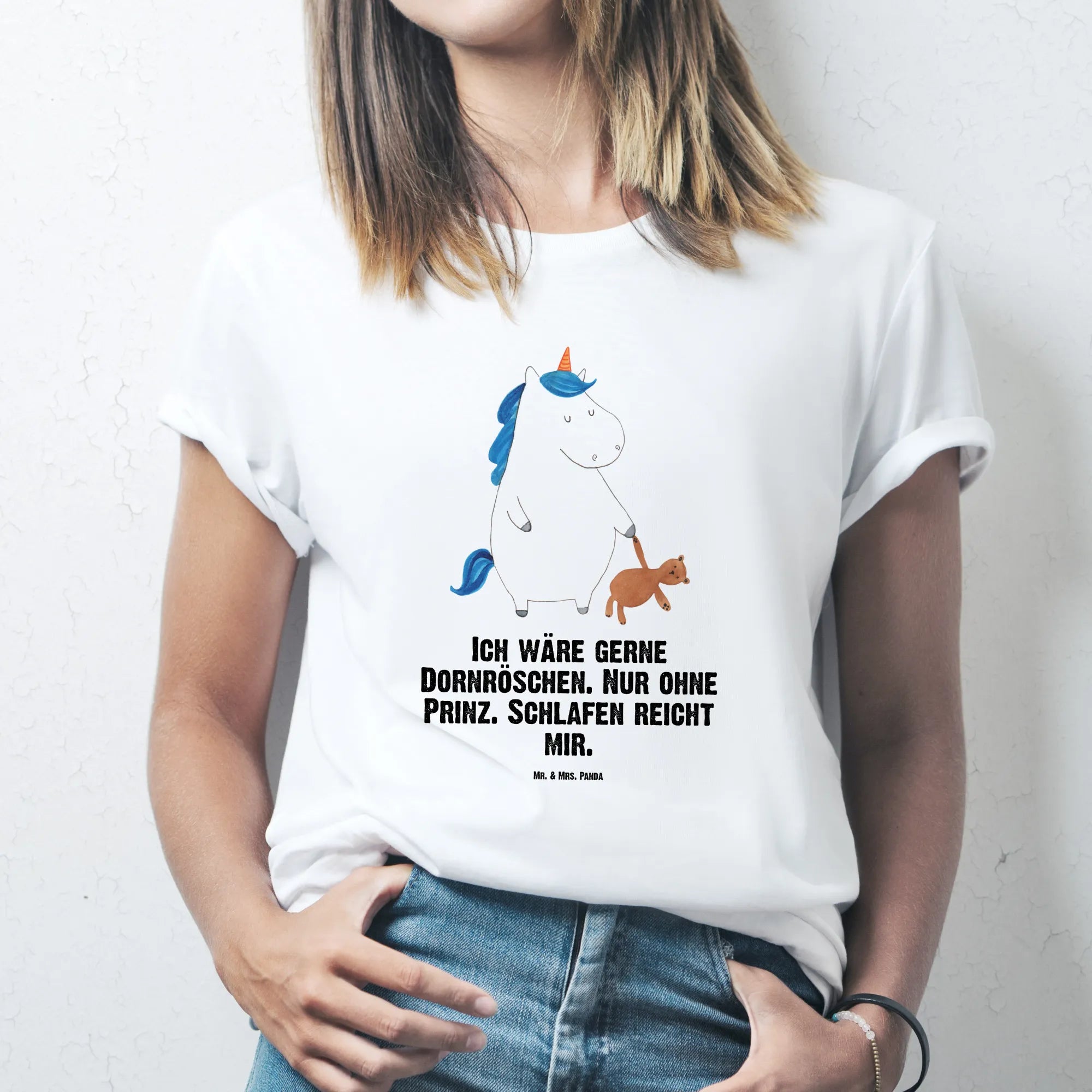 Welcome to the world of Unicorn Teddy! A dreamy little character who stands sleepily with a teddy bear in hand and embodies the joy of cozy nights at home. The slogan, "Ich wäre gerne Dornröschen. Nur ohne Prinz. Schlafen reicht mir," captures the essence of a dreamy self-indulgence. Unicorn Teddy invites you to pause and relish the blissful moments before drifting off to sleep. Ideal as a charming gift for children or as a lovely reminder to cherish the single life, this motif has a way of making bedtime feel magical. It encourages waves of soft dreams that transport you to far-off places, where the essence of joy and laughter lives in every corner. Together with Unicorn Teddy, let’s take each evening as an opportunity to snuggle, dream big, and make bedtime a cherished part of our day.