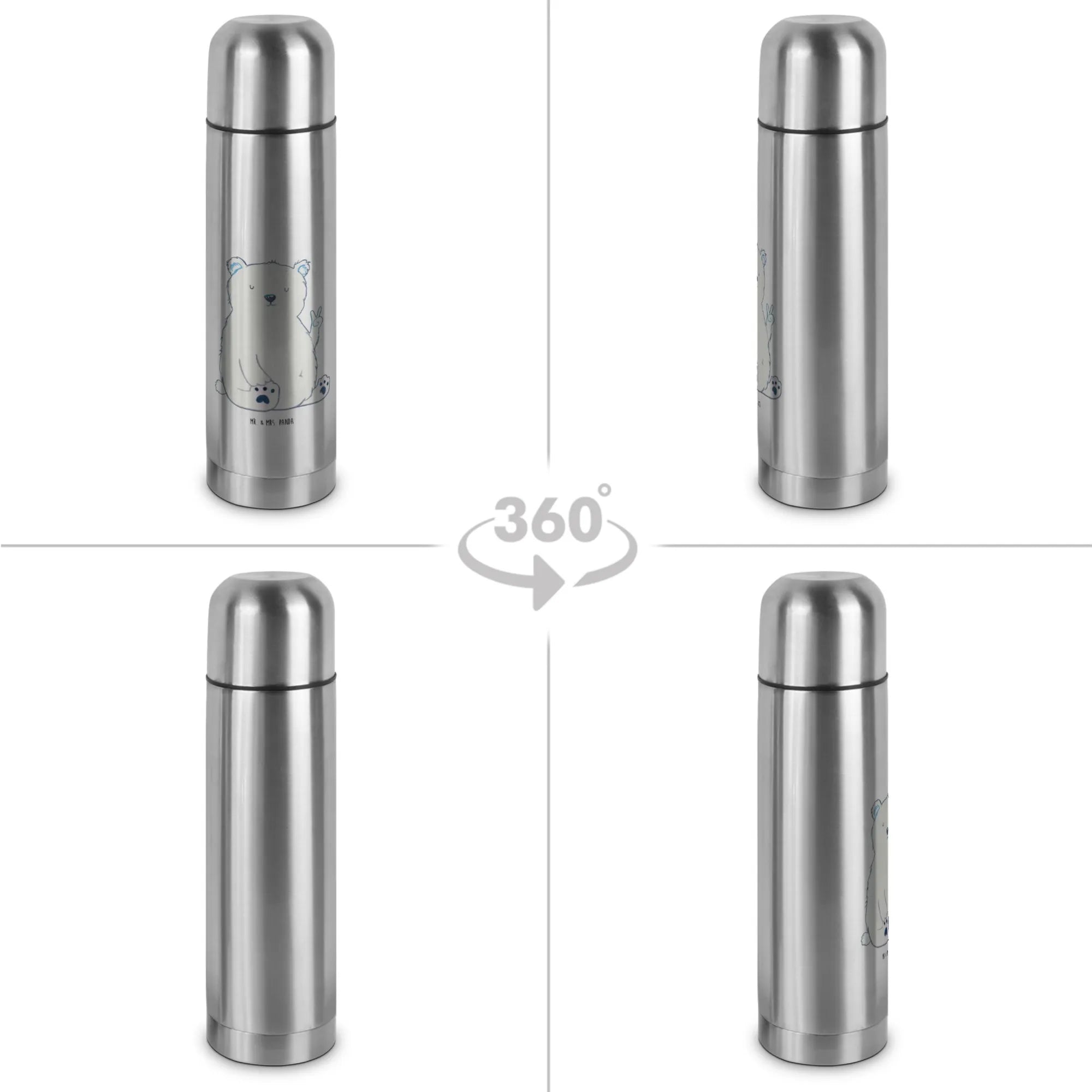Entdecke die perfekte Thermoskanne für alle Bärenliebhaber! Unsere wunderschöne Thermoskanne mit dem süßen Eisbär-Motiv "Faul" aus der Bär-Kollektion von Mr. & Mrs. Panda ist nicht nur ein absoluter Hingucker, sondern auch äußerst praktisch.