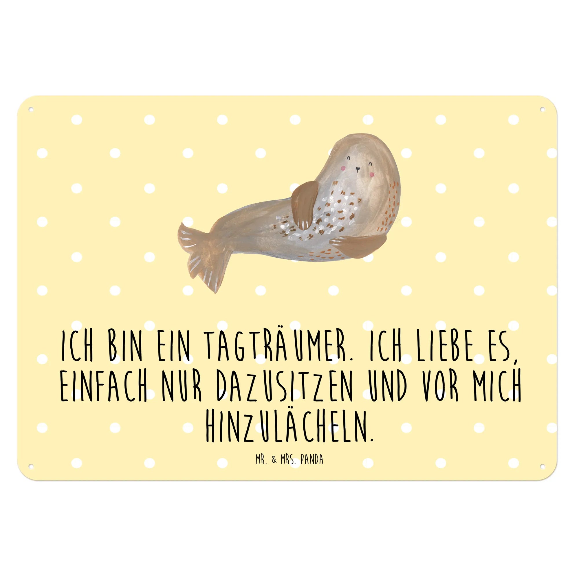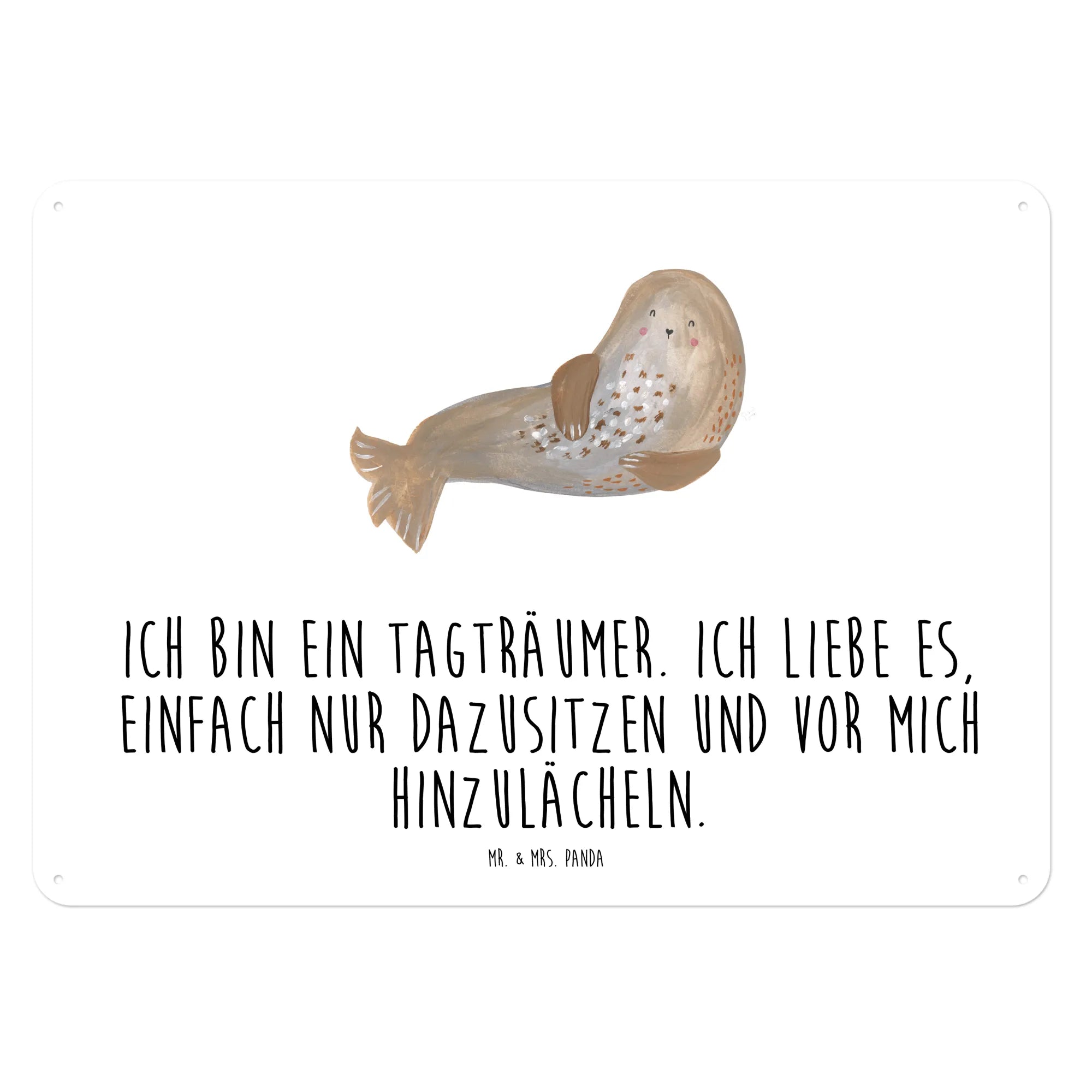 Die lustige Spruch auf dem Schild lautet: "Ich bin ein Tagträumer. Ich liebe es, einfach nur dazusitzen und vor mich hinzulächeln." Dieser Spruch lädt dazu ein, innezuhalten und die kleinen Dinge im Leben zu schätzen. Das Design von Mr. & Mrs. Panda ist nicht nur bezaubernd, sondern auch ein Ausdruck von Lebensfreude, der sich perfekt für Tierfreunde eignet. So sorgt die Robbe lachend dafür, dass nicht nur du, sondern auch deine Besucher beim Anblick des Schildes ein Lächeln auf den Lippen haben.